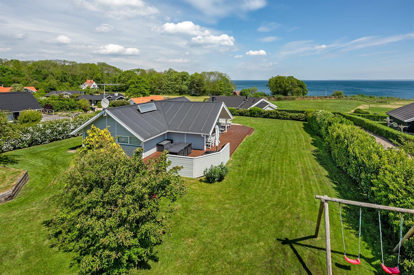 Skønt og velplejet sommerhus med flot havudsigt over Lillebælt og mod det sydfynske øhav beliggende tæt på dejlig badestrand.