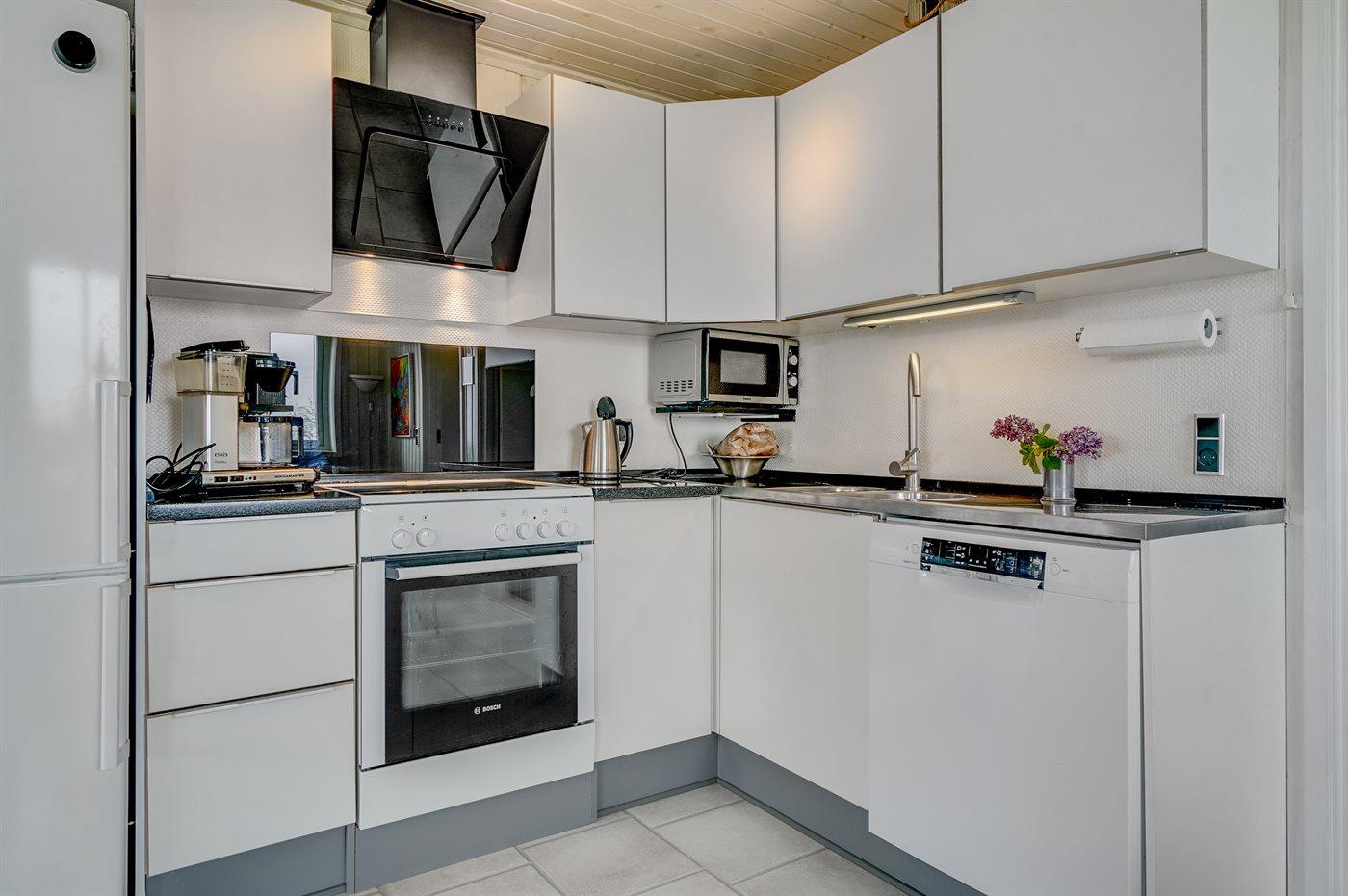 Køkkenet er udstyret med 1 køleskab. Der er 4 keramiske kogeplader, varmluftovn, mikrobølgeovn samt opvaskemaskine.