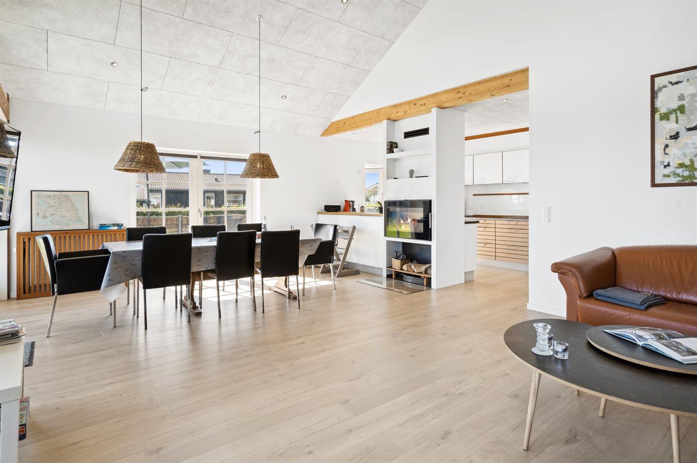 Sommerhuset egner sig til 8 personer. Ferieboligen er på 128 m² og er bygget i 2020. Det er ikke tilladt at medbringe husdyr. Ferieboligen er udstyret med 1 energivenlig luft til vand varmepumpe. Hele ferieboligen har gulvvarme. Ferieboligen har vaskemaskine. Tørretumbler. Frysekapacitet på 50 liter. Der er desuden brændeovn. Til de små er der 2 stk. barnestole.
