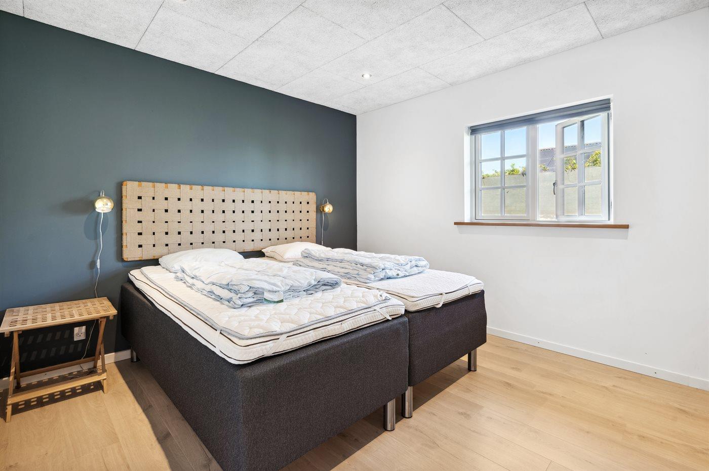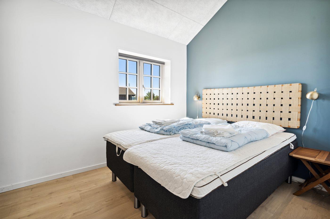 Der er i alt 3 soveværelser. Sovepladserne fordeler sig på: 8 sovepladser i dobbeltsenge. 2 af disse sovepladser befinder sig på husets hems. Derudover er der 1 stk. barneseng.