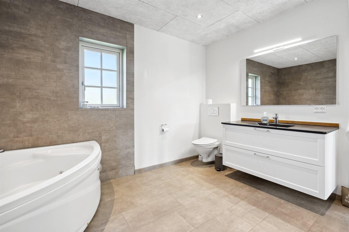 Der er 2 badeværelser med bruseniche og 2 toiletter. Der er gulvvarme på 2 badeværelser.