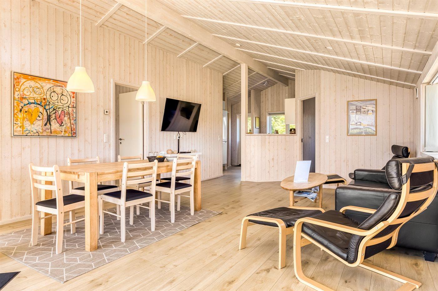 Sommerhuset egner sig til 6 personer. Ferieboligen er på 98 m² og er bygget i 2019. Det er ikke tilladt at medbringe husdyr. Ferieboligen er udstyret med 1 energivenlig luft til vand varmepumpe. Hele ferieboligen har gulvvarme. Ferieboligen har vaskemaskine. Tørretumbler. Frysekapacitet på 110 liter. Der er desuden brændeovn. Til de små er der 1 stk. barnestol.