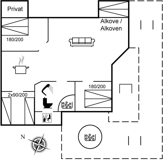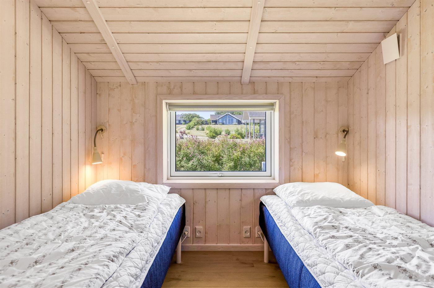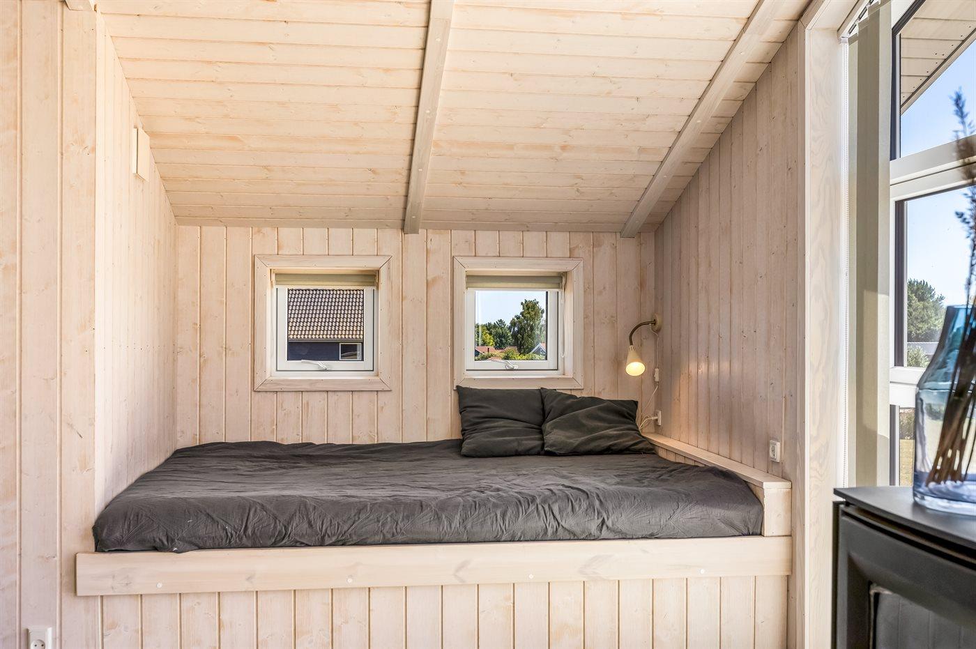 Der er i alt 3 soveværelser. Sovepladserne fordeler sig på: 4 sovepladser i dobbeltsenge. 2 sovepladser i enkeltsenge.