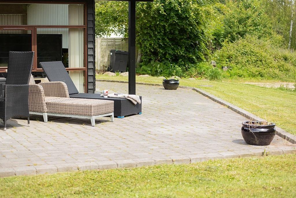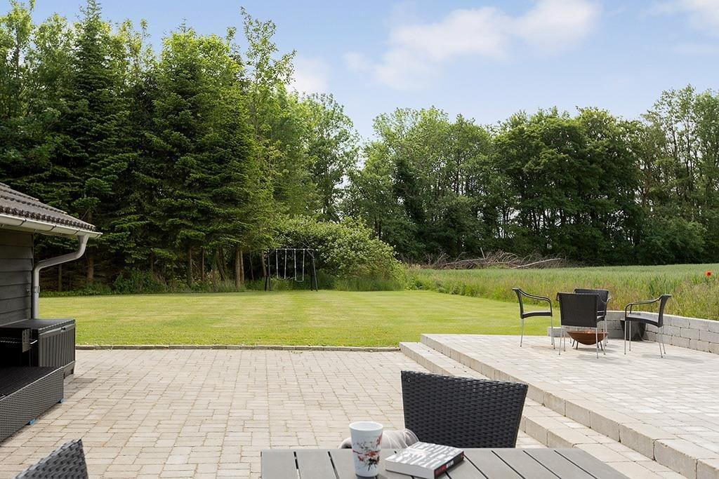 Rundt om sommerhuset er der flere store terrasser, hvor der er rig mulighed for at nyde solen. På den store plæne kan børnene rigtigt slå sig løs og spille bold.