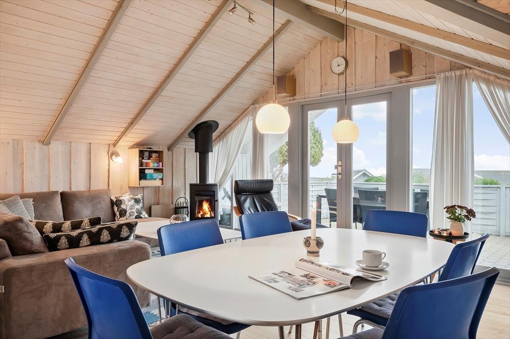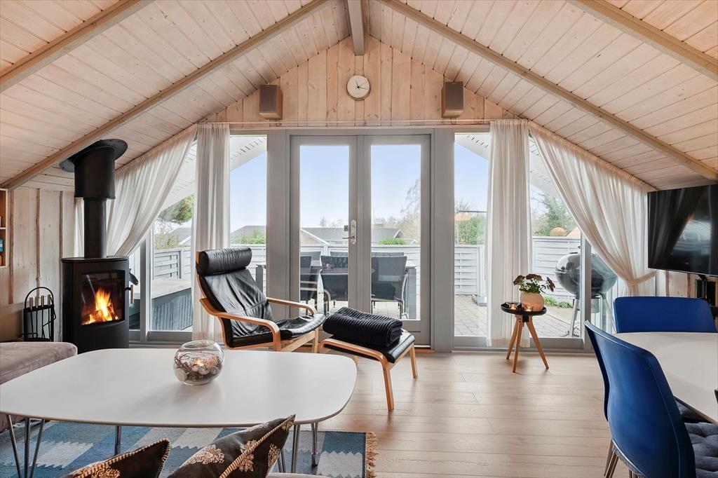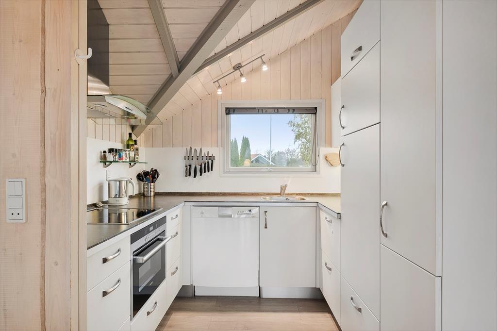 Et lyst og indbydende sommerhus med plads til hele familien. Huset indeholder et køkken med opvaskemaskine i åben forbindelse med spise- og opholdsstuen. Her er der brændeovn, energibesparende varmepumpe og udgang til terrassen. Der er desuden et badeværelse med vaskemaskine, gulvvarme og sauna samt 3 soveværelser.
