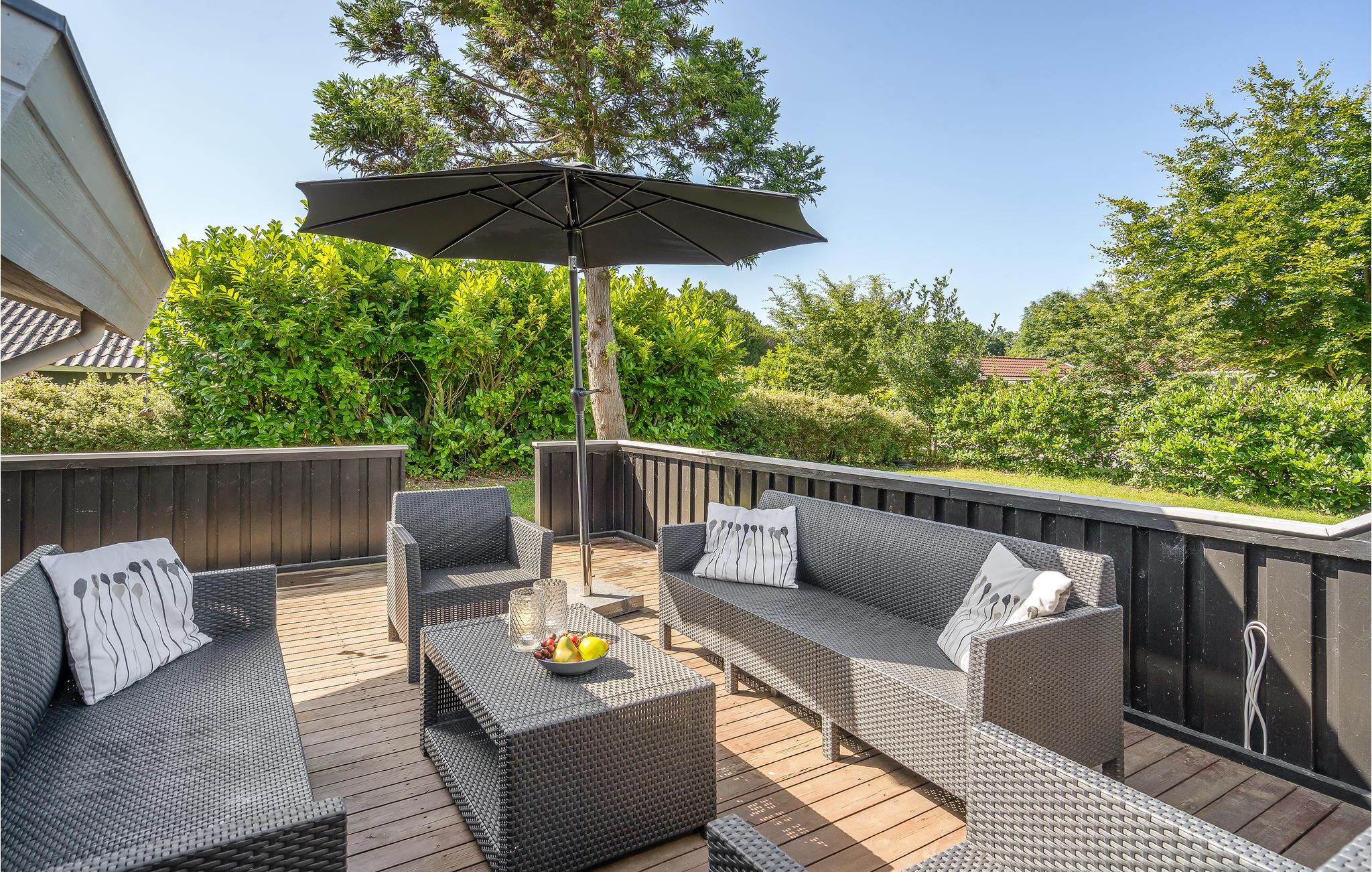 Dette velholdte feriehus har en skøn beliggenhed i første række fra stranden og op til et grønt område.