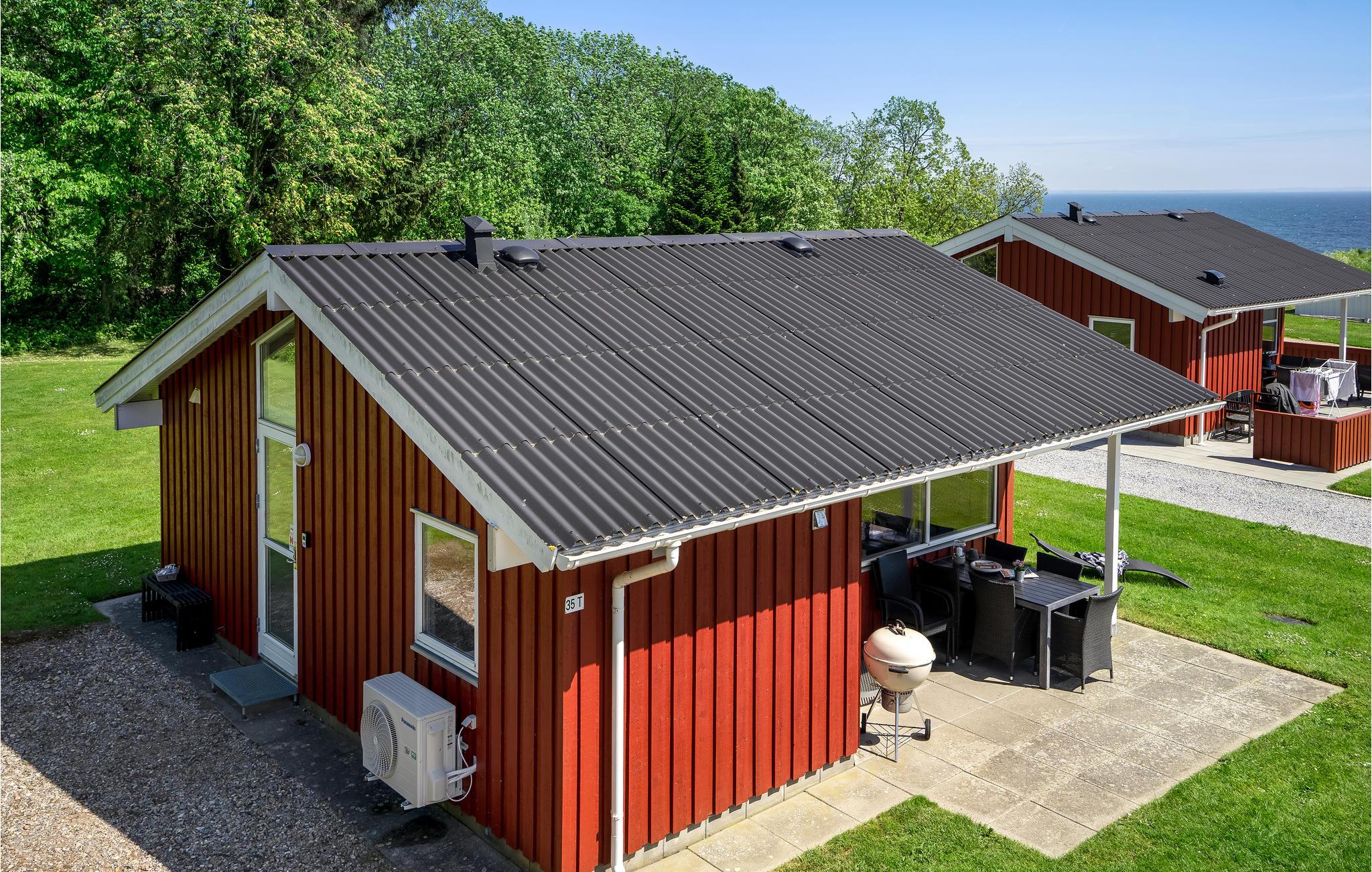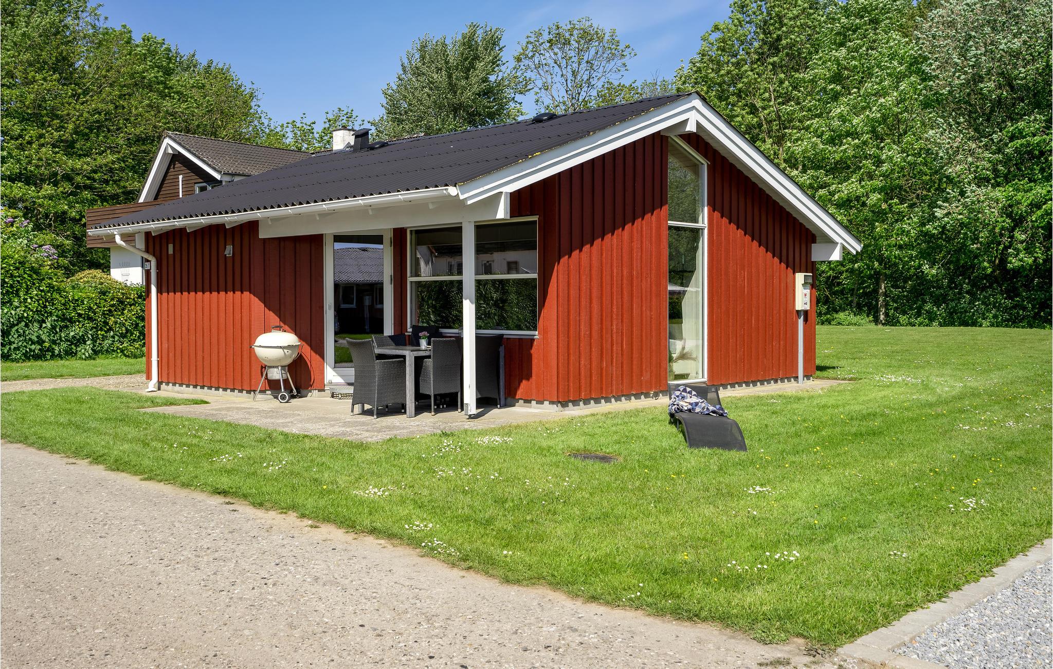 Dette er et hyggeligt lille træhus, der ligger i en lille feriehusby, meget tæt ved vandet. Der er kun 100 meter til en dejlig strand med en god badebro, hvor man kan bade og samle muslinger og flotte sten, og gå ture lands vandets bølger. Der er et fællesareal med fælles legeplads, som I har nem adgang til. Der er desuden kun 20 kilometer til Sønderborg, som er en meget charmerende kulturel by med masser af muligheder for at shoppe og gå på hyggelige café-besøg, hvis ikke den lille, hyggelige terrasse ved huset, som er delvist overdækket, danner ramme for jeres samværsstunder på det meste af ferien.