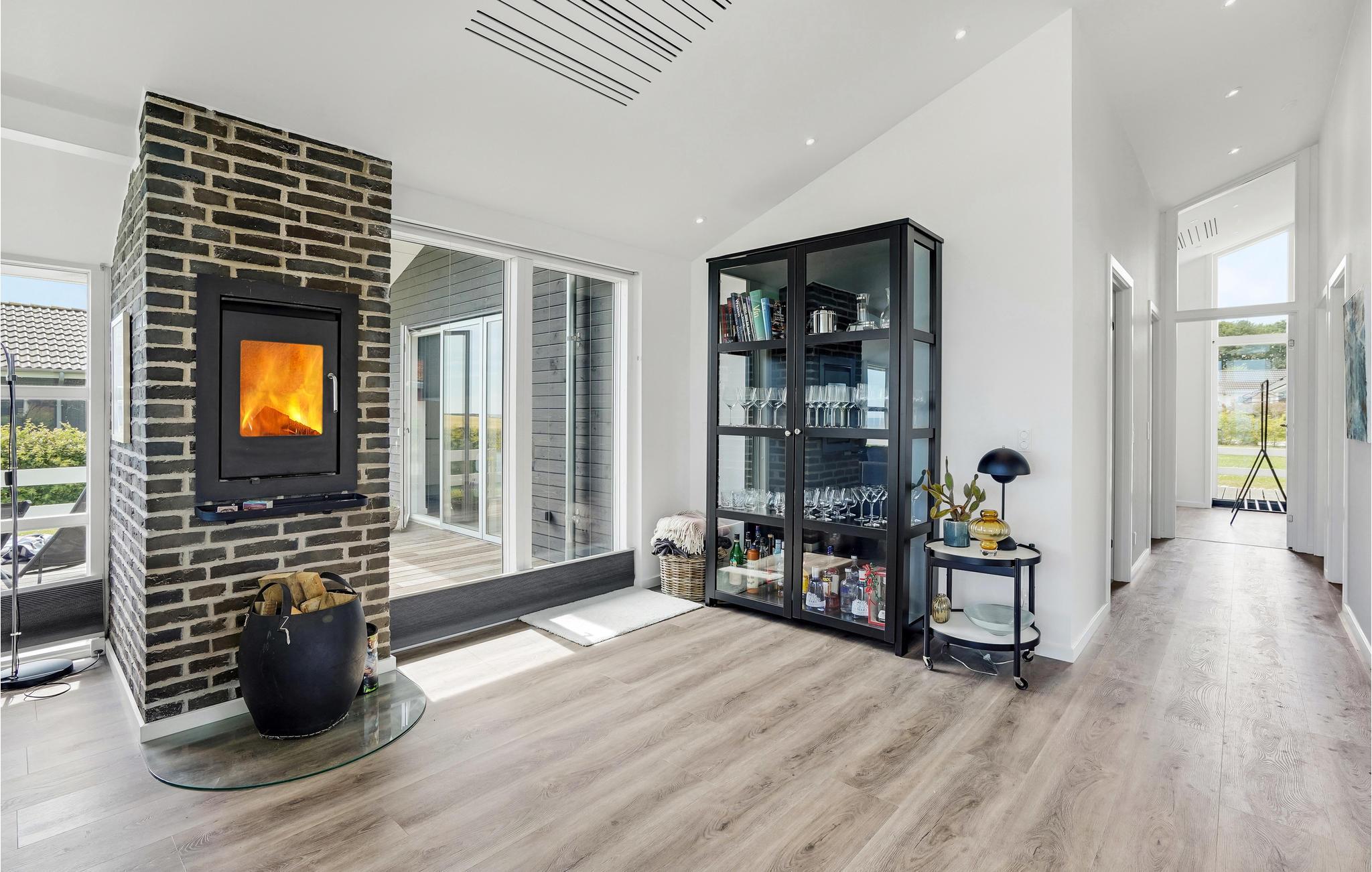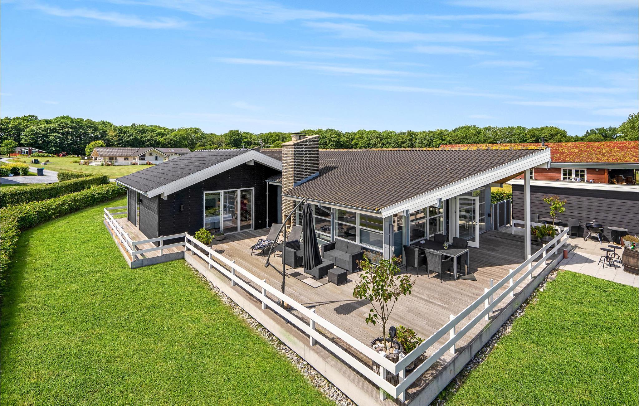 Det er godt indrettet og har en stor terrasse, som er ideel til solbadning hele dagen og om aftenen kan I tænde op i og varme jer ved den udendørs pejs. Foruden tre gode soverum, er der en hems, hvorfra der er udsigt.