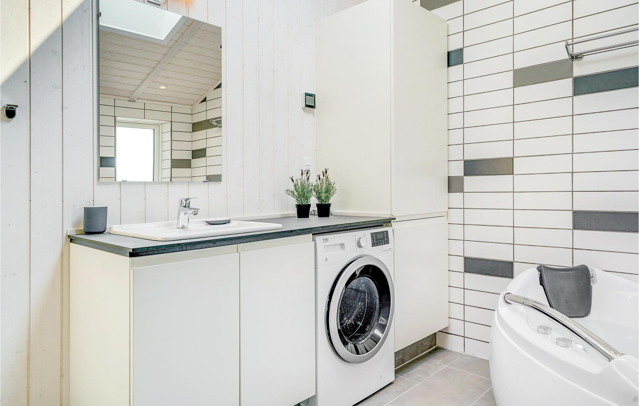 Dette dejlige energivenlige og veludstyrede feriehus er beliggende i det rolige og charmerende område ved Mommark Strand. Mommark har en lille hyggelig marina, hvor I f.eks. kan købe friske fisk fra de lokale fiskere. I kan naturligvis også selv fange jeres fisk i det gode fiskevand omkring øen Als. Husets køkken ligger i åben forbindelse med spiseafdelingen og opholdsstuen. I stuen er der en brændeovn, som I kan benytte på de kølige dage og aftener. Husets badeværelse byder på wellness for kroppen. Her er både et spabad og en dejlig sauna. Også udendørs er der wellness. På den store terrasse, som delvist er overdækket, er der et vildmarksbad. Uanset årstiden kan I sidde i vildmarksbadet og nyde ferien, og måske en kølig drink. Over alt i huset kan I benytte den trådløse internetforbindelse.