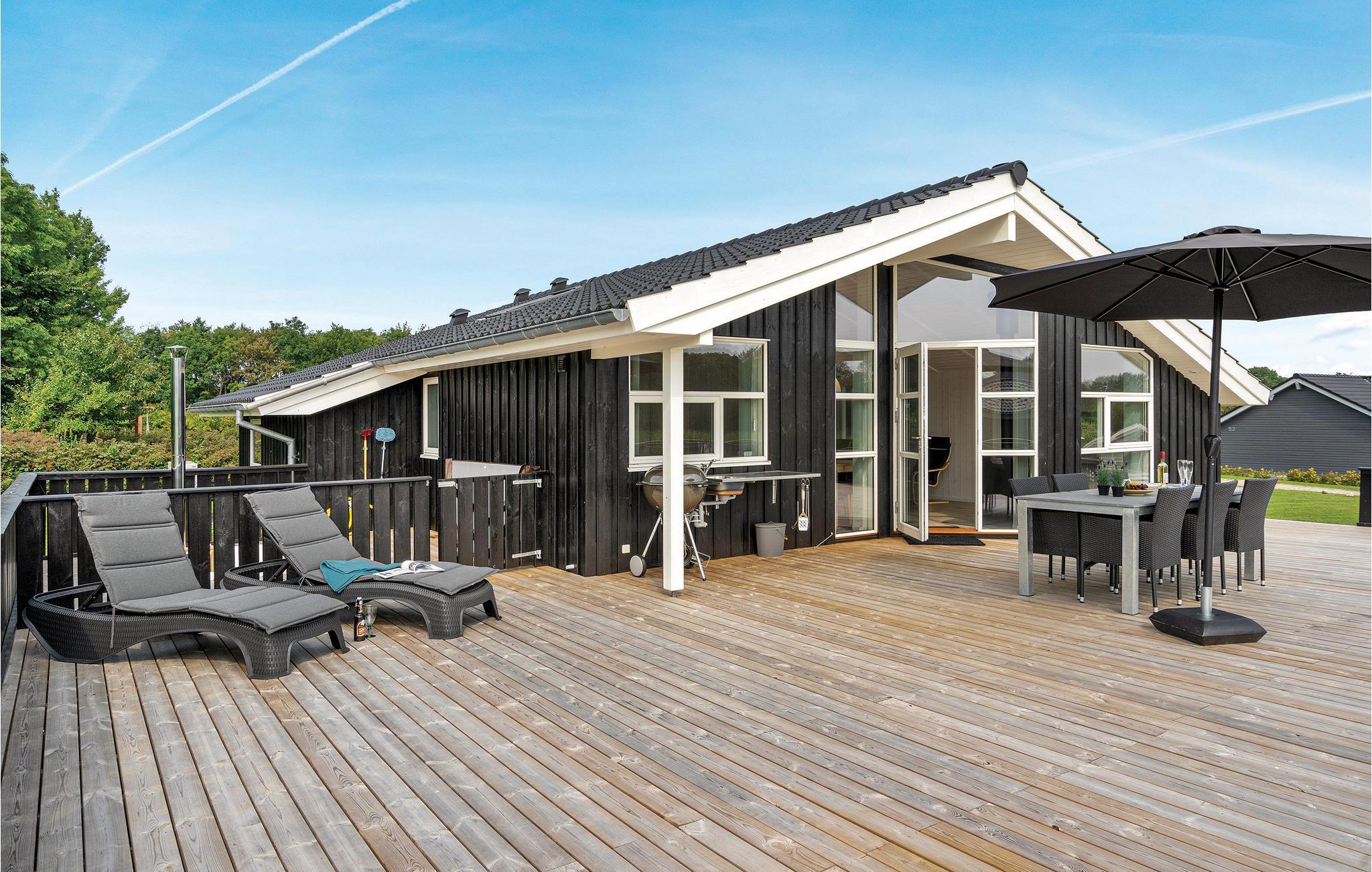 Hyggeligt energivenligt feriehus med wellness, vildmarksbad og havudsigt ved Mommark Strand.