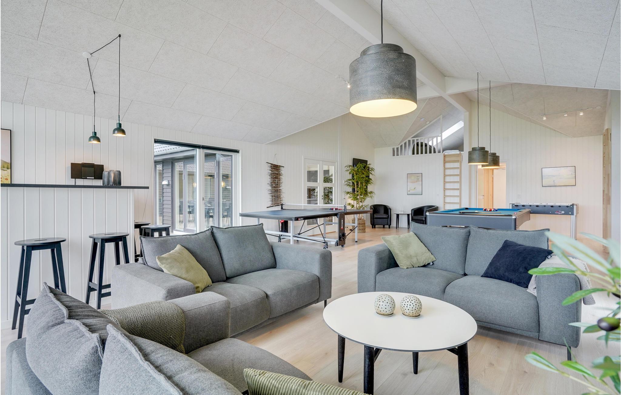 Glæd jer til en behagelig og fornøjelig ferie i dette store, moderne feriehus fra 2021. Her får I et ideelt sted til at samles én eller flere familier, for huset danner en skøn ferieramme både i sommer- og vinterhalvåret. Hop i indendørspoolen og slap af i spabadet, lige når I har lyst. Det er også en særlig luksus at sætte sig saunaen på kølige dage. Huset har også billard, bordfodbold og bordtennis - så her kommer I bestemt ikke til at kede jer.