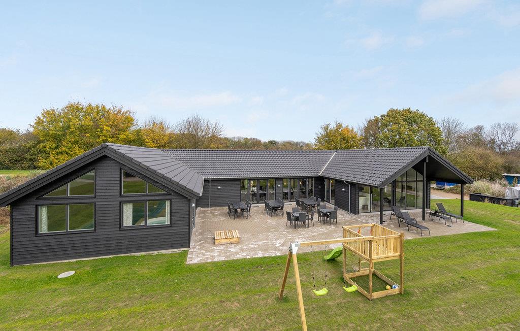 Stort moderne feriehus med indendørs pool, sauna og legeplads, kun 600 m fra stranden ved Mommark Strand.