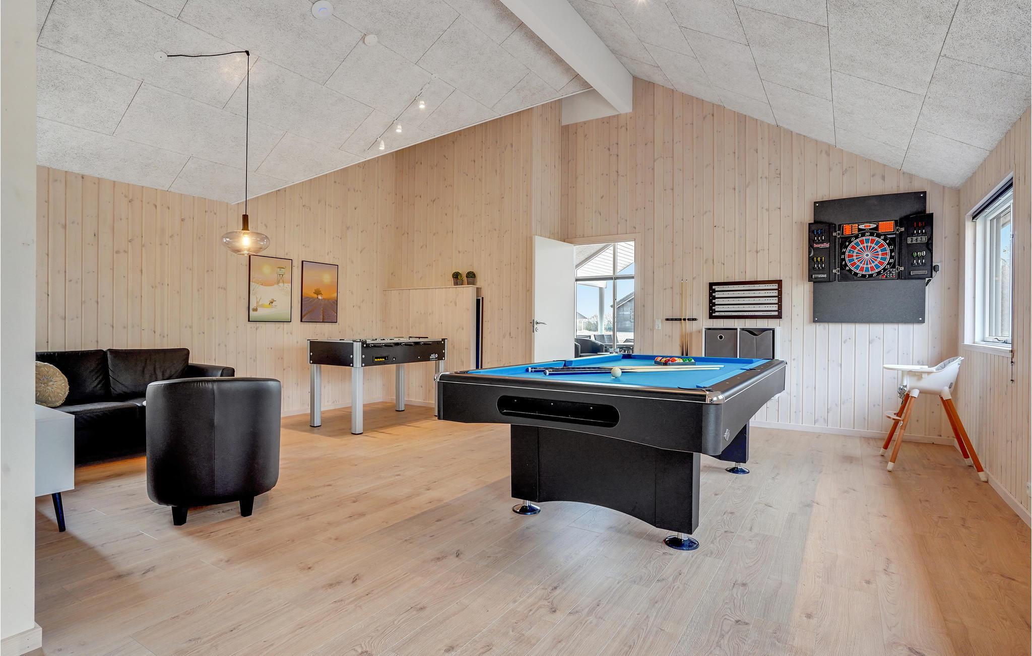 Dette skønne feriehus indbyder til en afslappende og yderst behagelig ferie på øen Als. Huset er ideelt til flere familier eller en større gruppe venner. Det er meget veludstyret og byder på mange moderne og komfortable faciliteter, så I kommer ikke til at mangle noget. Tilbring sjove timer med at plaske rundt i poolen, nyd en drink i spabadet og få varmen i saunaen på kølige dage. Bordfodbold, bordtennis, billard og Playstation 4 sikrer underholdningen - her kommer I aldrig til at kede jer. Der er desuden projektor og lærred, så I kan nemt skabe biografstemning.