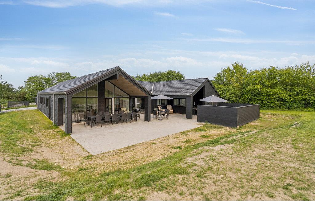 Rummeligt feriehus i Mommark Strand med wellness, pool, sauna og stort udendørsareal til afslapning og leg.