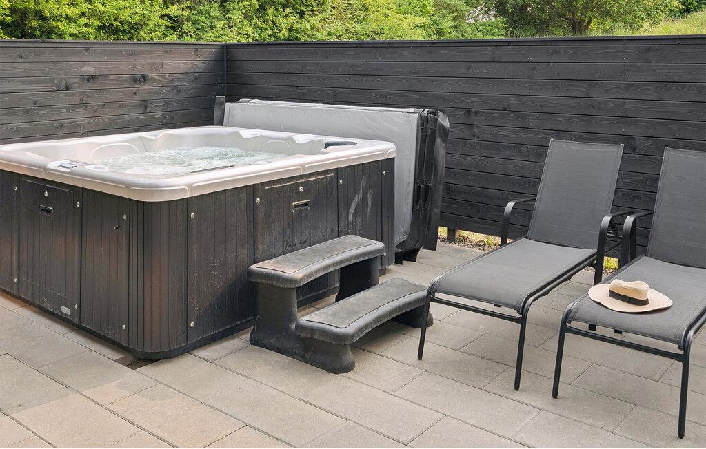 Brug det lige så rummelige udendørsområde til afslappende timer i spabadet og stemningsfulde grillaftener i godt selskab. Lad de yngre gæster løbe rundt på trampolinen og lege i den store have.
