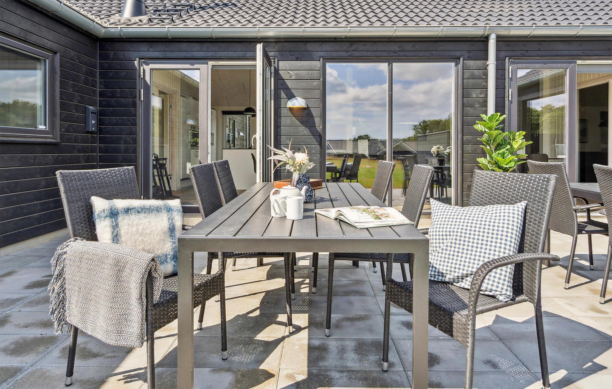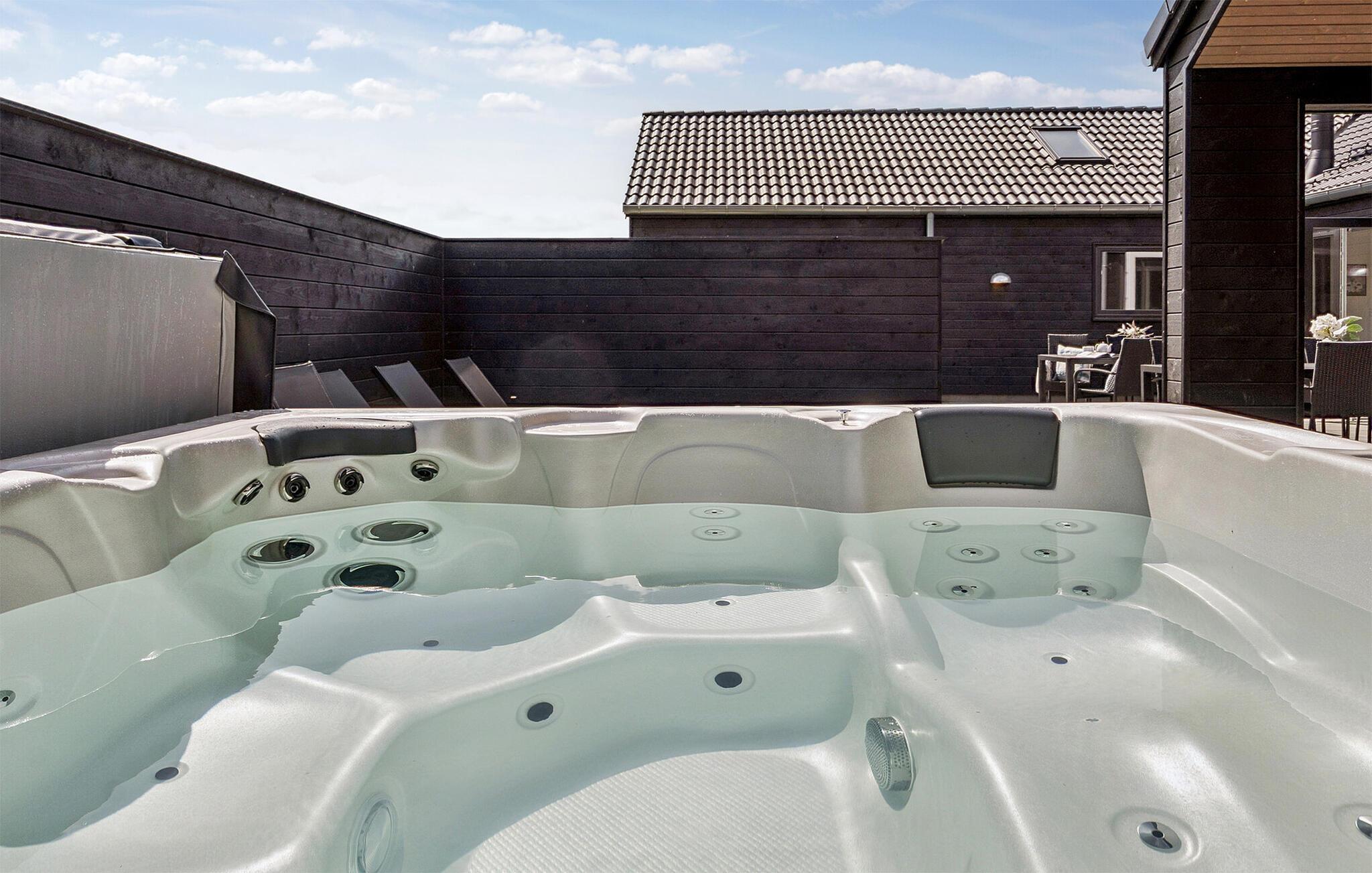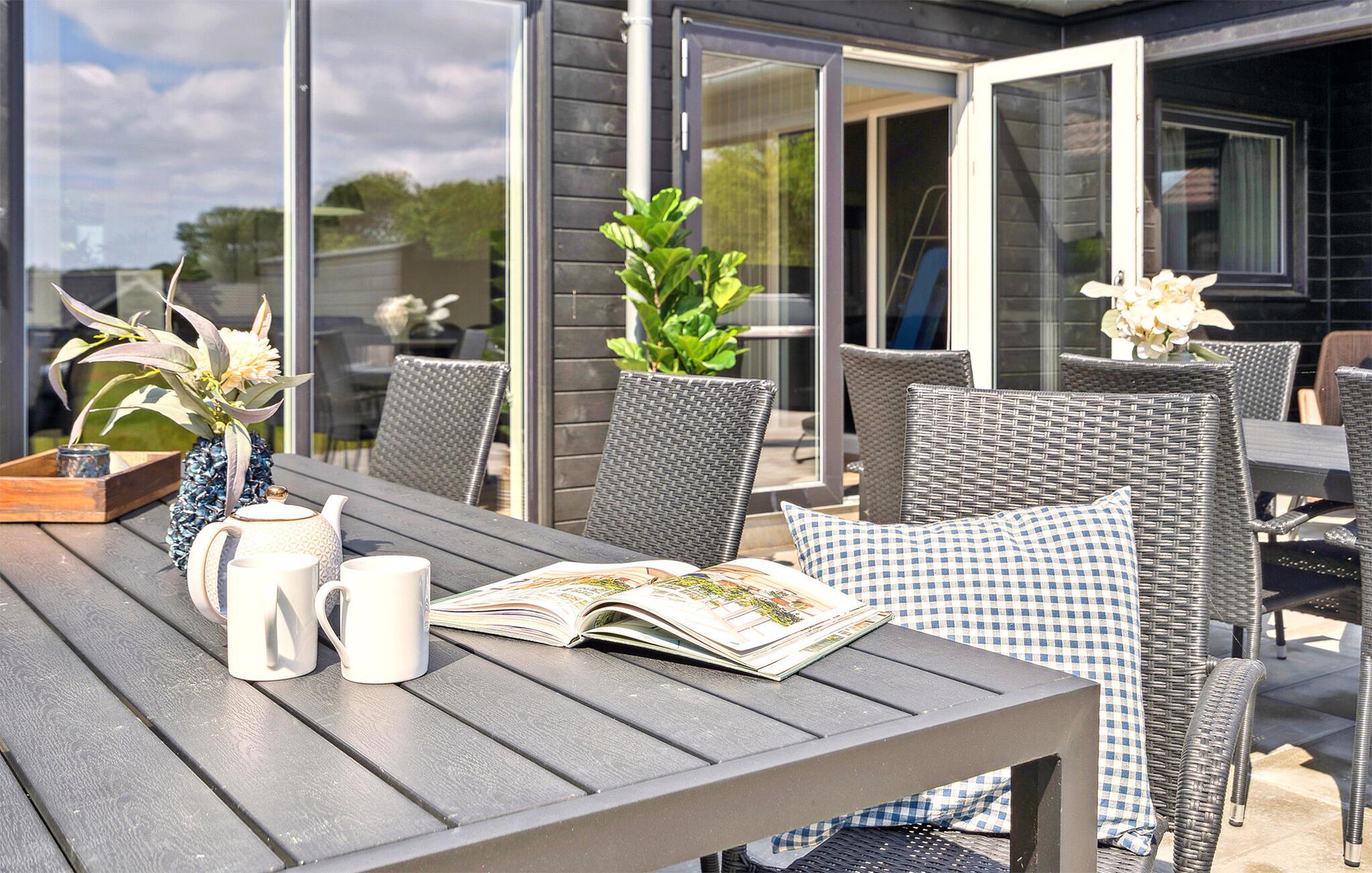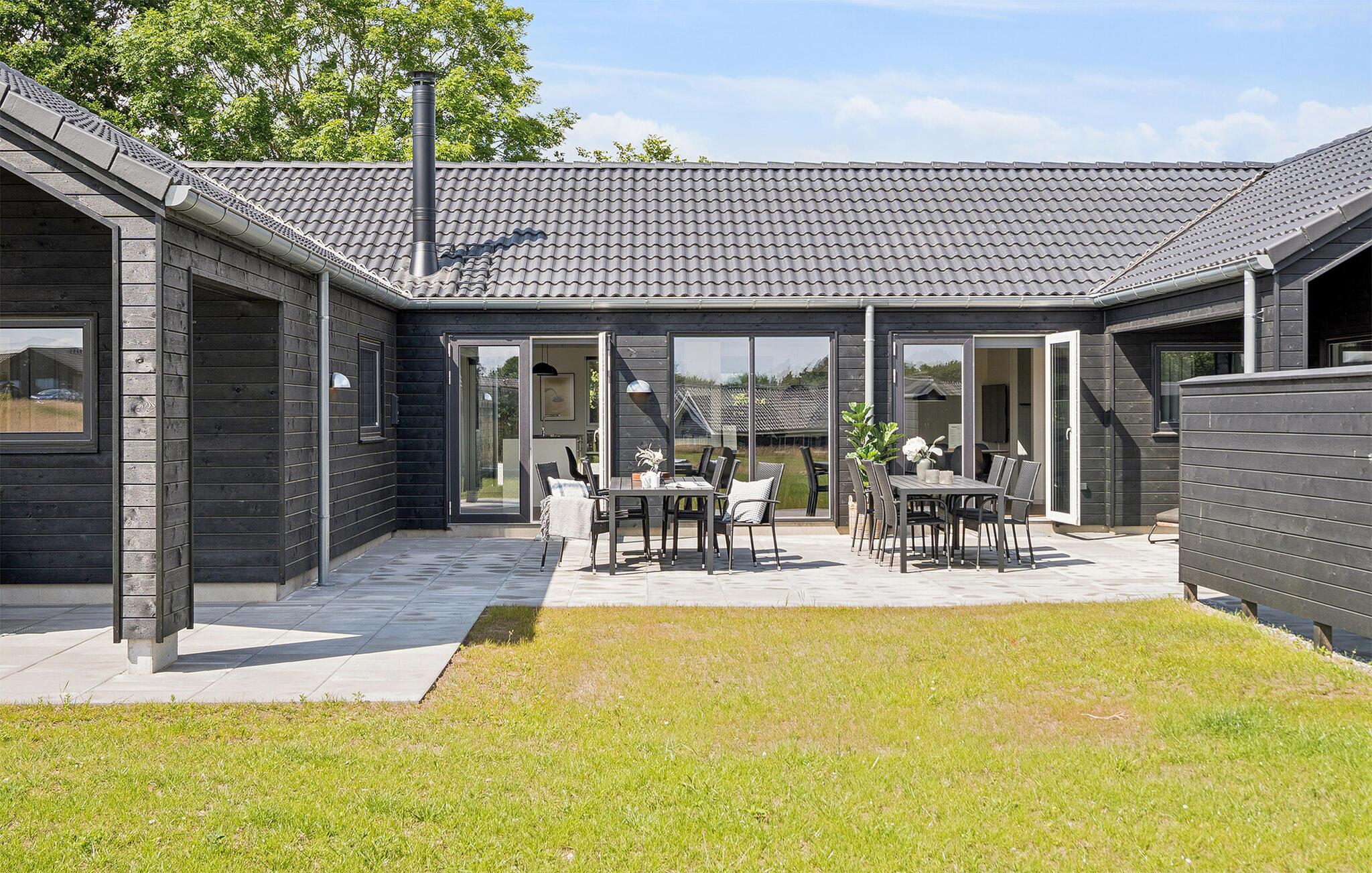 Udenfor indbyder den store terrasse til hyggestunder. Nyd dagens måltider udendørs, slap af i solen eller træk jer tilbage med en bog. Børnene kan se frem til en trampolin i haven. For øjeblikke med velvære er der et spabad til rådighed, oplagt til at afslappe krop og sind.