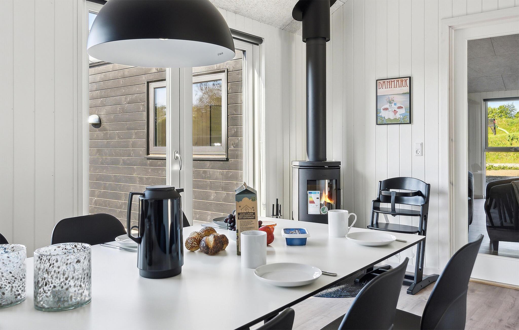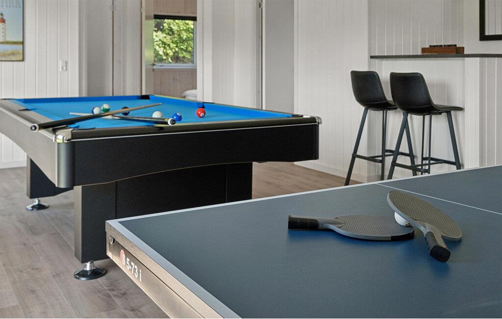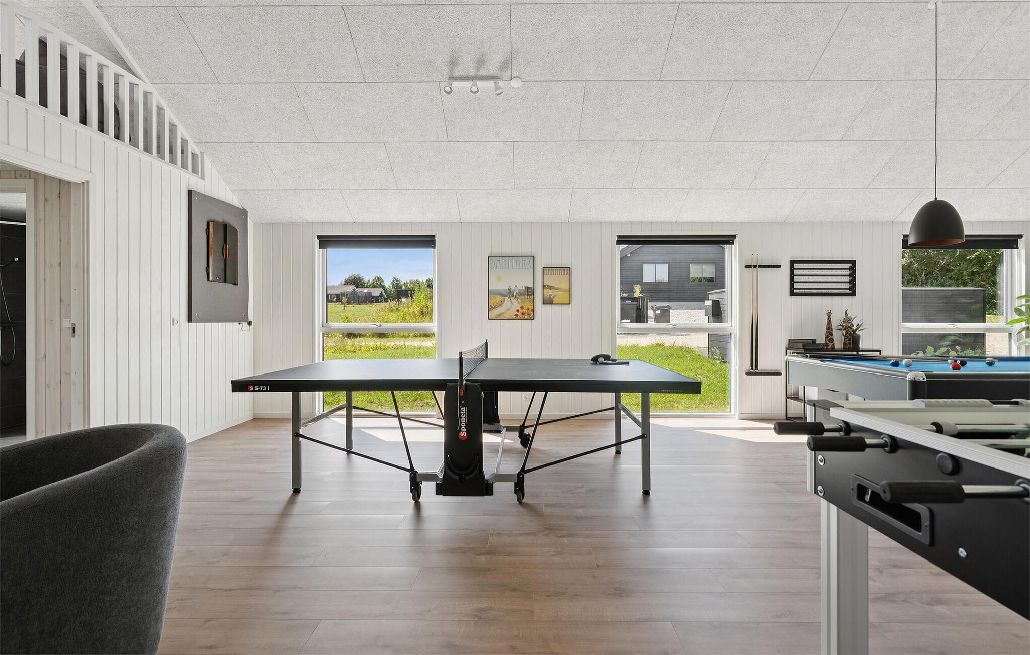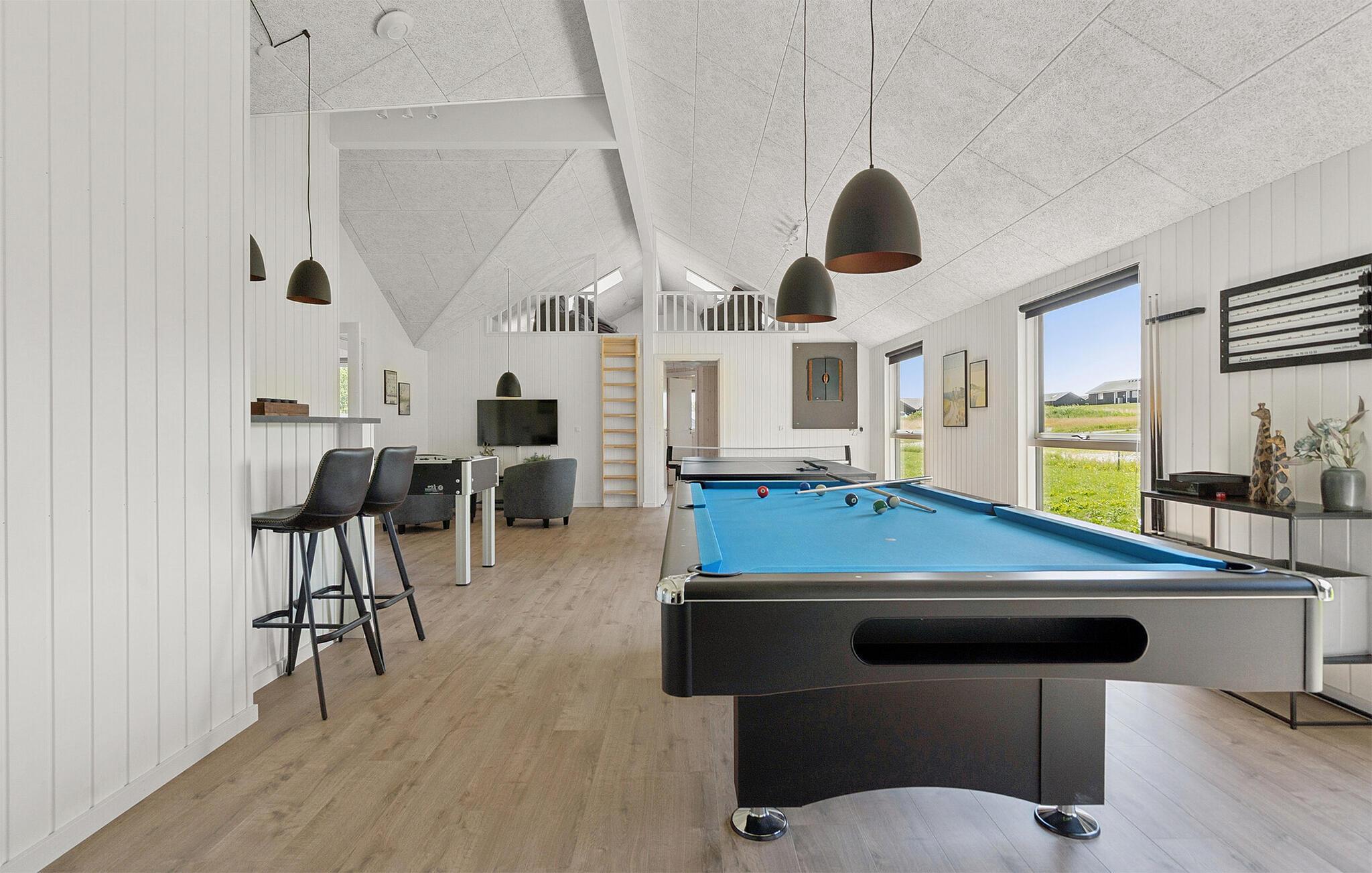 Dette indbydende feriehus på Als kombinerer stilfuld indretning med utallige muligheder for spil, sport og afslapning. Det åbne opholdsområde er husets hjerte. Her flyder køkken, spiseplads og sofahjørne hyggelig over i hinanden og skaber plads til fælles øjeblikke. Takket være store vinduer kan I nyde masser af dagslys og en dejlig udsigt. Et særligt højdepunkt er den indendørs pool med rutsjebane, perfekt til badesjov i alle årstider. Bagefter byder saunaen på ren afslapning. Aktivitetsrummet har et poolbord, bordfodbold og bordtennis, så hele familien kan have det sjovt.
