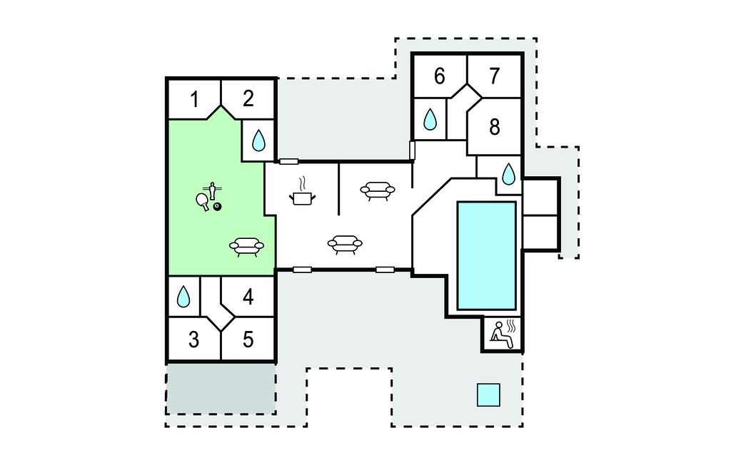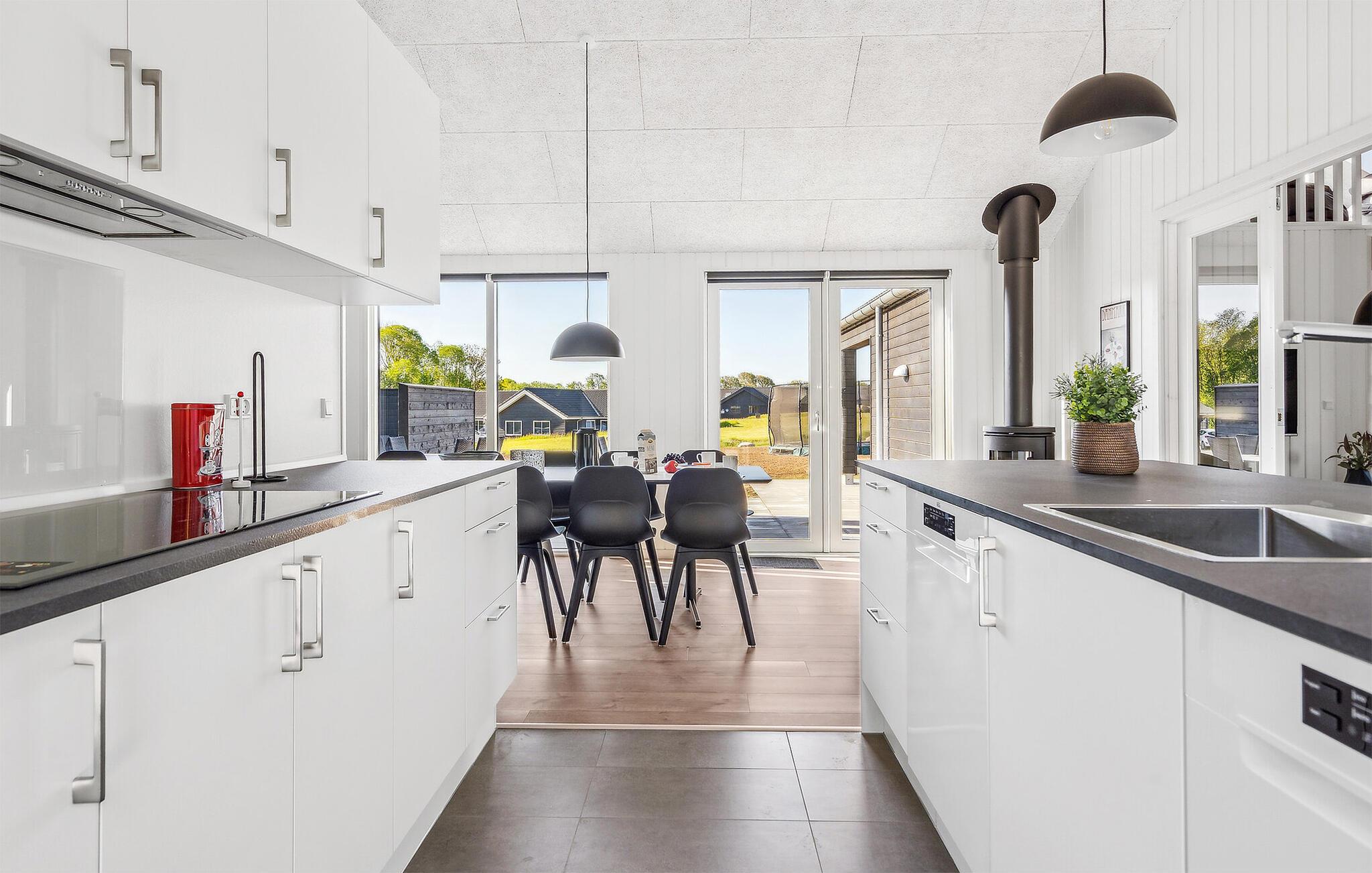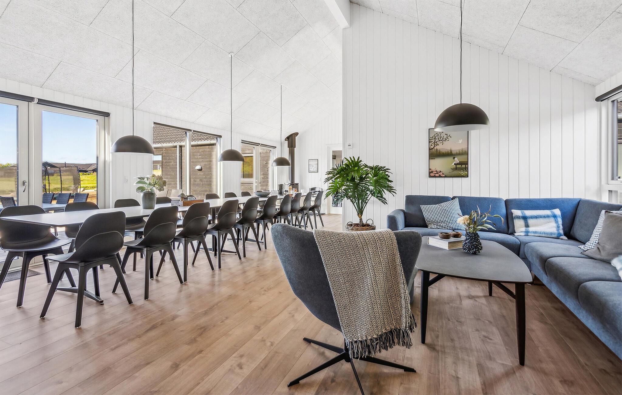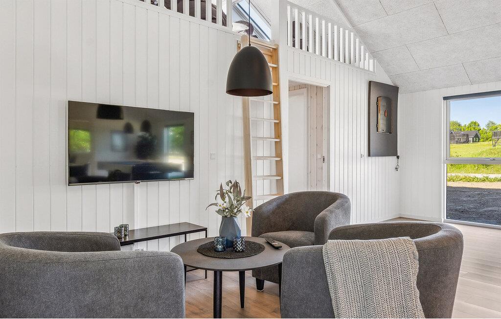 Dette indbydende feriehus på Als kombinerer stilfuld indretning med utallige muligheder for spil, sport og afslapning. Det åbne opholdsområde er husets hjerte. Her flyder køkken, spiseplads og sofahjørne hyggelig over i hinanden og skaber plads til fælles øjeblikke. Takket være store vinduer kan I nyde masser af dagslys og en dejlig udsigt. Et særligt højdepunkt er den indendørs pool med rutsjebane, perfekt til badesjov i alle årstider. Bagefter byder saunaen på ren afslapning. Aktivitetsrummet har et poolbord, bordfodbold og bordtennis, så hele familien kan have det sjovt.