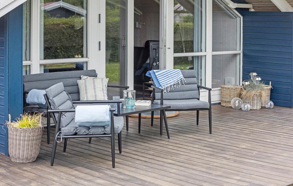 Udenfor er en del af den store terrasse overdækket, så I kan nyde den friske luft selv i skiftende vejr. Hold grillaftener for hele familien og lad børnene lege i haven.