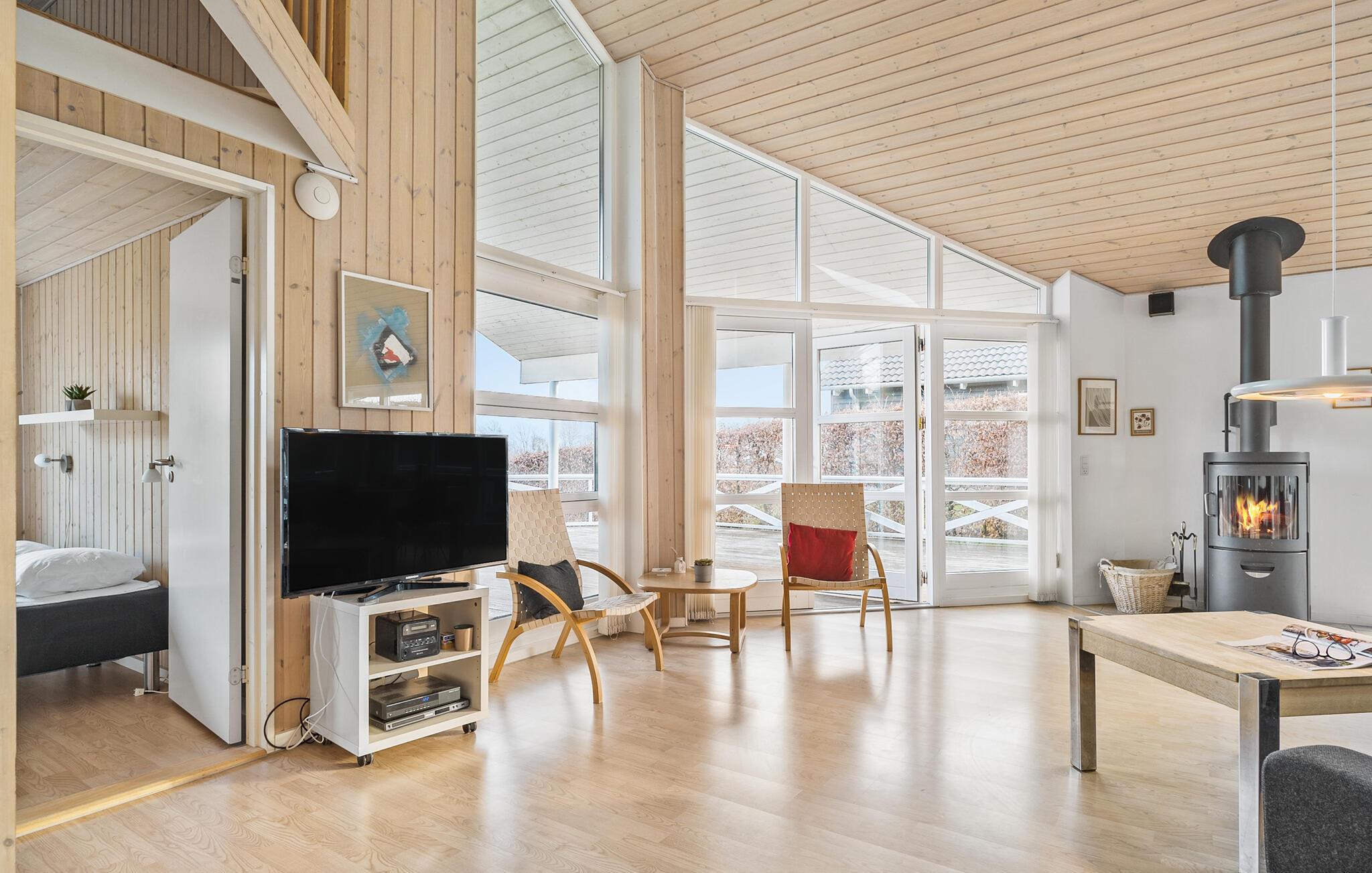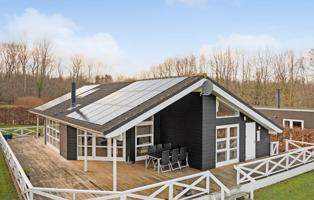 Tag familien med til Mommark Strand, hvor der venter jer denne perle af en feriebolig, der ligger i dejlige og rolige omgivelser. I får her de helt ideelle rammer for at kunne hvile stængerne efter en aktiv feriedag. Indretningen præges af højt til loftet og et dejligt lysindfald gennem de mange store vinduespartier, og i det åbne køkken-alrum venter jer mange hyggelige stunder i godt selskab. Gør madlavningen til et fornøjeligt fælles projekt, indtag jeres måltider ved spisebordet og gør jer det behageligt i sofaen ved brændeovnens sagte ild. For lidt god wellness kan I svede godt igennem i saunaen, og på de varme sommerdage kan I finde jeres yndlingsspot på en af terrasserne, hvor I kan finde sol, skygge og læ efter behov.