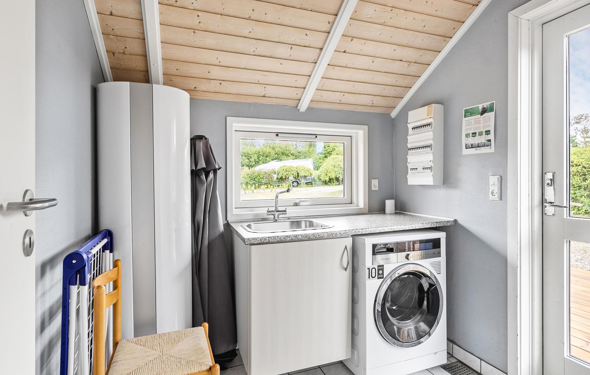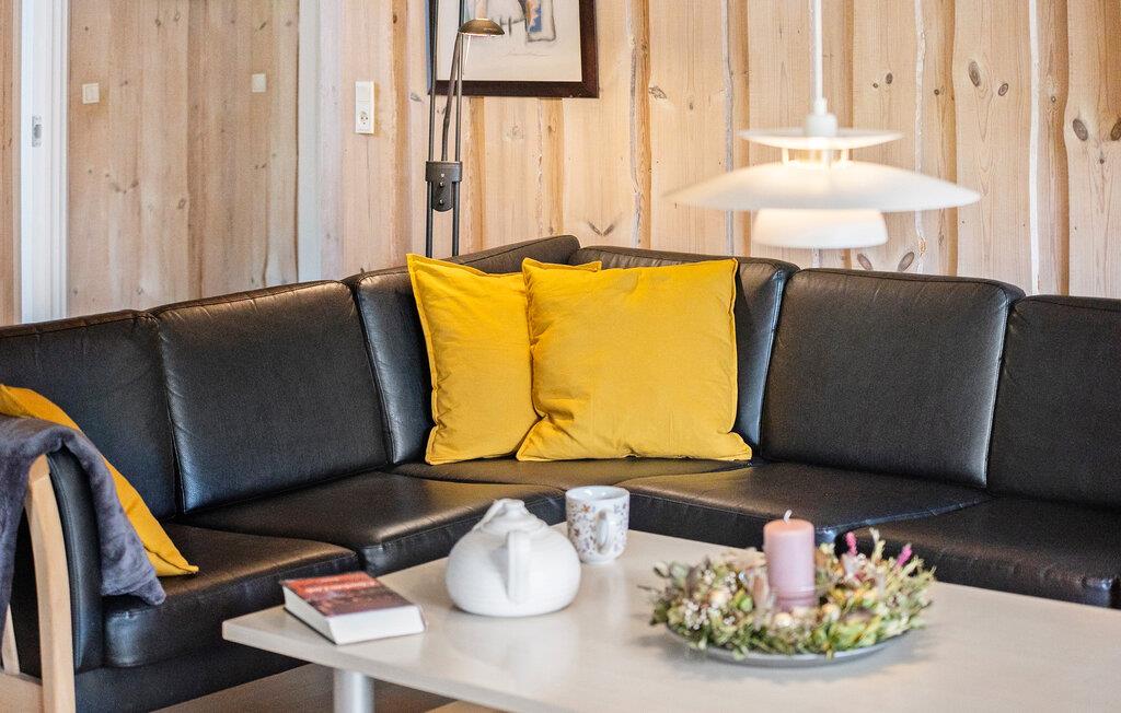 Dette smagfulde feriehus venter på jer i rolige omgivelser i Syddanmark. Den hyggelige atmosfære lægger op til at starte dagen i fred, måske med en afslappet morgenmad ved det rummelige spisebord. Stuen med brændeovn, TV, spisebord og komfortabelt sofahjørne er det perfekte sted at tilbringe hyggelige timer. Se en film, lyt til musik eller nyd blot den blafrende ild. Efter en dag ved vandet eller i naturen kan I slappe af i saunaen eller det afslappende spabad.