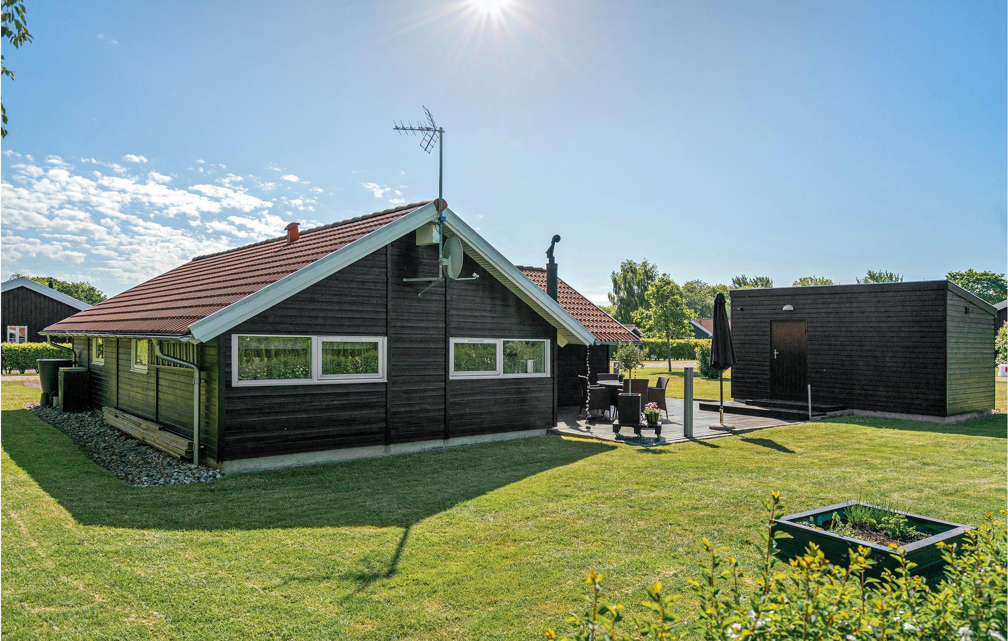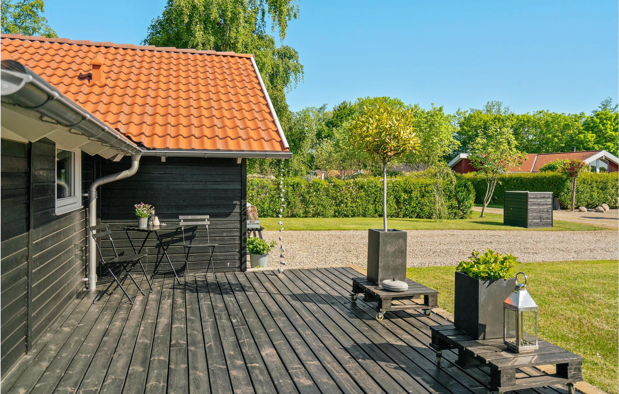 Hyggeligt sommerhus nær Mommark Strand med terrasse, brændeovn og moderne faciliteter.