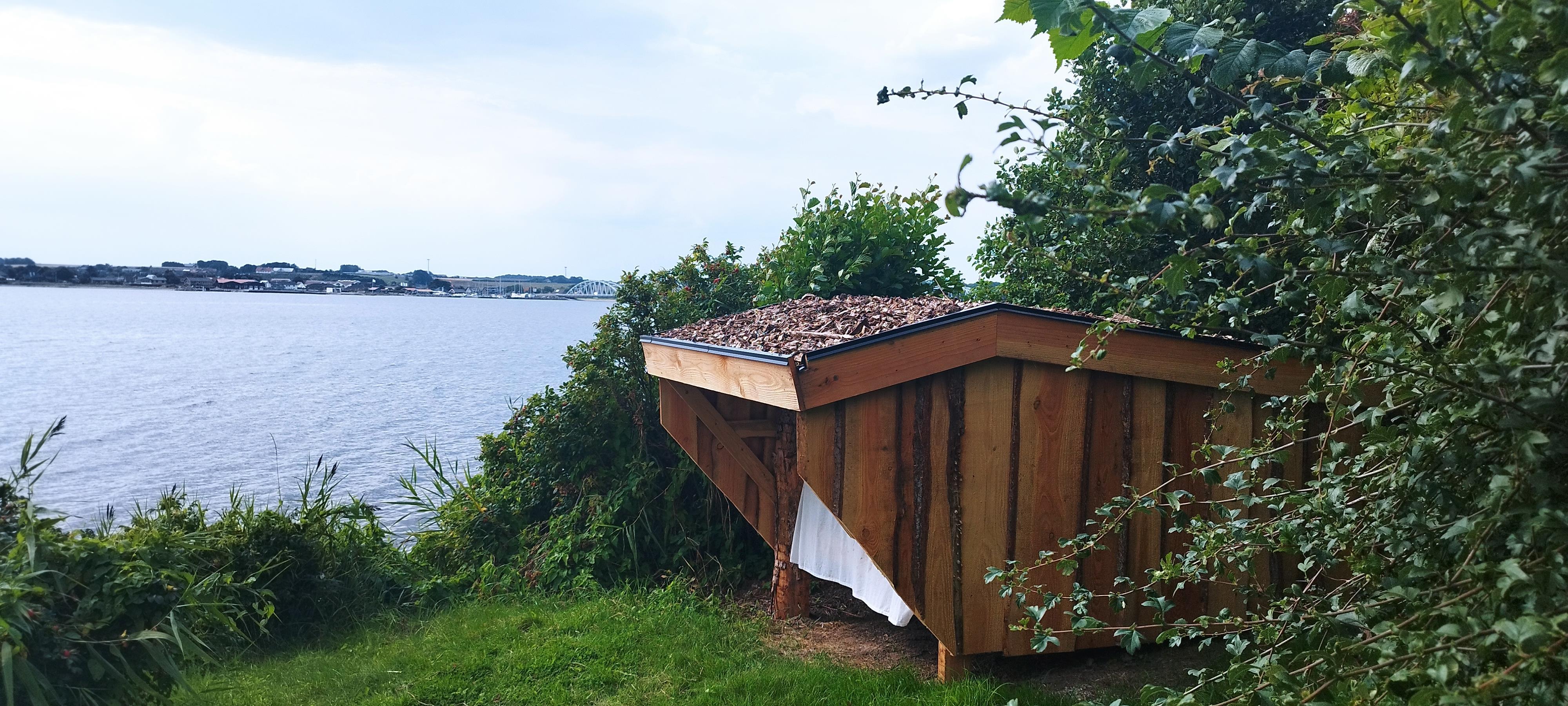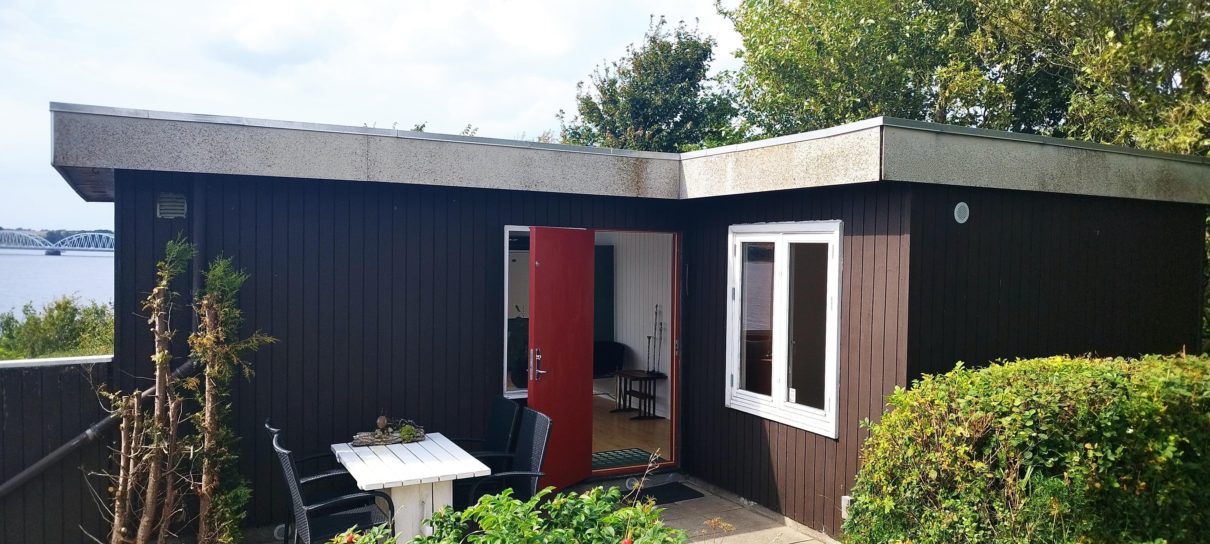 Huset ligger på en over 5000 kvadratmeter stor grund med store træer og rig mulighed for at finde et solspot med læ og lyden af fjordens bølgeskvulp.