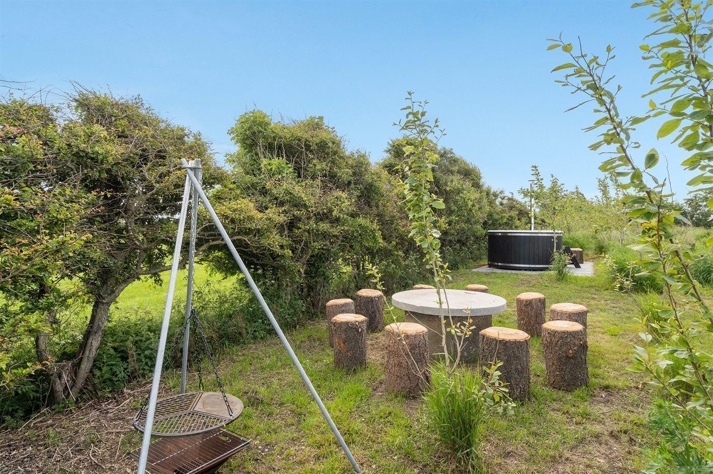 Ferieboligen er beliggende på en 15000 m² stor naturgrund med adgang til 115 m² åbent terrasseareal, fordelt på 3 terrasser, således der altid er muligt at finde et sted, hvor der er læ. Der er 250 m til fjorden. Nærmeste forretning er beliggende i en afstand af 3000 m. Der er en golfbane i en afstand af 20000 m. Der er redskabsrum. Fodboldmål. Bålsted. Grill til rådighed. Parkering ved ferieboligen.