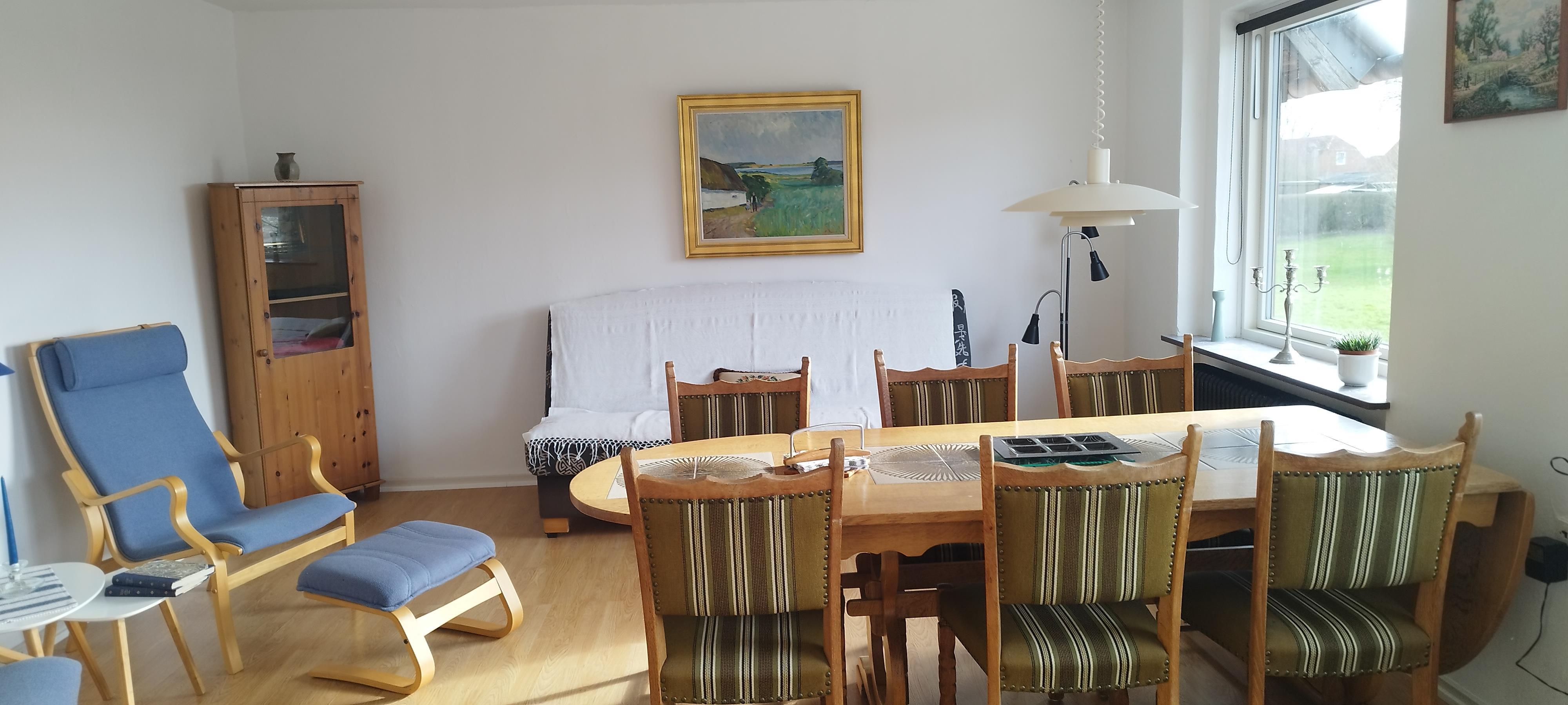 Redsted Sognegård tilbyder en rummelig ferielejlighed på 111 m², ideel til op til 9 personer. Lejligheden på første sal har tre værelser: et med tre enkeltsenge, et med en trekvartseng, og stuen har både en dobbeltseng, der kan afskærmes med gardin, samt en trekvartsovesofa. Derudover er der et fuldt udstyret køkken og et badeværelse med toilet og bruser.