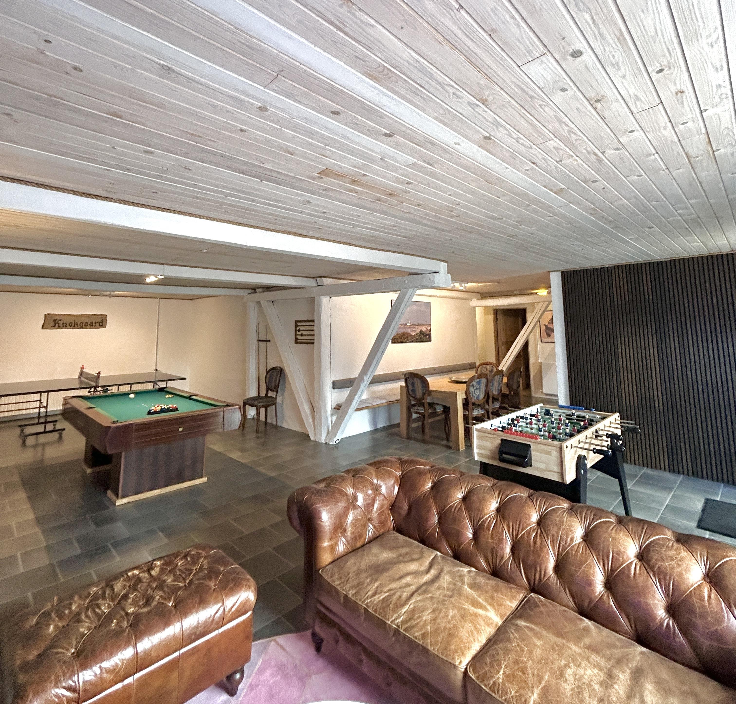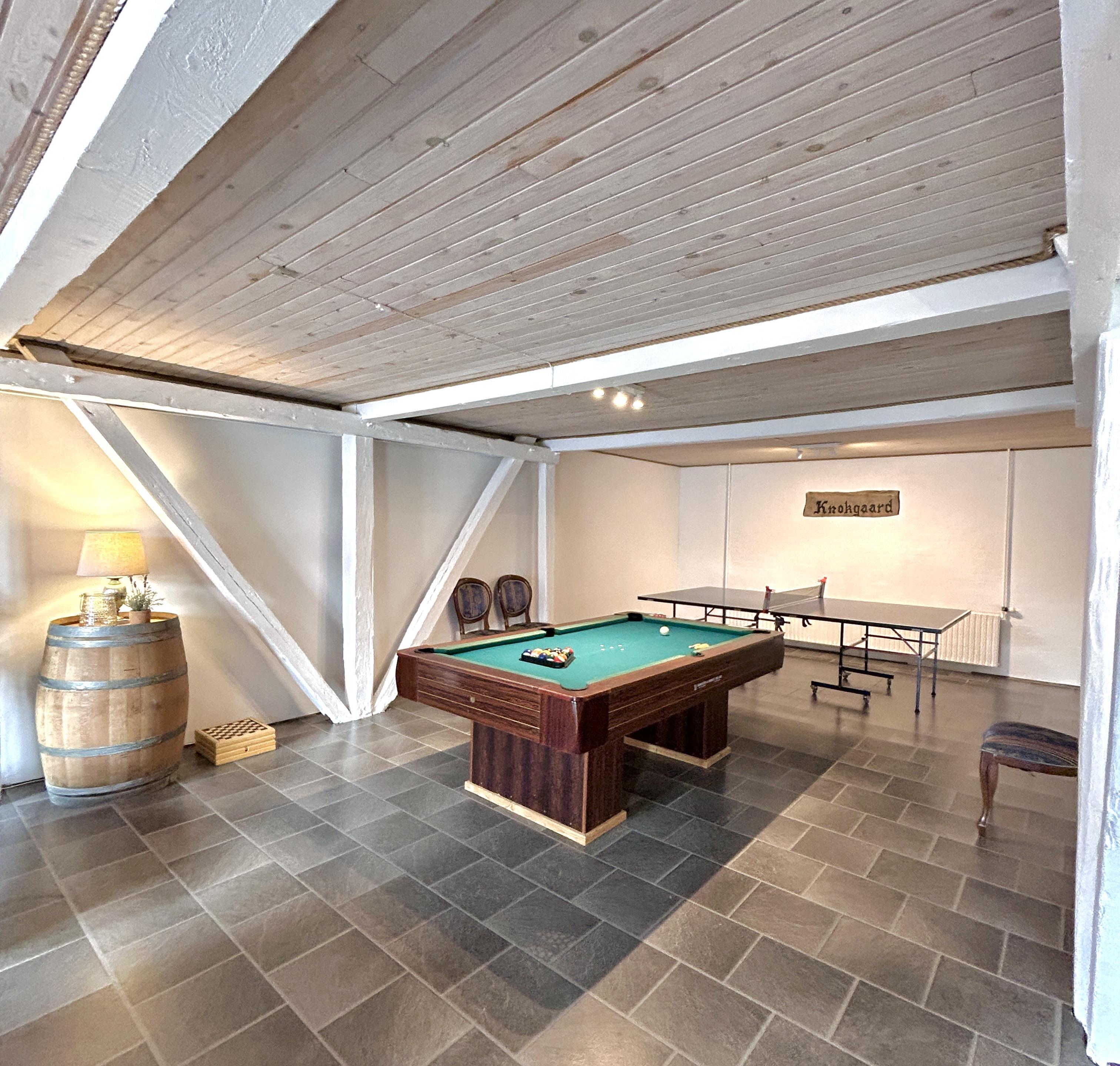 Knokgaard er en unik ferieoplevelse fordelt på tre bygninger - et hovedhus, et poolhus og et anneks, som tilsammen tilbyder både komfort og underholdning: