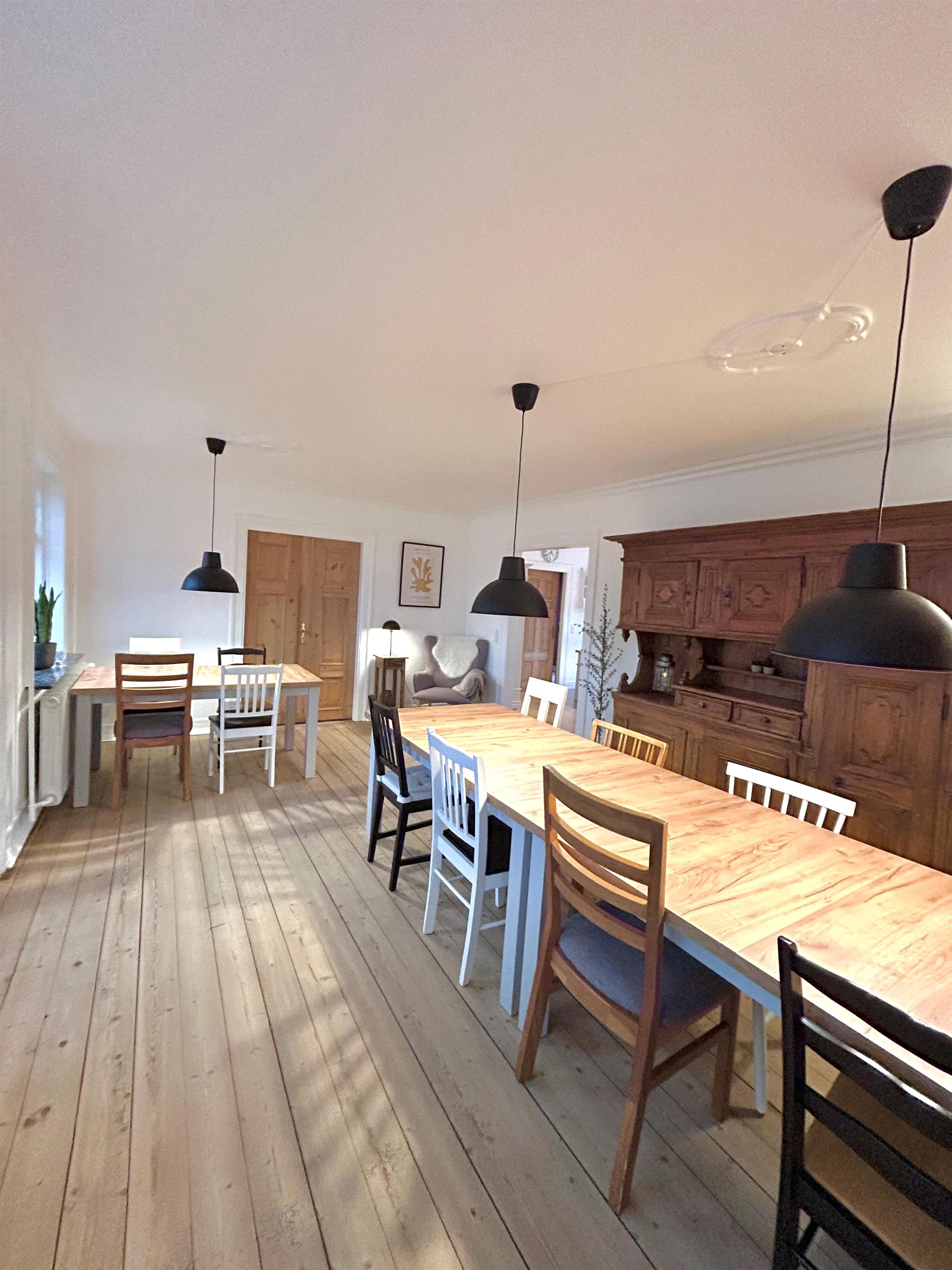 - Moderne køkken/alrum og stor spisestue med god plads til fællesskab (stuen)