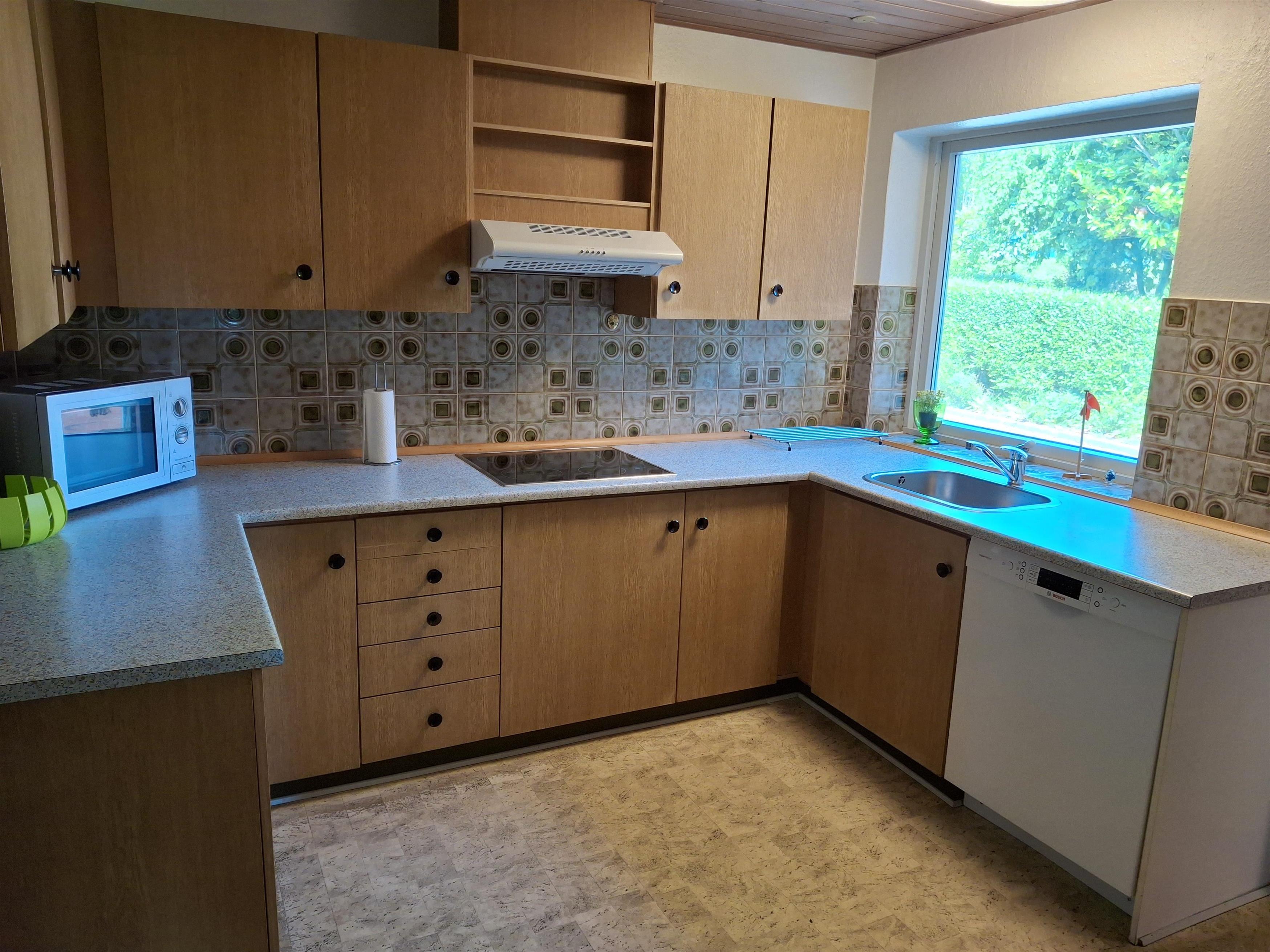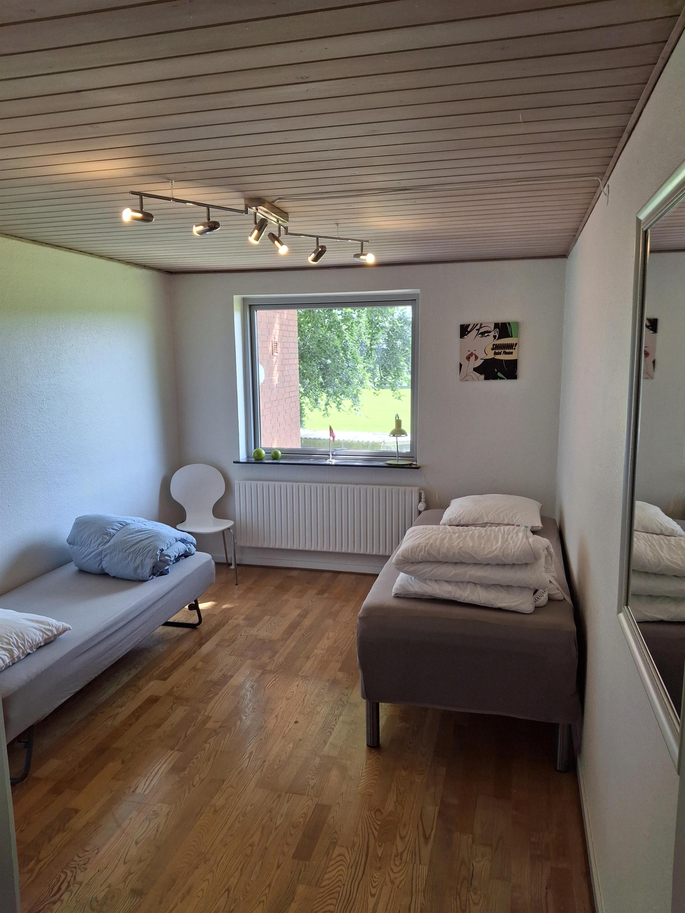 Stor skøn ferielejlighed på 105 m2. Der er to værelser. Et værelse med db. seng og et værelse med 2 enkeltsenge. Desuden en db. sovesofa i opholdsrum. Der er billardbord i huset samt stor boldbane udenfor som må benyttes til leg.