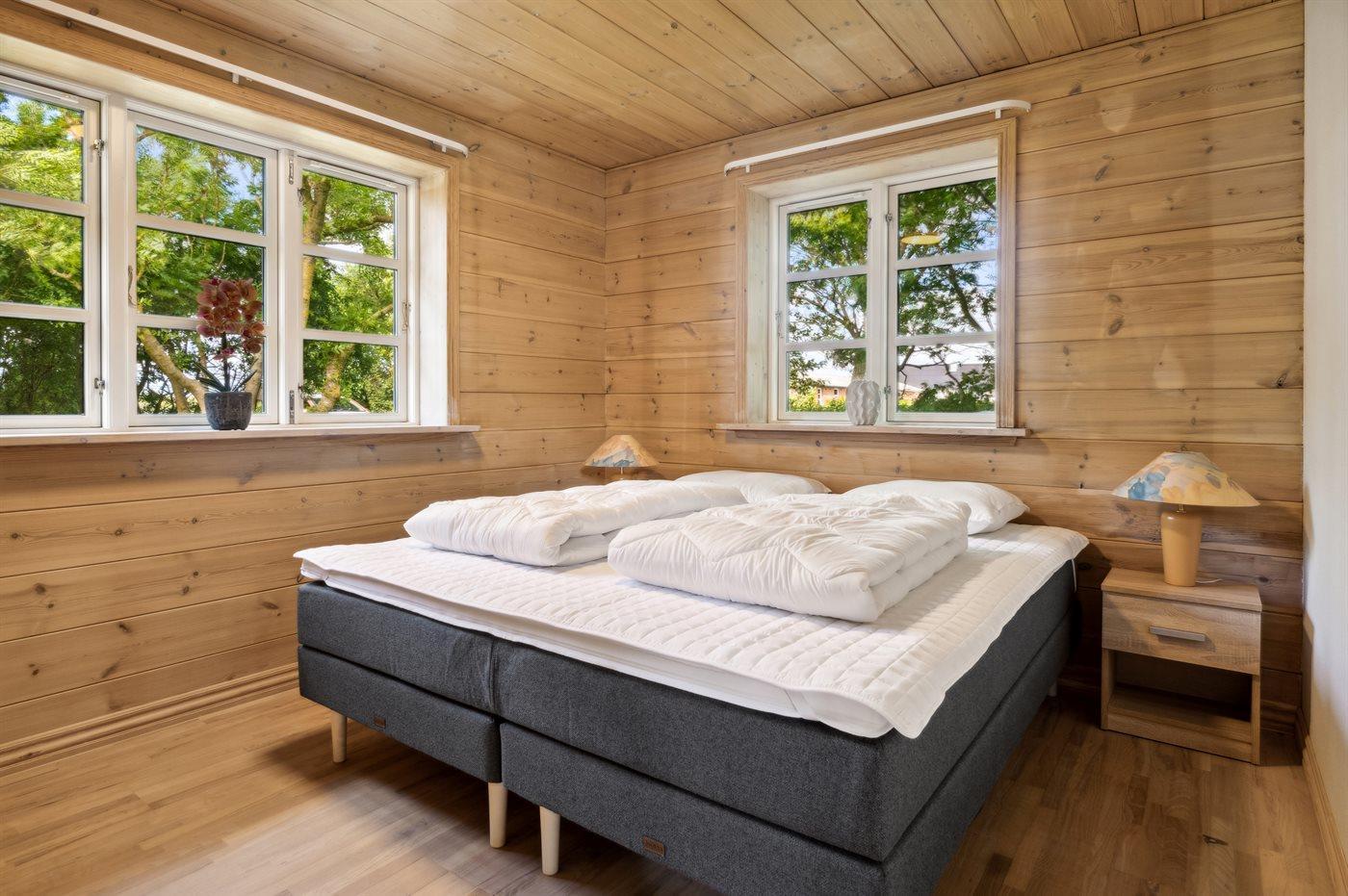 Dejligt sommerhus med en fantastisk beliggenhed i landlige omgivelser - med udsigt over Limfjorden fra begge sider af huset. Sommerhuset egner sig til 8 personer samt 1 barn op til 3 år. Der er i alt 4 soveværelser. Sovepladserne fordeler sig på: 6 sovepladser i dobbeltsenge. 2 sovepladser i køjeseng. Derudover er der 1 stk. barneseng. Der er gulvvarme i 4 af soveværelserne.