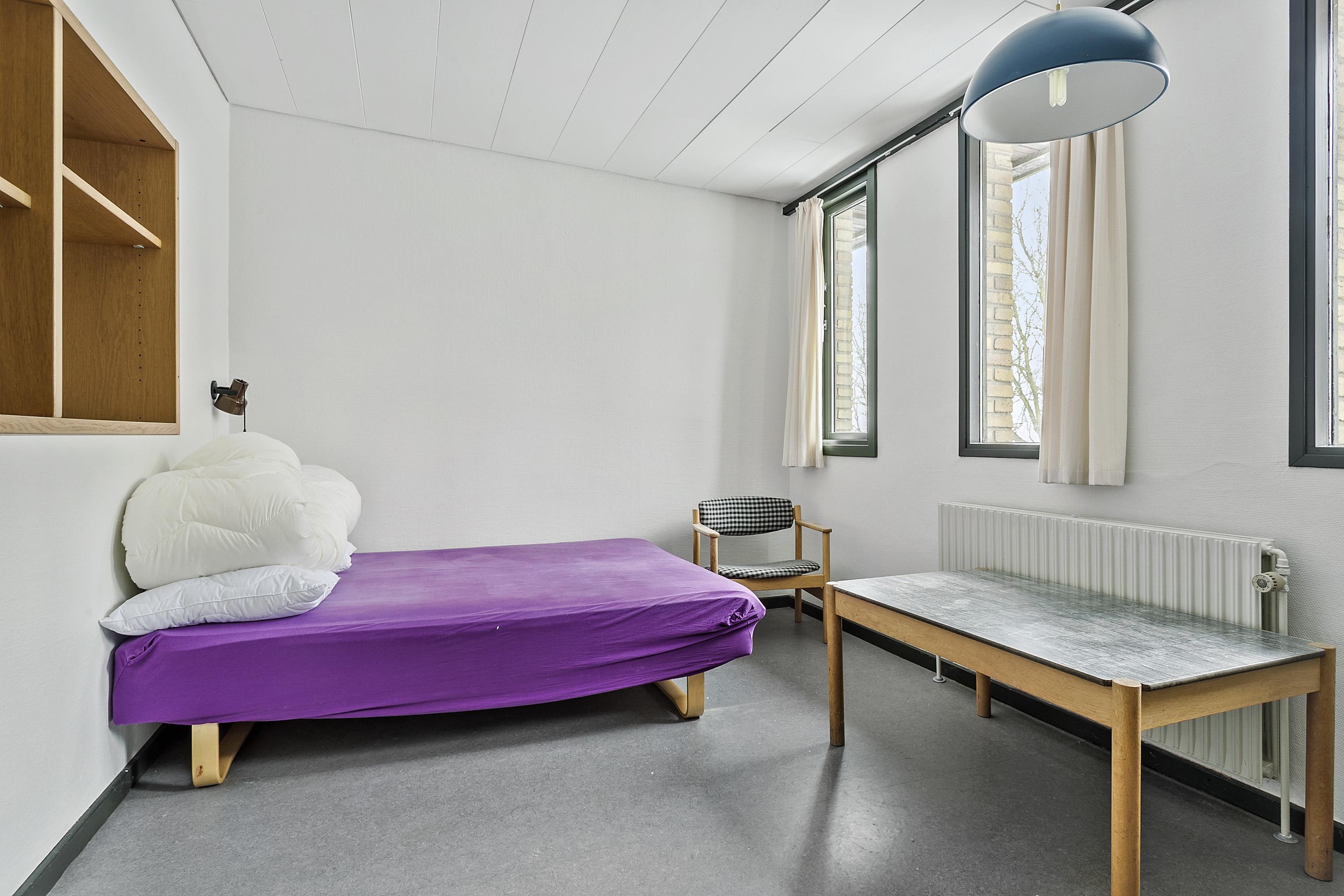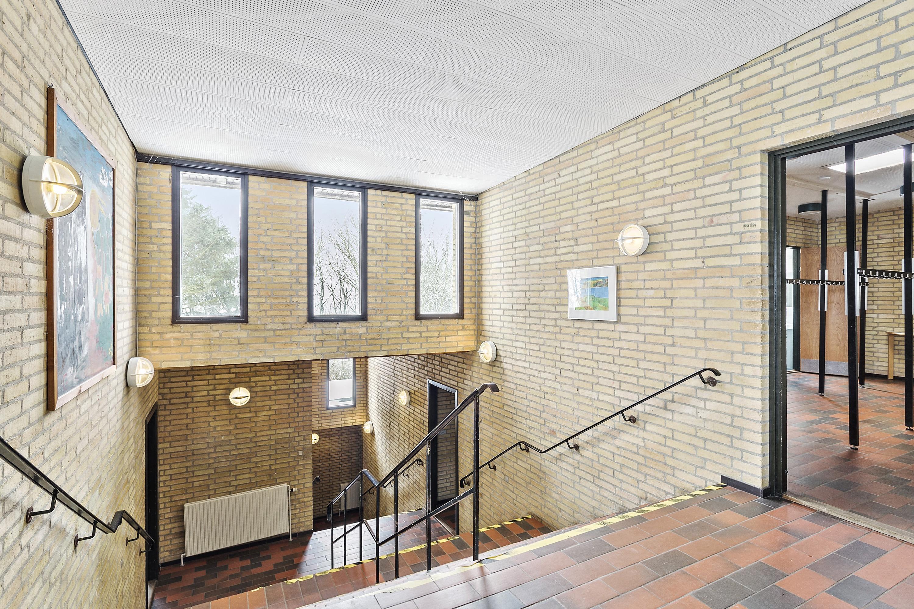 Lejrskolen er en sammenhængende bygning i fire forskudte plan.