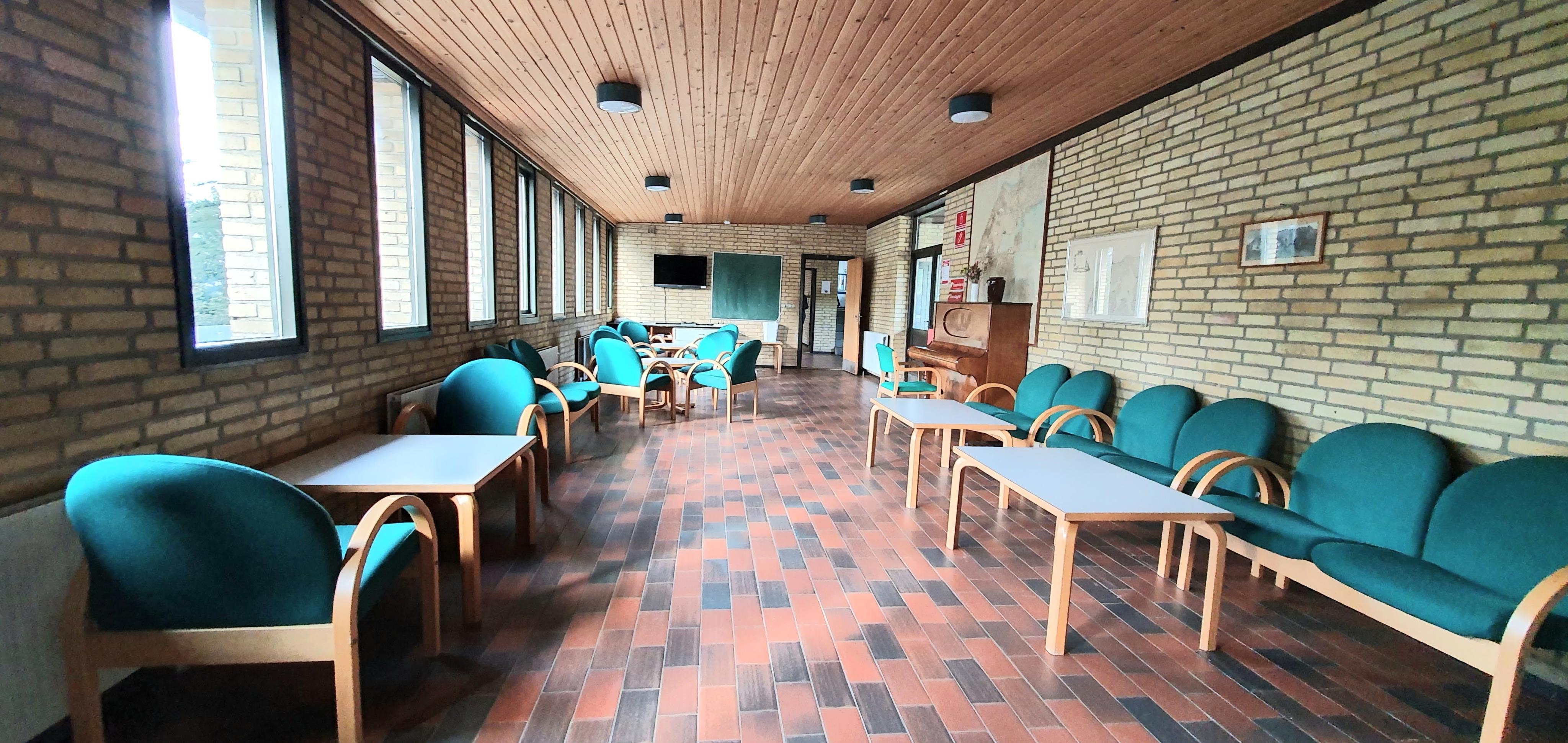 Stue på ca. 40 m2 samt bordtennisrum på ca. 20m2. Toiletter.