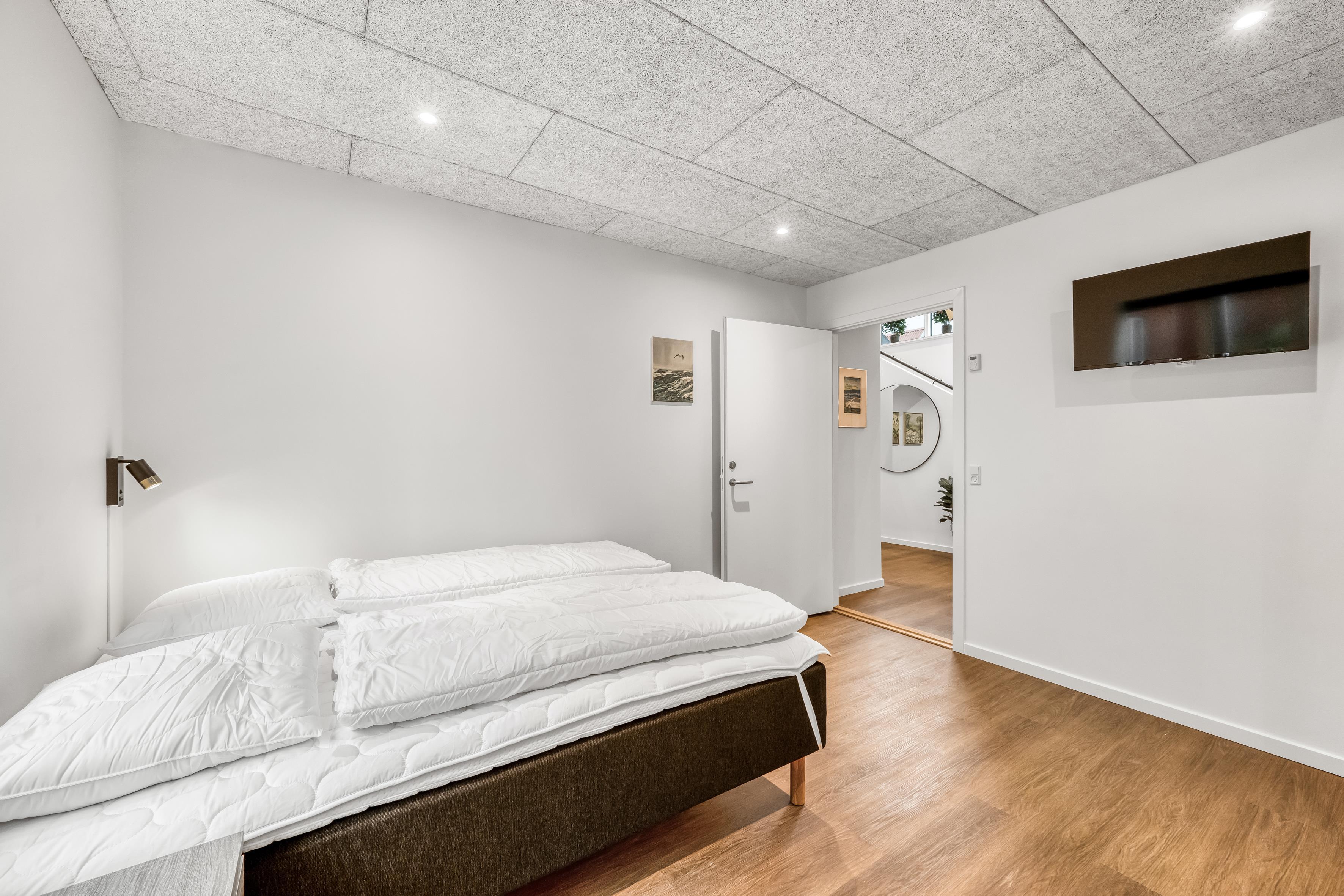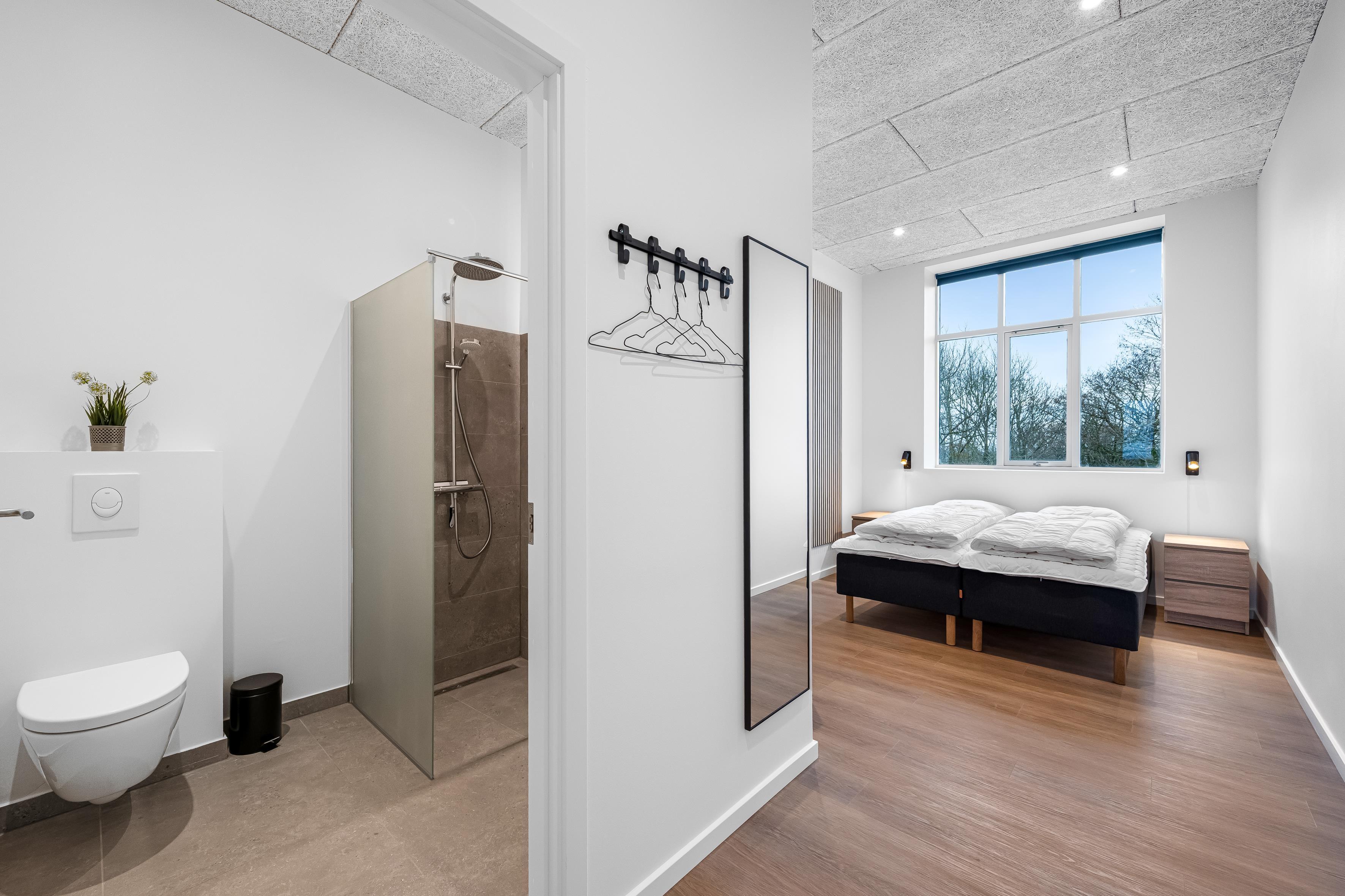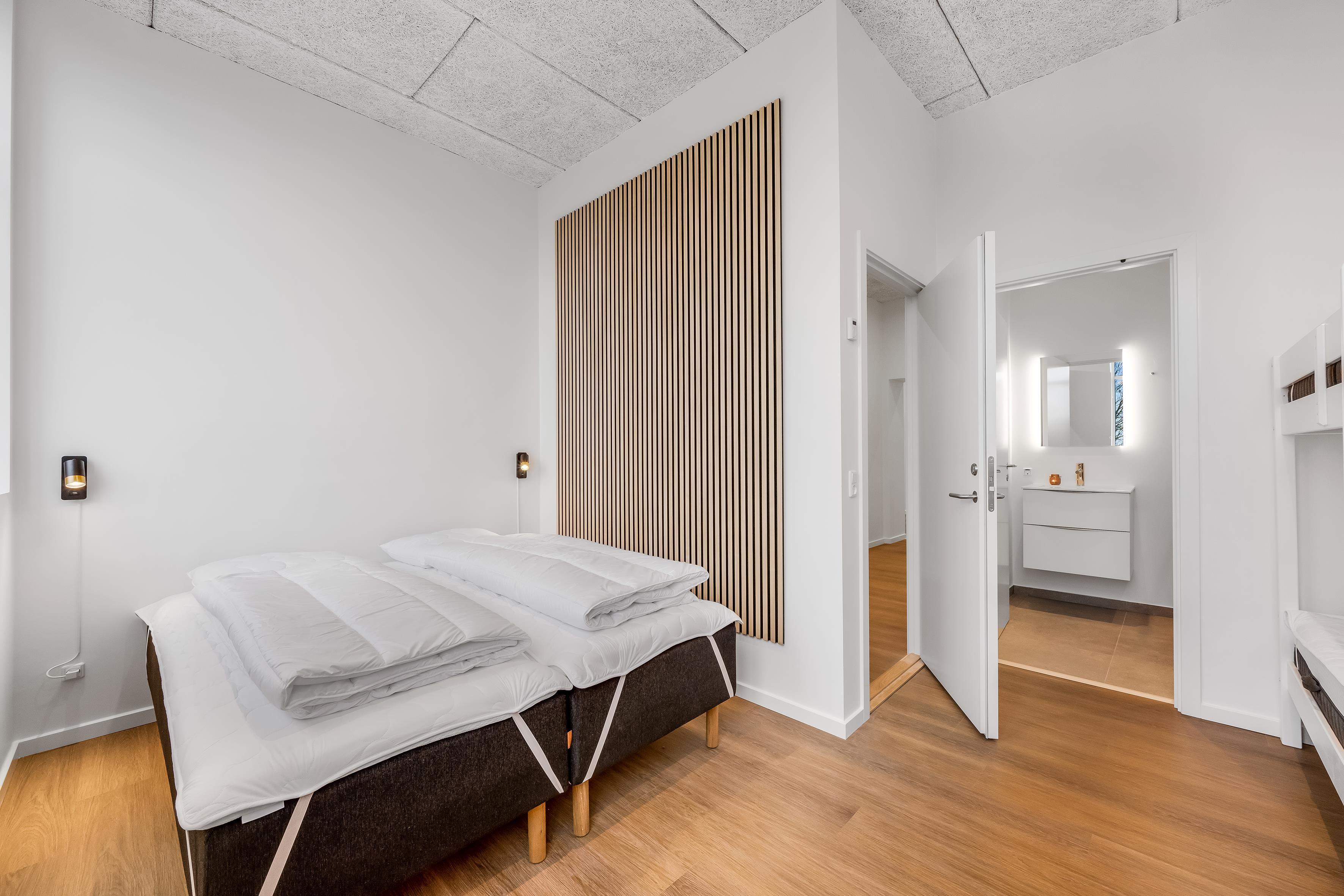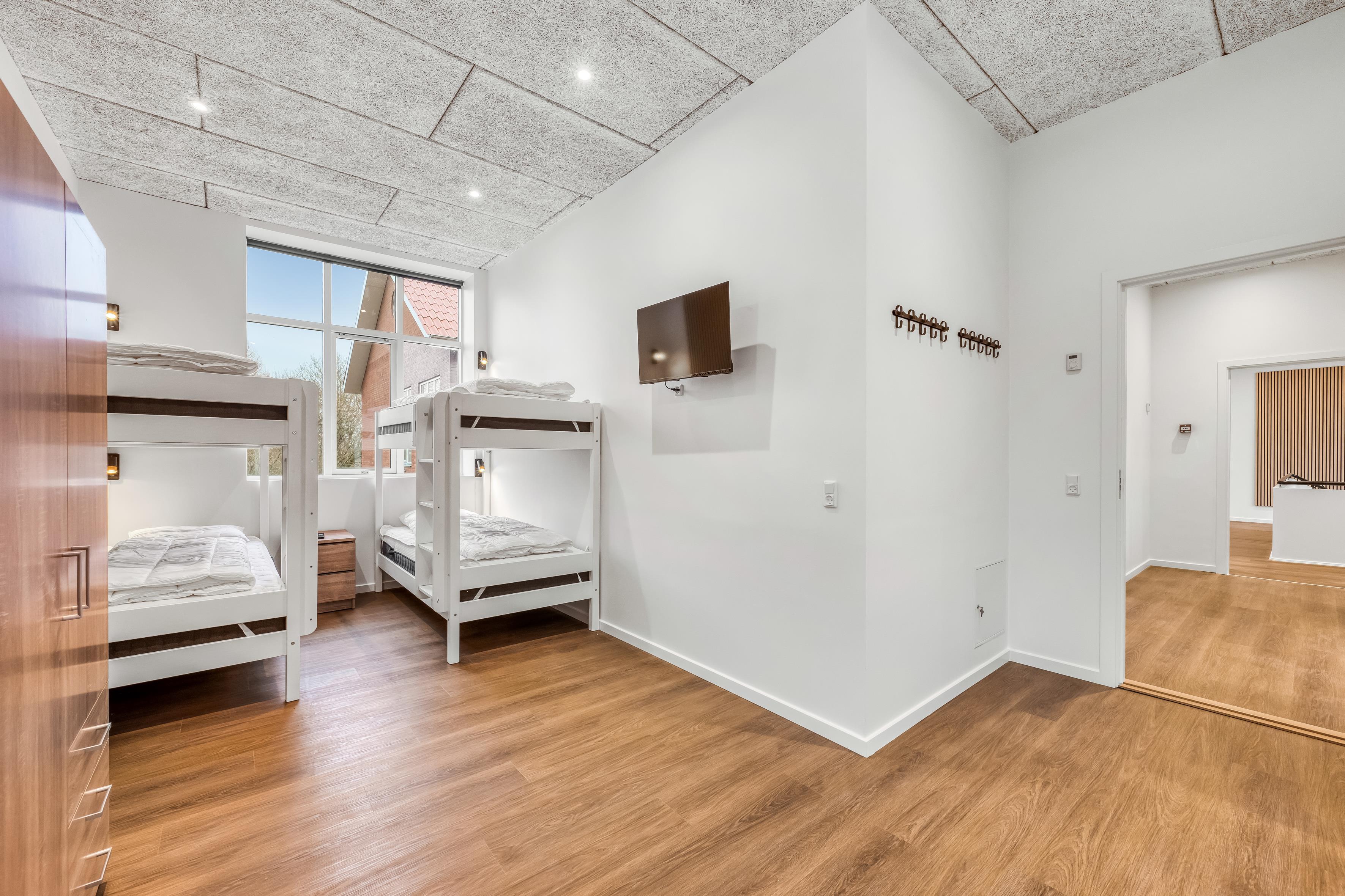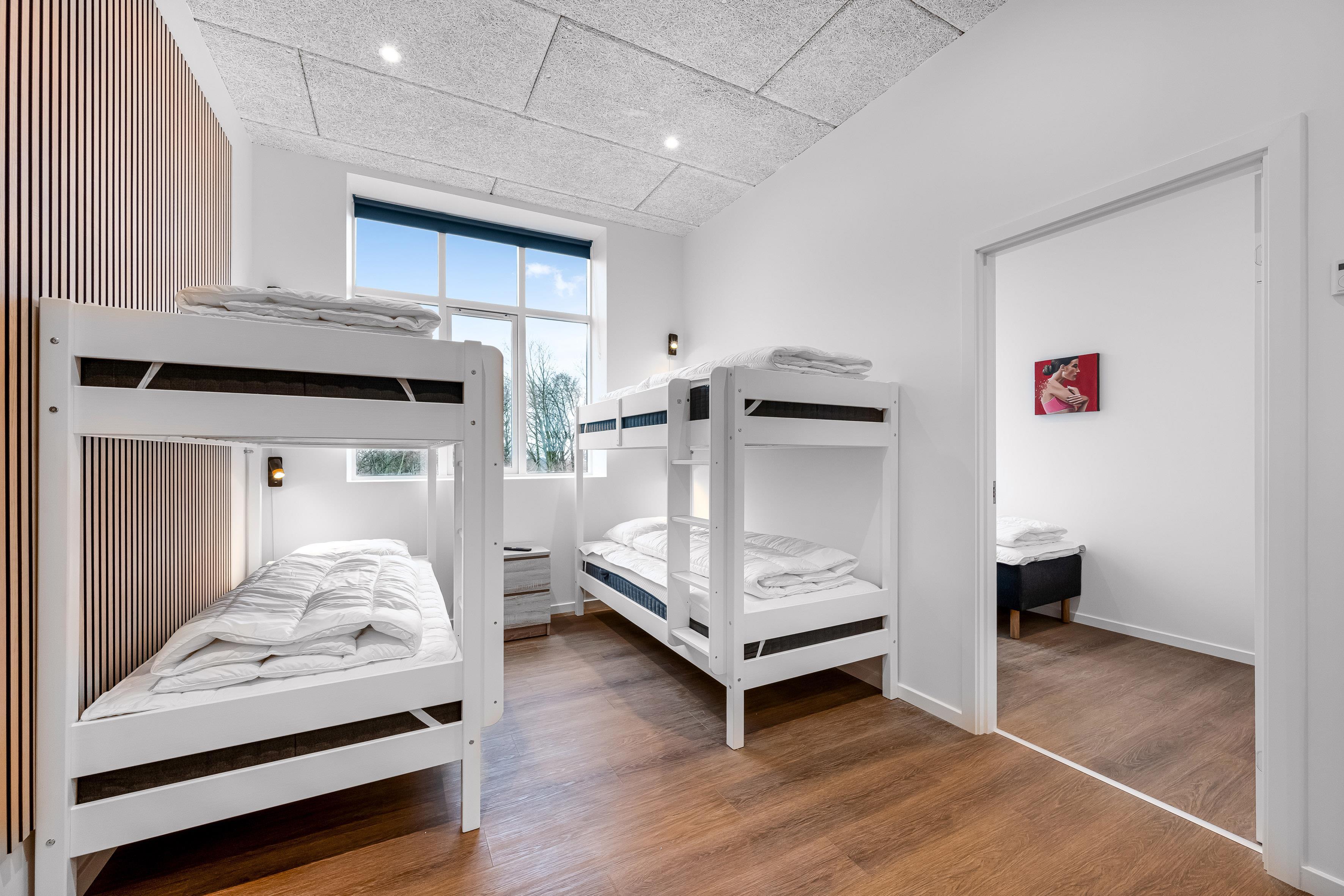 Indendørs findes der 16 rummelige soveværelser, der kan rumme op til 50 personer. Hvert værelse er udstyret med komfortable senge og på hovedparten af værelserne er der desuden et badeværelse, så der er plads til alle. Huset har i alt 15 badeværelser, hver med toilet, håndvask og bruseniche, som gør det nemt for en stor gruppe at forberede sig på dagens eventyr. Derudover er der gulvvarme i hele huset, inklusiv badeværelserne, hvilket sikrer en behagelig temperatur året rundt.