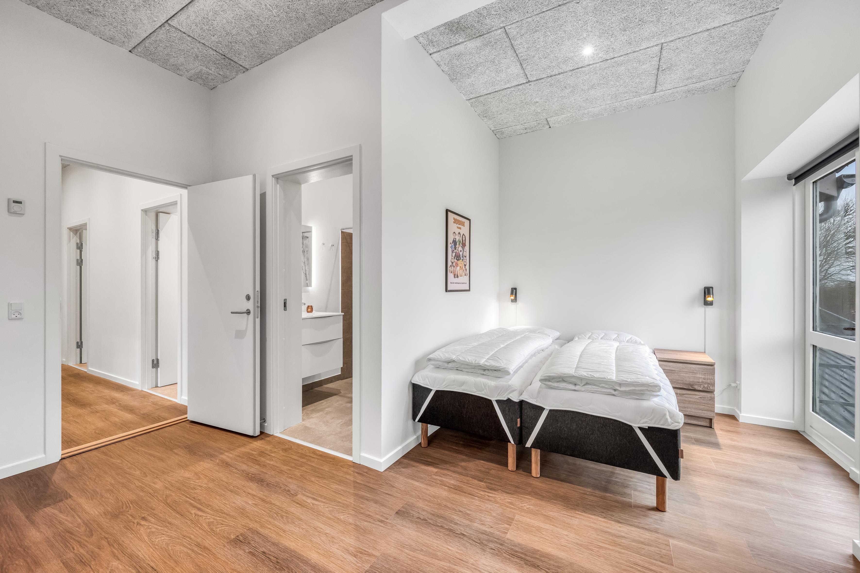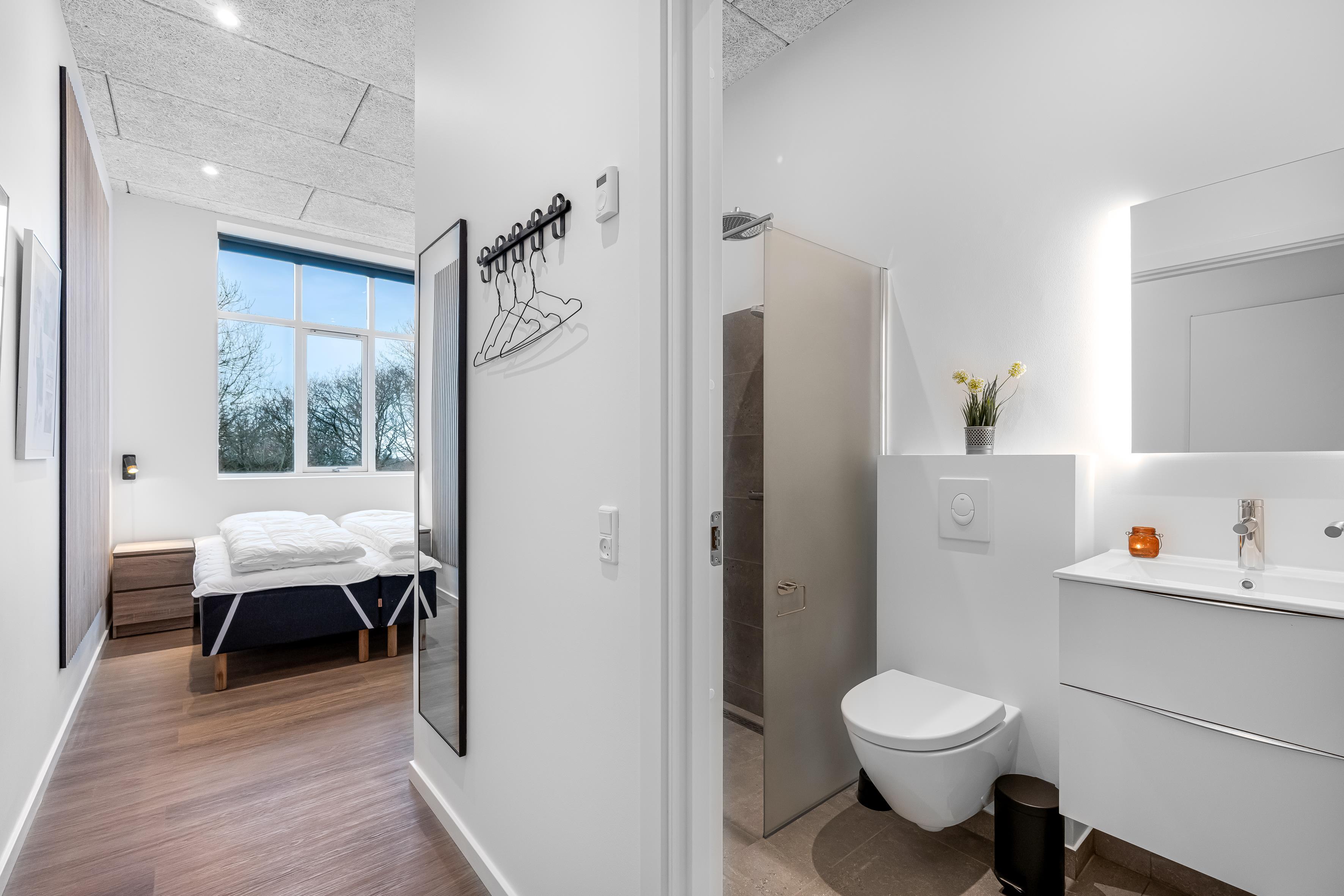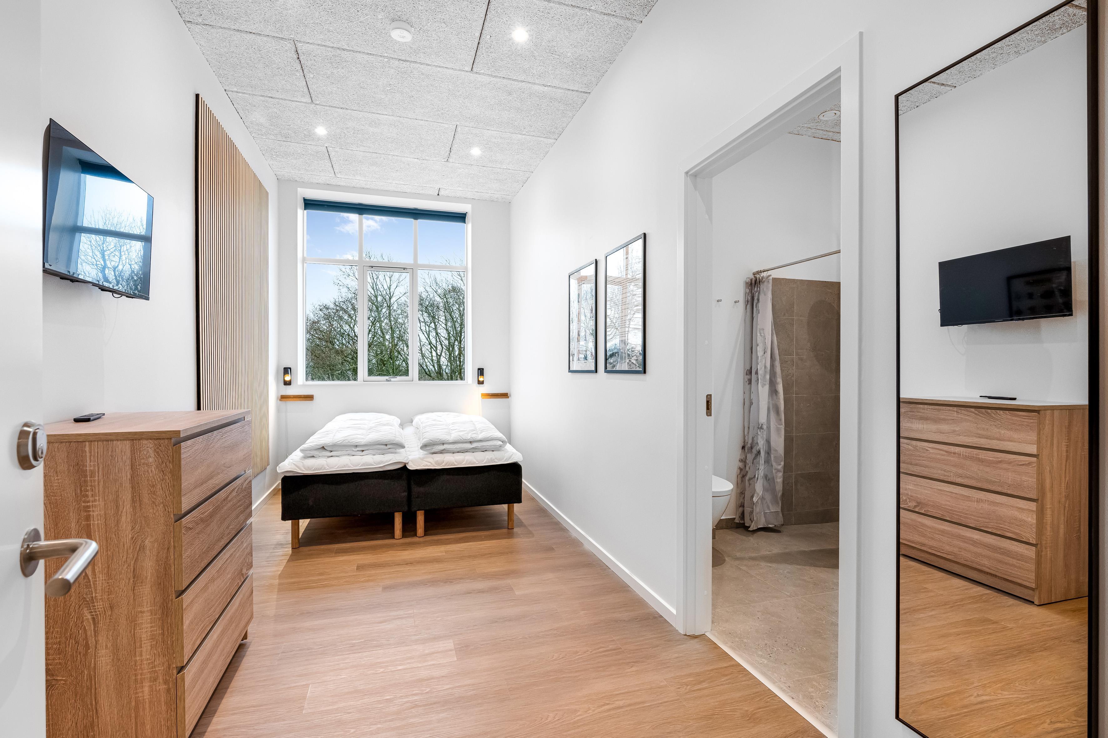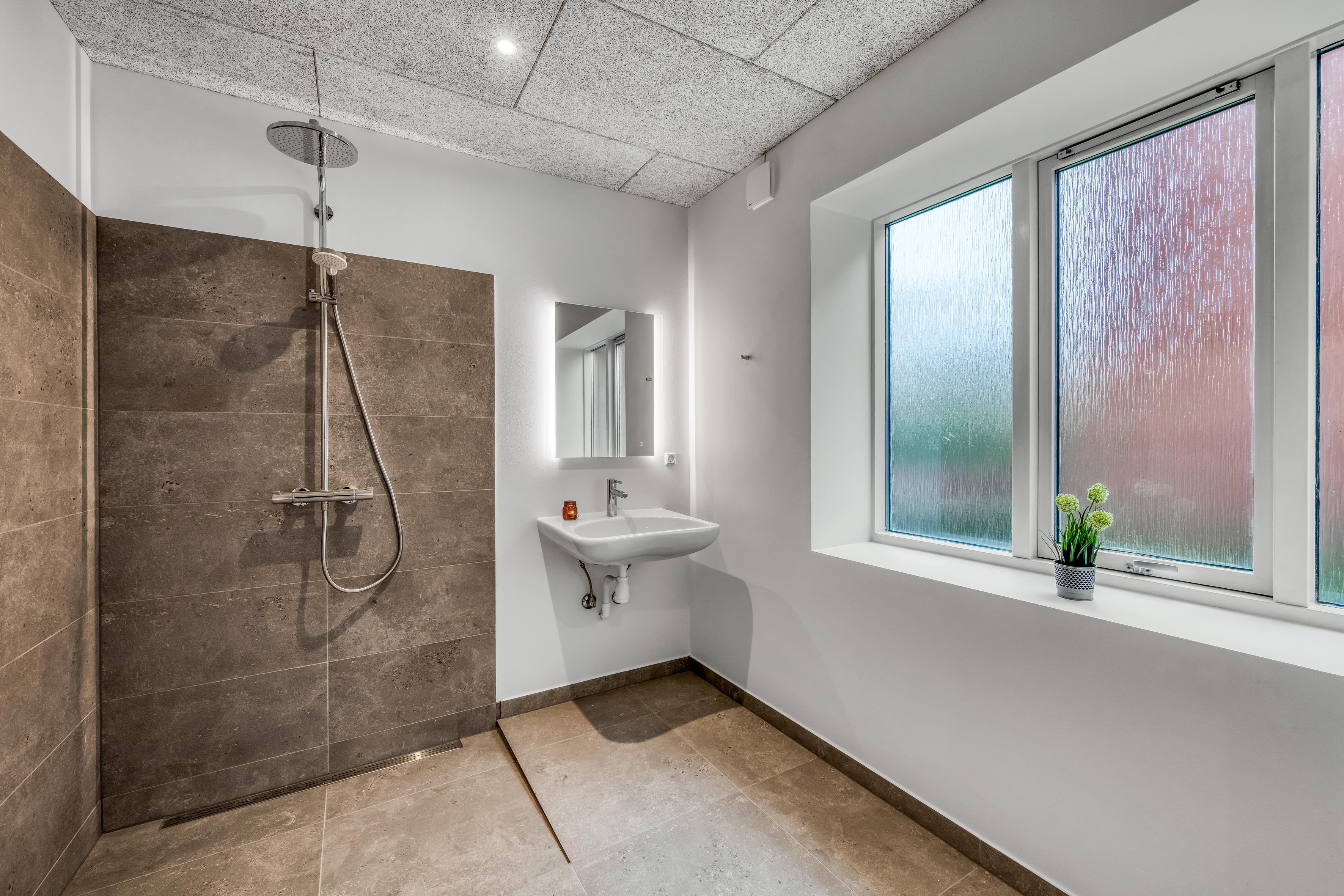 Indendørs findes der 16 rummelige soveværelser, der kan rumme op til 50 personer. Hvert værelse er udstyret med komfortable senge og på hovedparten af værelserne er der desuden et badeværelse, så der er plads til alle. Huset har i alt 15 badeværelser, hver med toilet, håndvask og bruseniche, som gør det nemt for en stor gruppe at forberede sig på dagens eventyr. Derudover er der gulvvarme i hele huset, inklusiv badeværelserne, hvilket sikrer en behagelig temperatur året rundt.