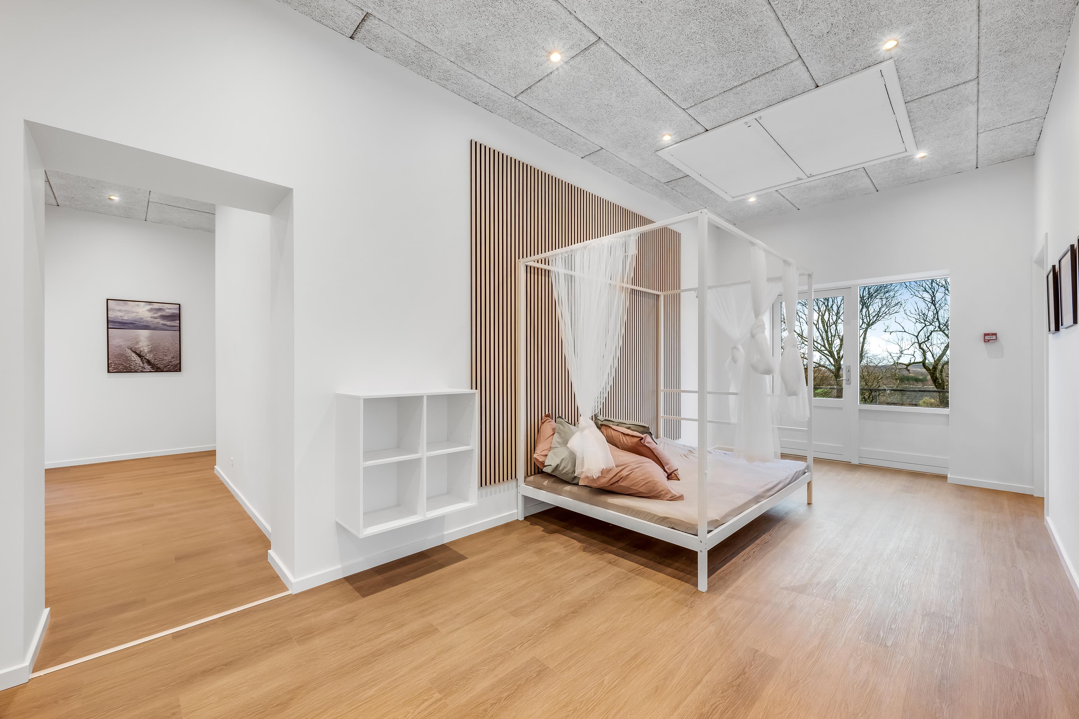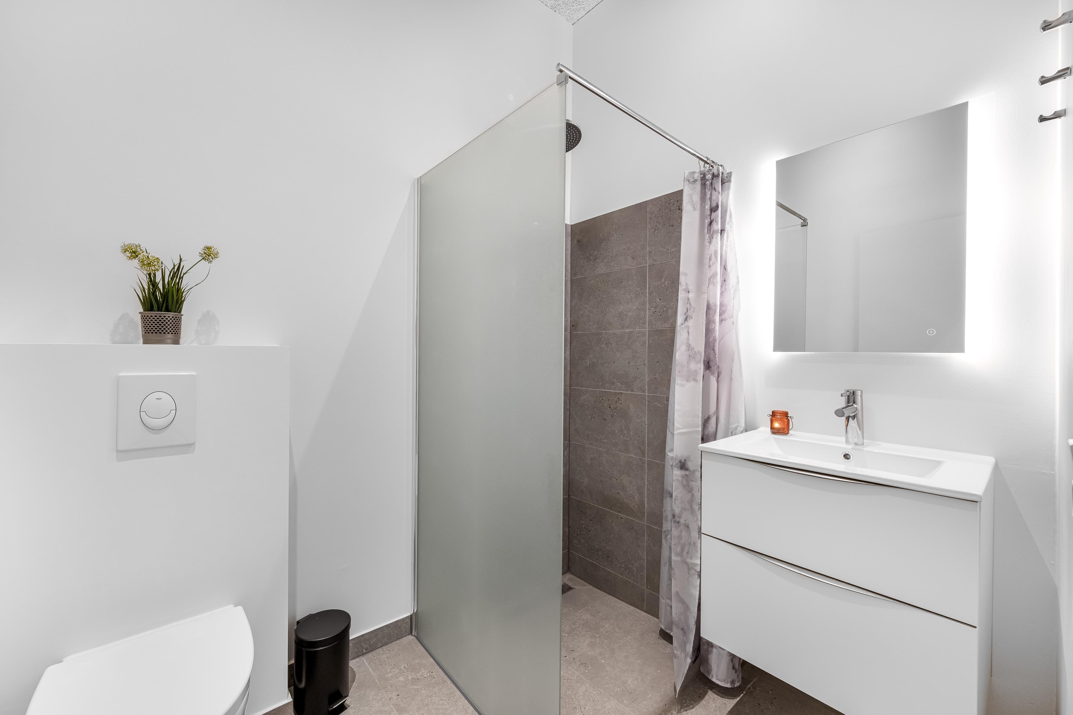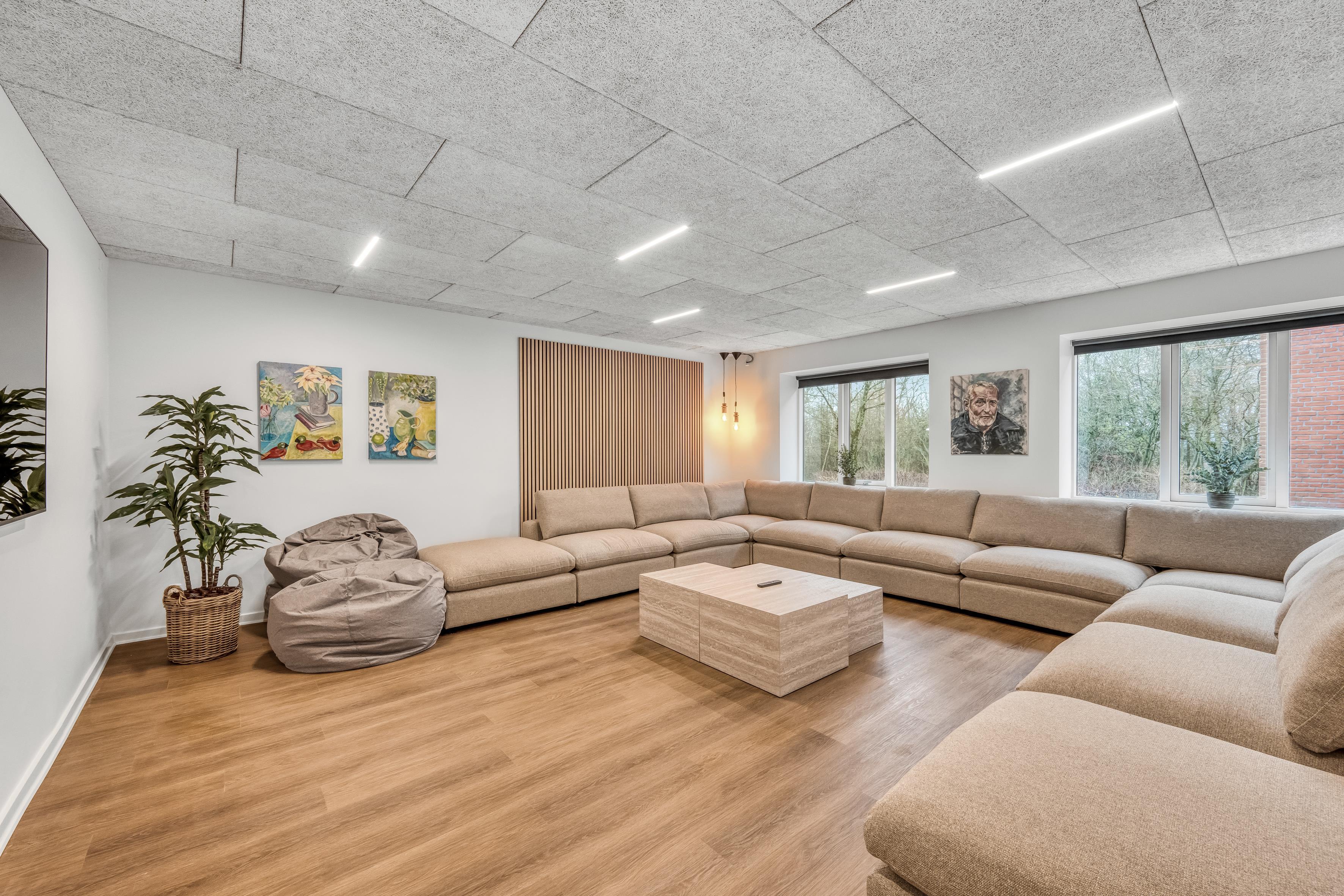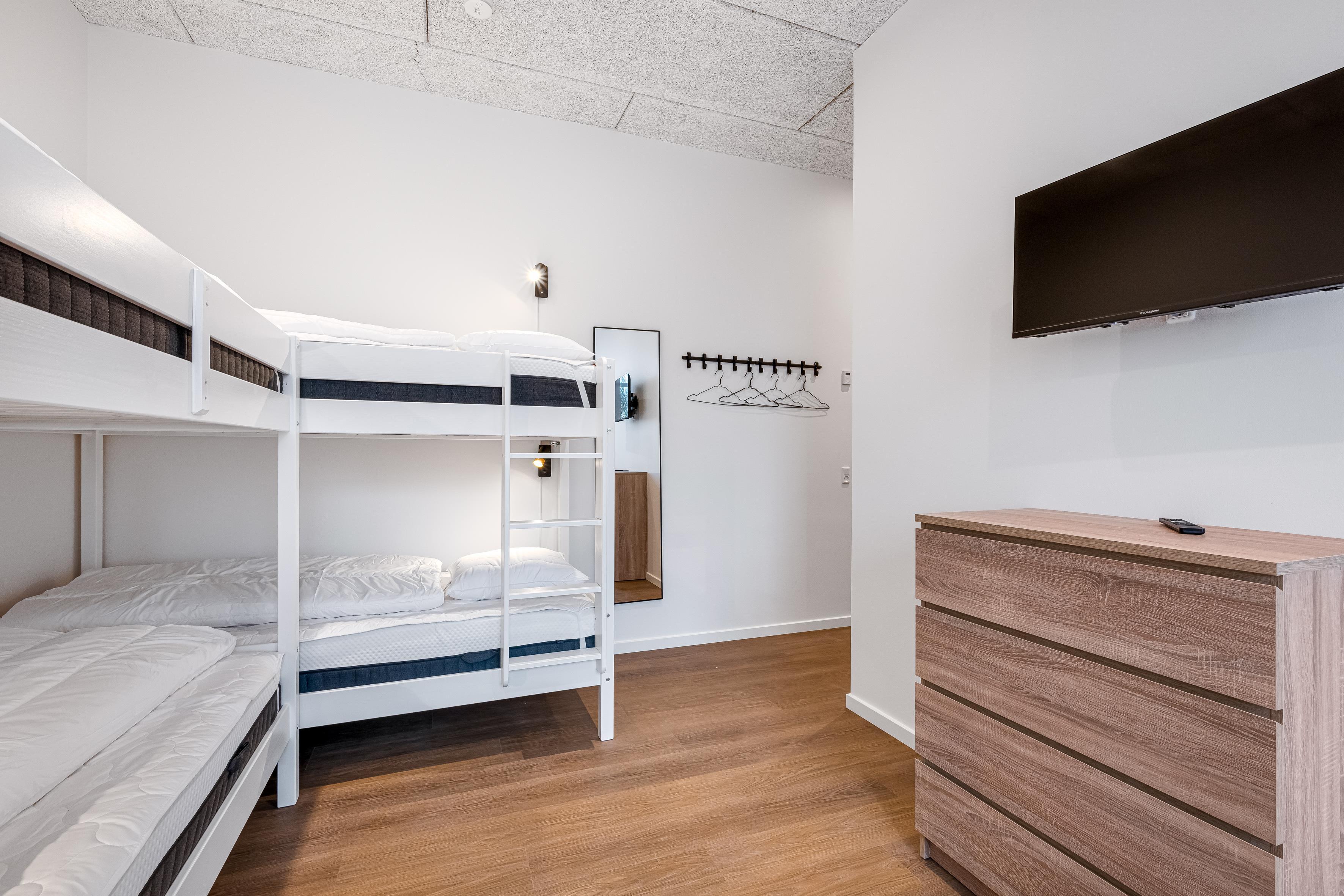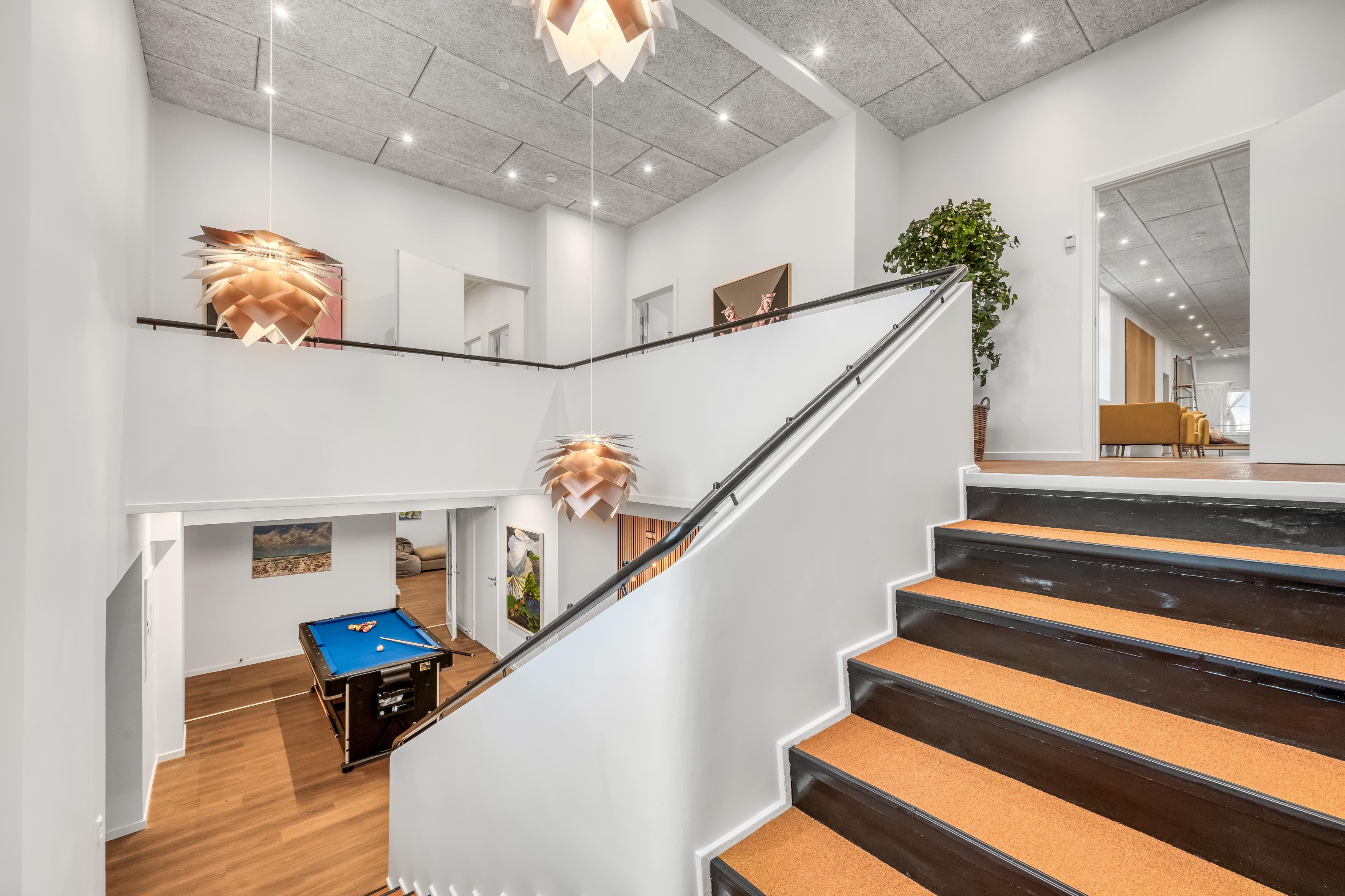 Indendørs findes der 16 rummelige soveværelser, der kan rumme op til 50 personer. Hvert værelse er udstyret med komfortable senge og på hovedparten af værelserne er der desuden et badeværelse, så der er plads til alle. Huset har i alt 15 badeværelser, hver med toilet, håndvask og bruseniche, som gør det nemt for en stor gruppe at forberede sig på dagens eventyr. Derudover er der gulvvarme i hele huset, inklusiv badeværelserne, hvilket sikrer en behagelig temperatur året rundt.