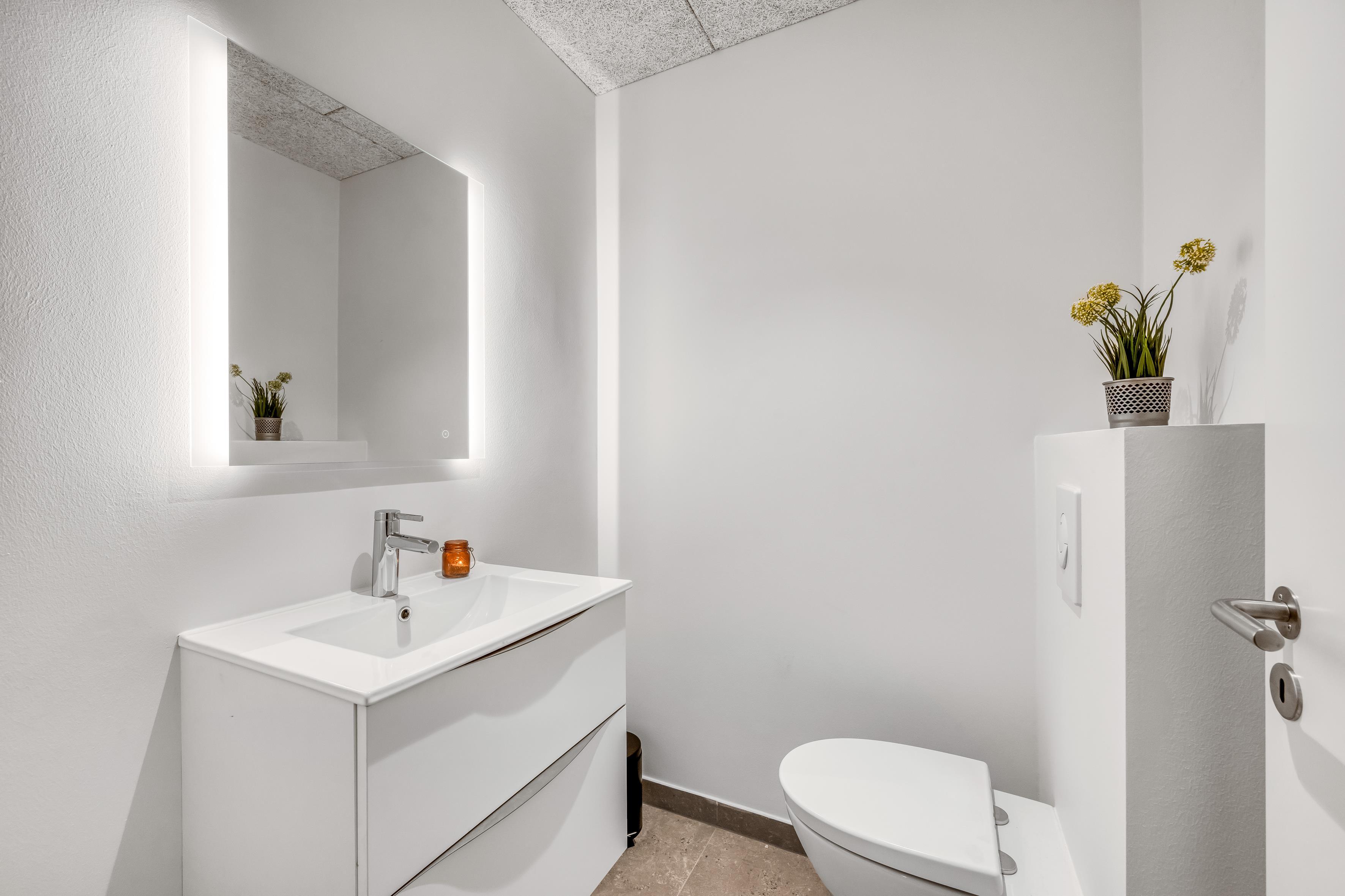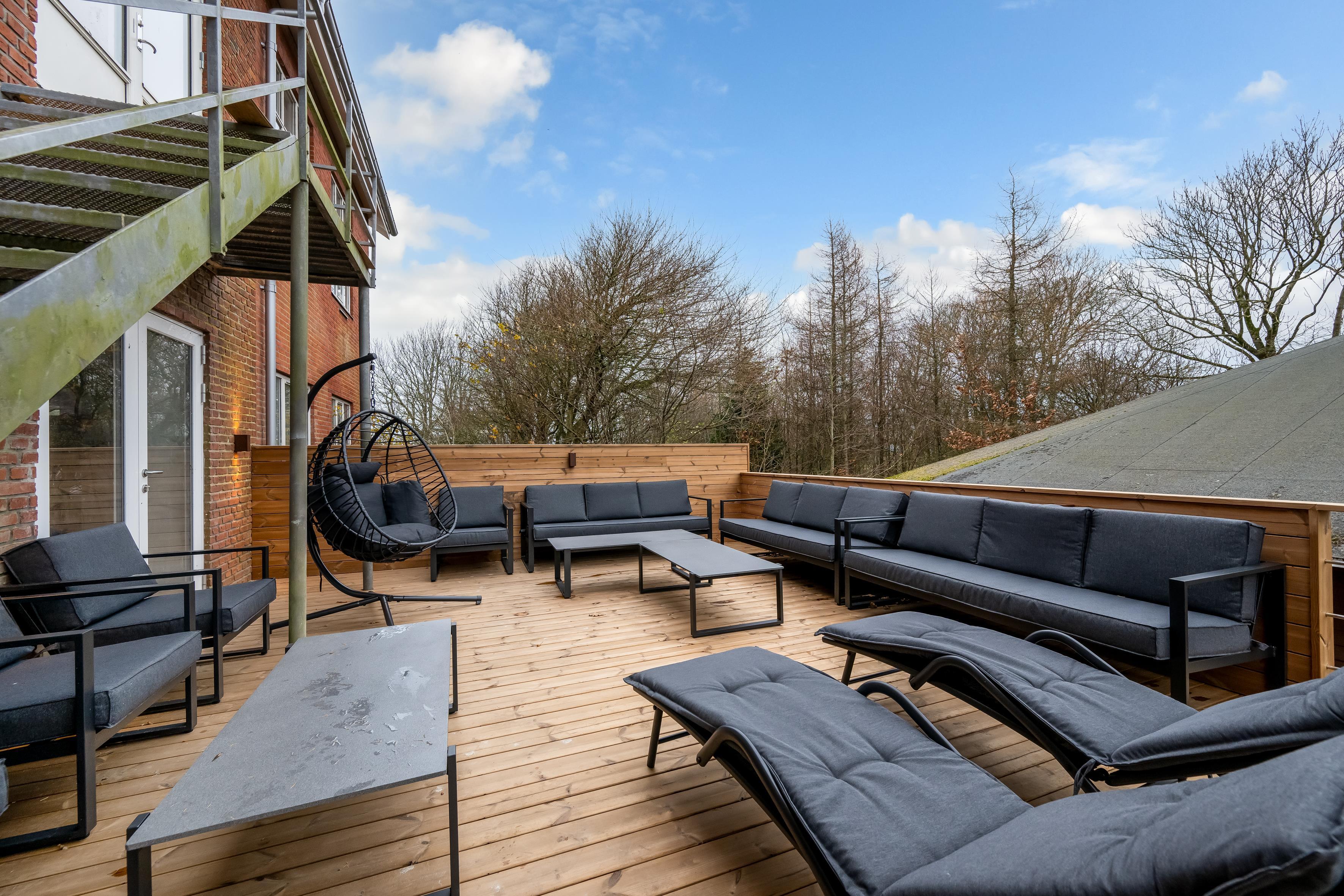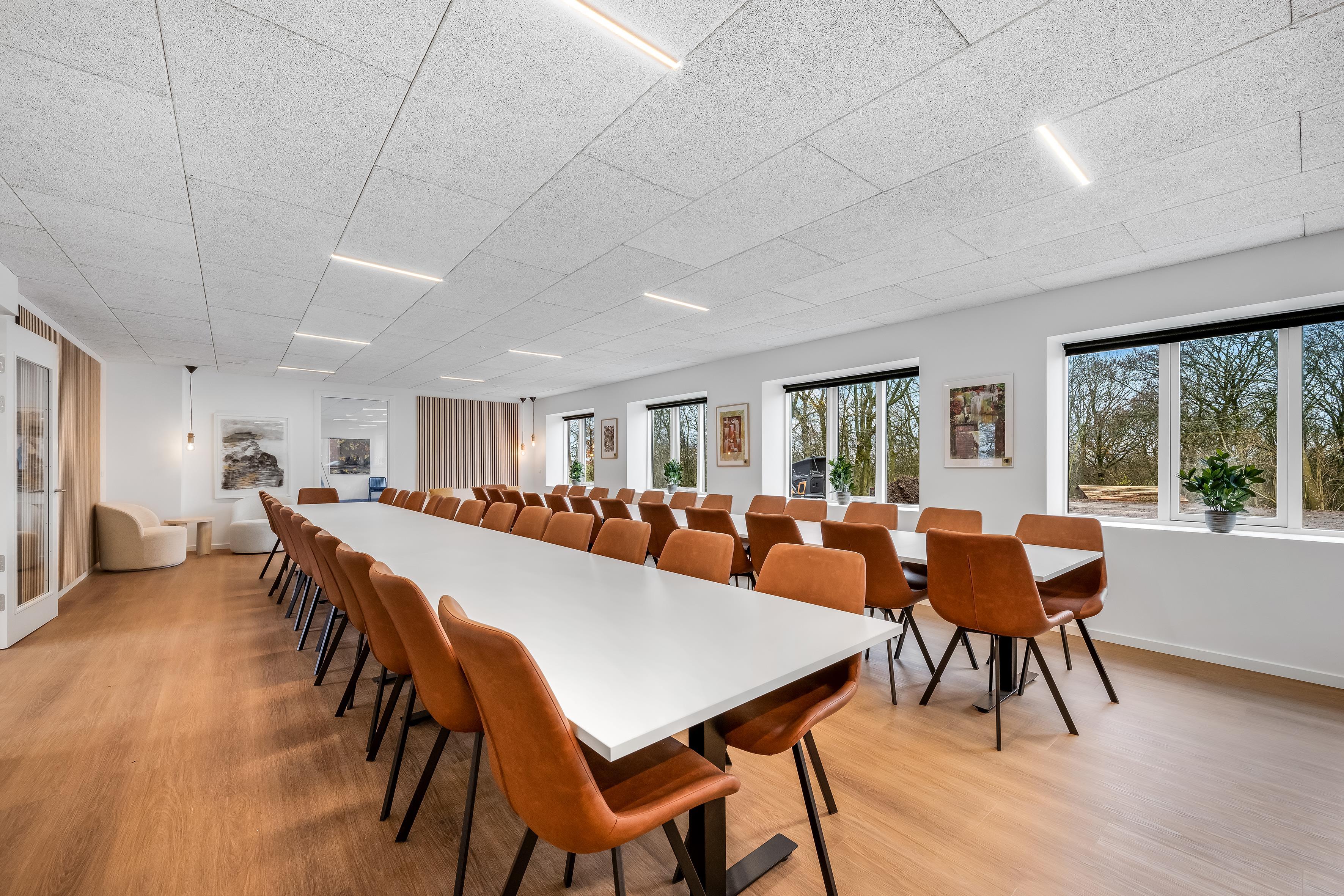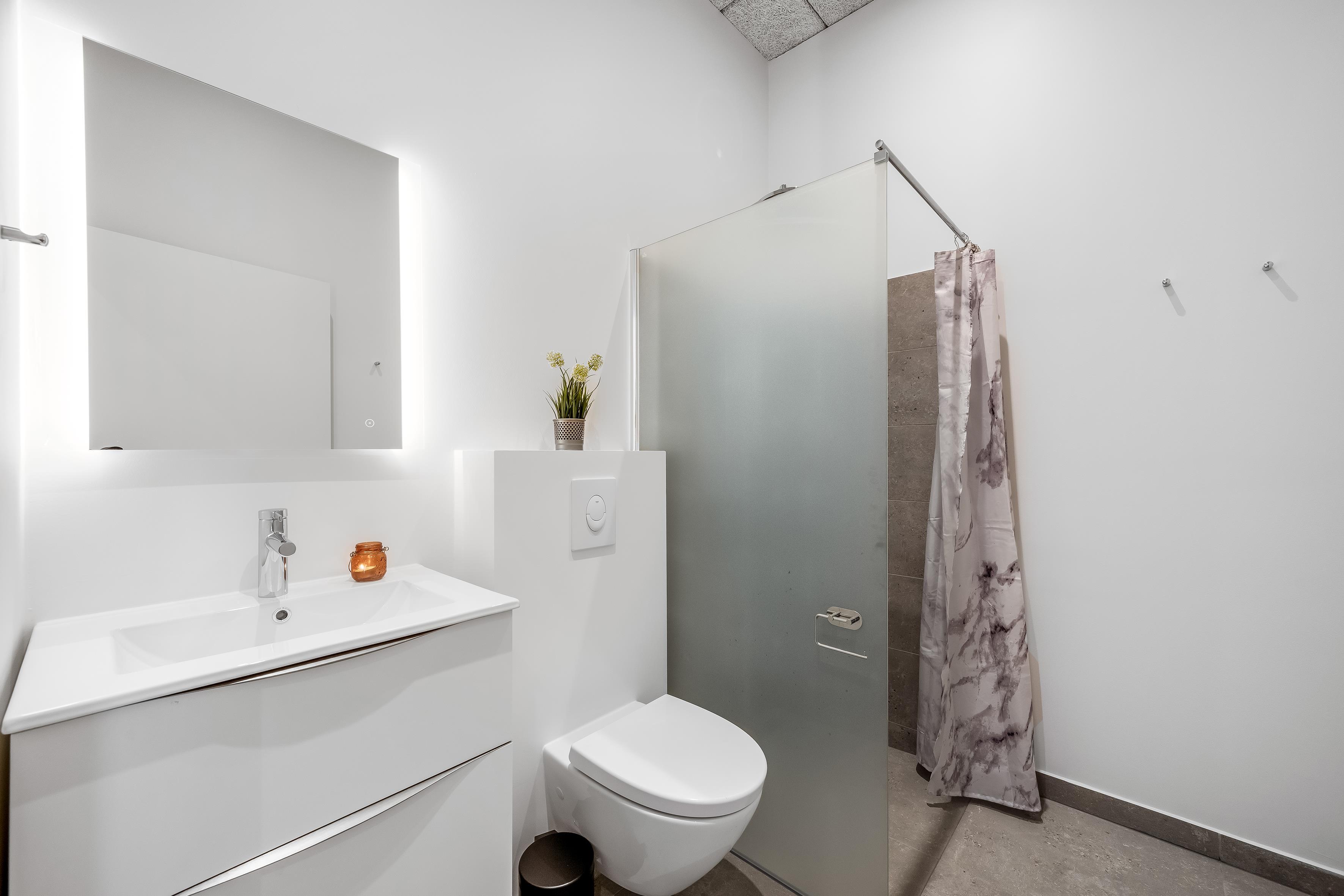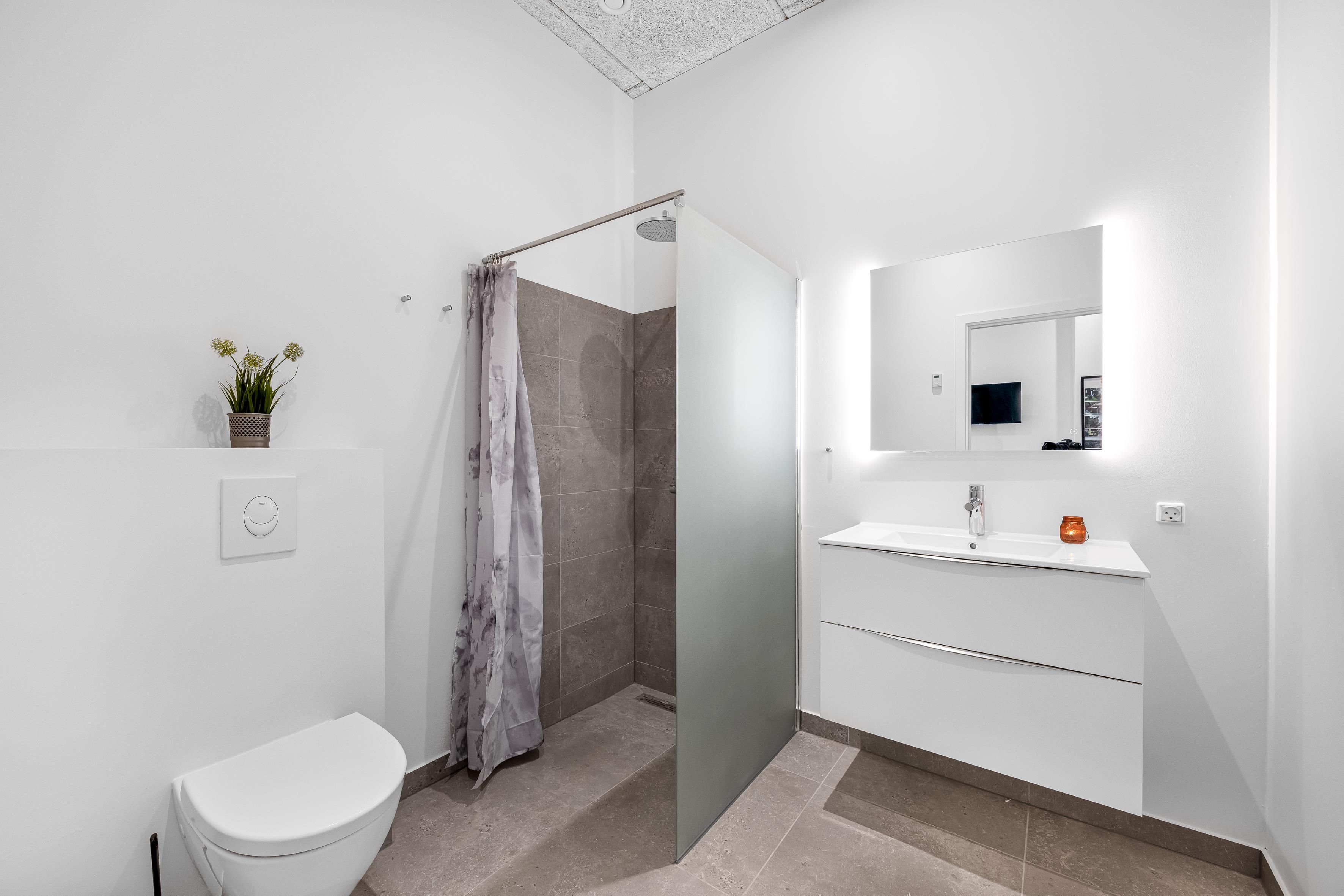 Indendørs findes der 16 rummelige soveværelser, der kan rumme op til 50 personer. Hvert værelse er udstyret med komfortable senge og på hovedparten af værelserne er der desuden et badeværelse, så der er plads til alle. Huset har i alt 15 badeværelser, hver med toilet, håndvask og bruseniche, som gør det nemt for en stor gruppe at forberede sig på dagens eventyr. Derudover er der gulvvarme i hele huset, inklusiv badeværelserne, hvilket sikrer en behagelig temperatur året rundt.