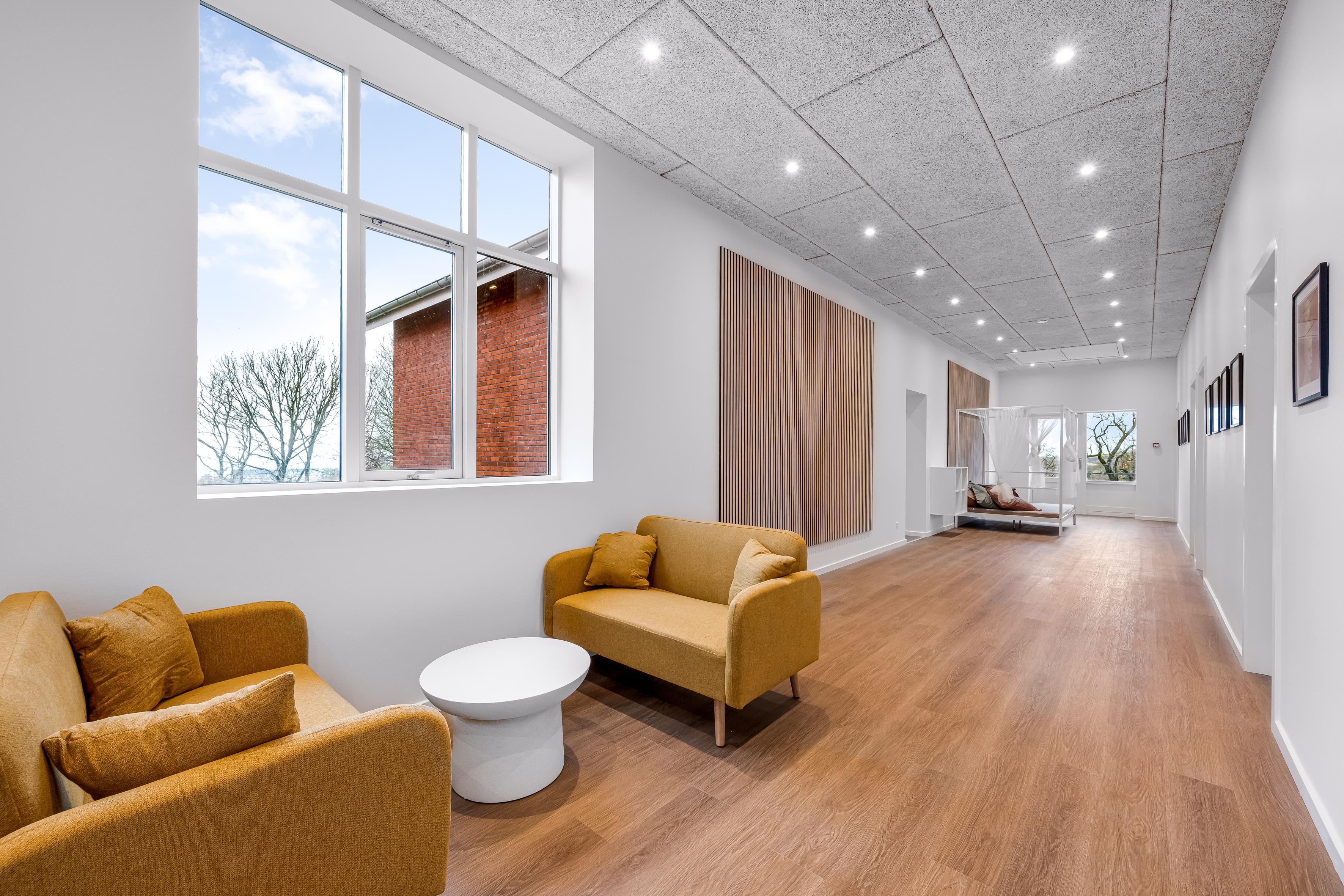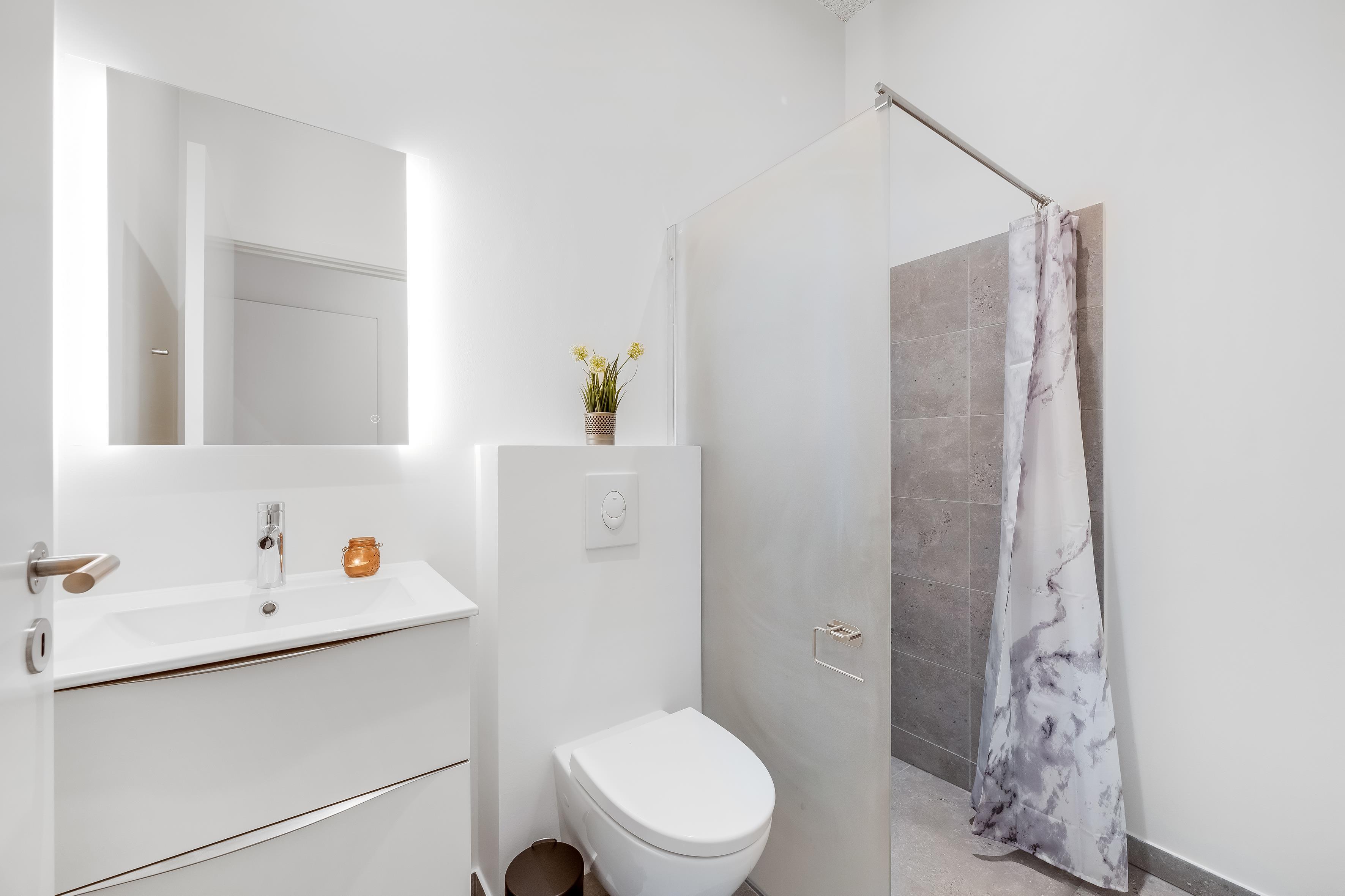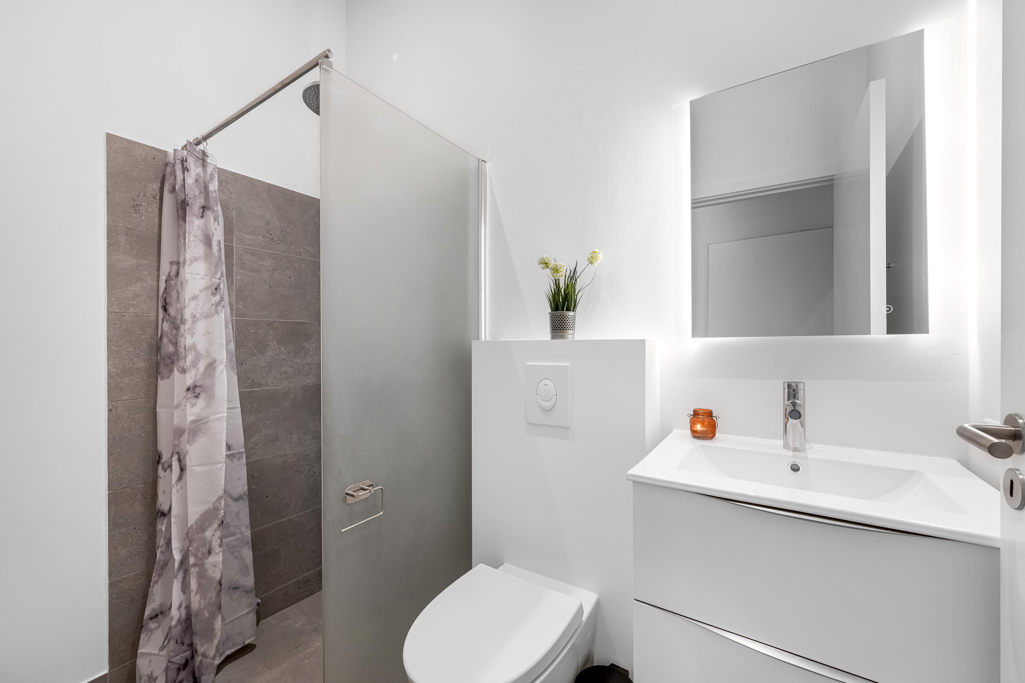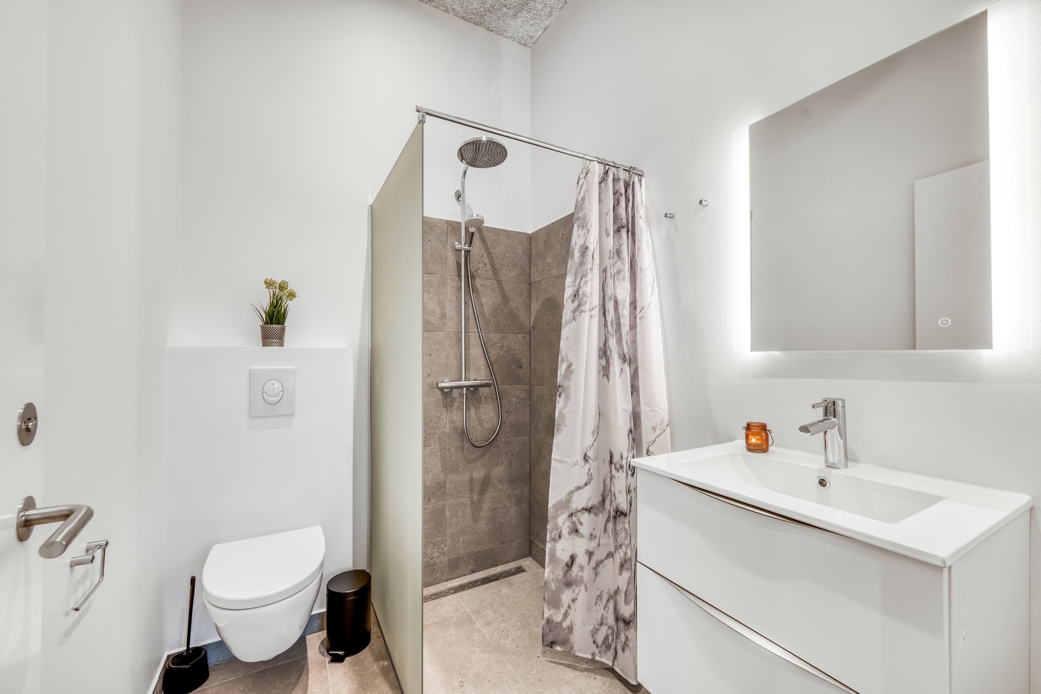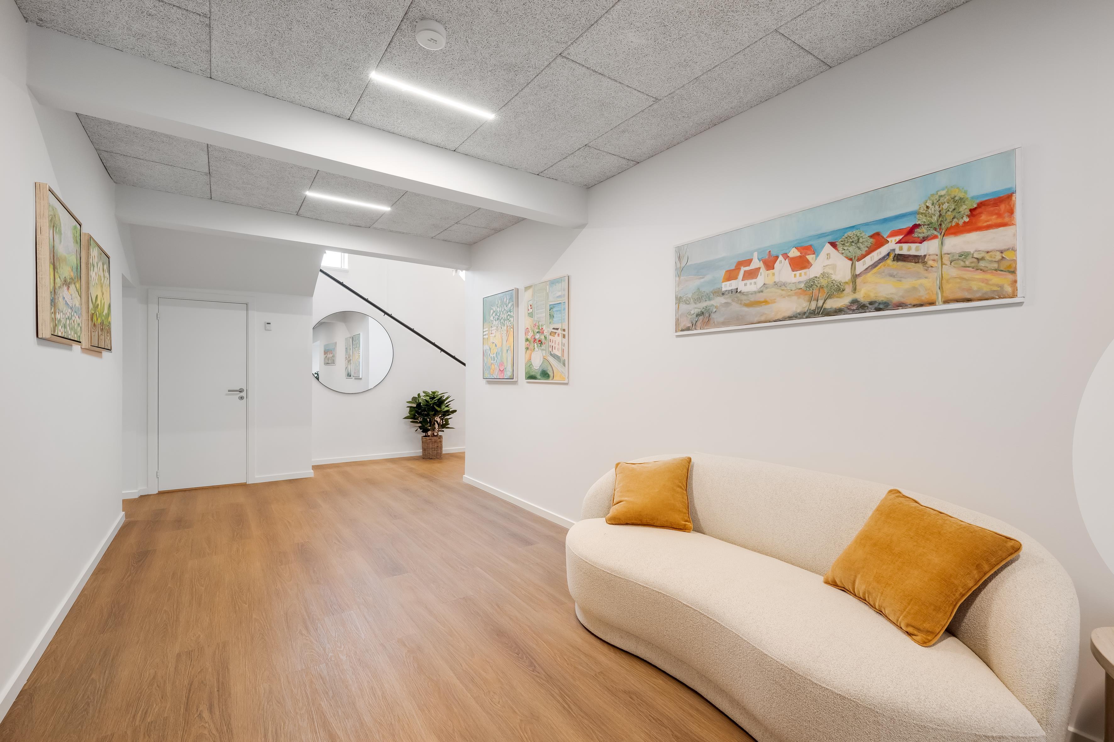 Indendørs findes der 16 rummelige soveværelser, der kan rumme op til 50 personer. Hvert værelse er udstyret med komfortable senge og på hovedparten af værelserne er der desuden et badeværelse, så der er plads til alle. Huset har i alt 15 badeværelser, hver med toilet, håndvask og bruseniche, som gør det nemt for en stor gruppe at forberede sig på dagens eventyr. Derudover er der gulvvarme i hele huset, inklusiv badeværelserne, hvilket sikrer en behagelig temperatur året rundt.