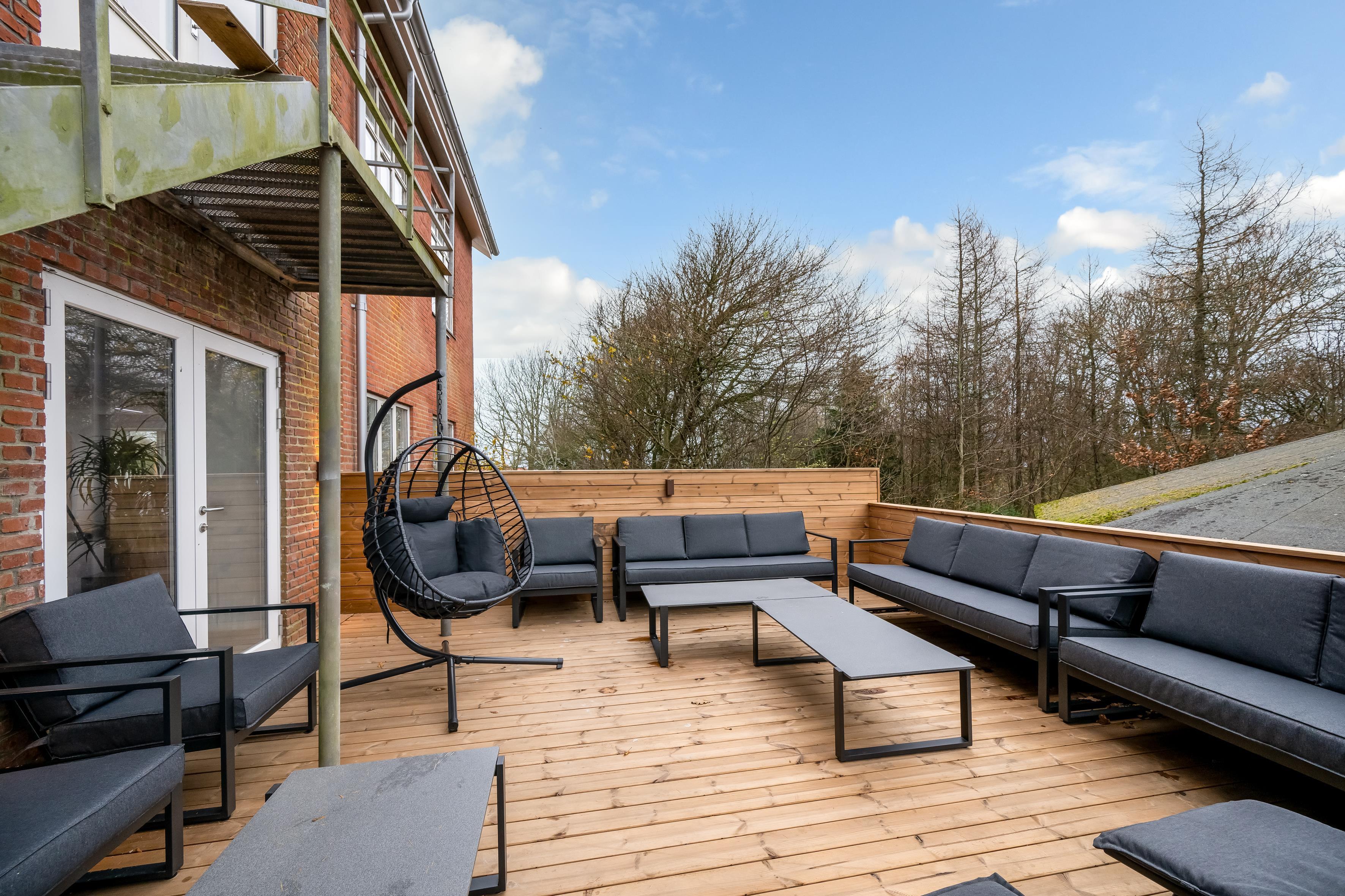 Udendørsområdet er lige så imponerende med en stor terrasse, stor overdækket bålhytte med både pejs og grill. På sportspladsen er der fodboldmål, gynger, og sandkasse. Der er også en trampolin, som børnene vil elske. Dette gør det til et ideelt sted for udendørs leg og festligheder.