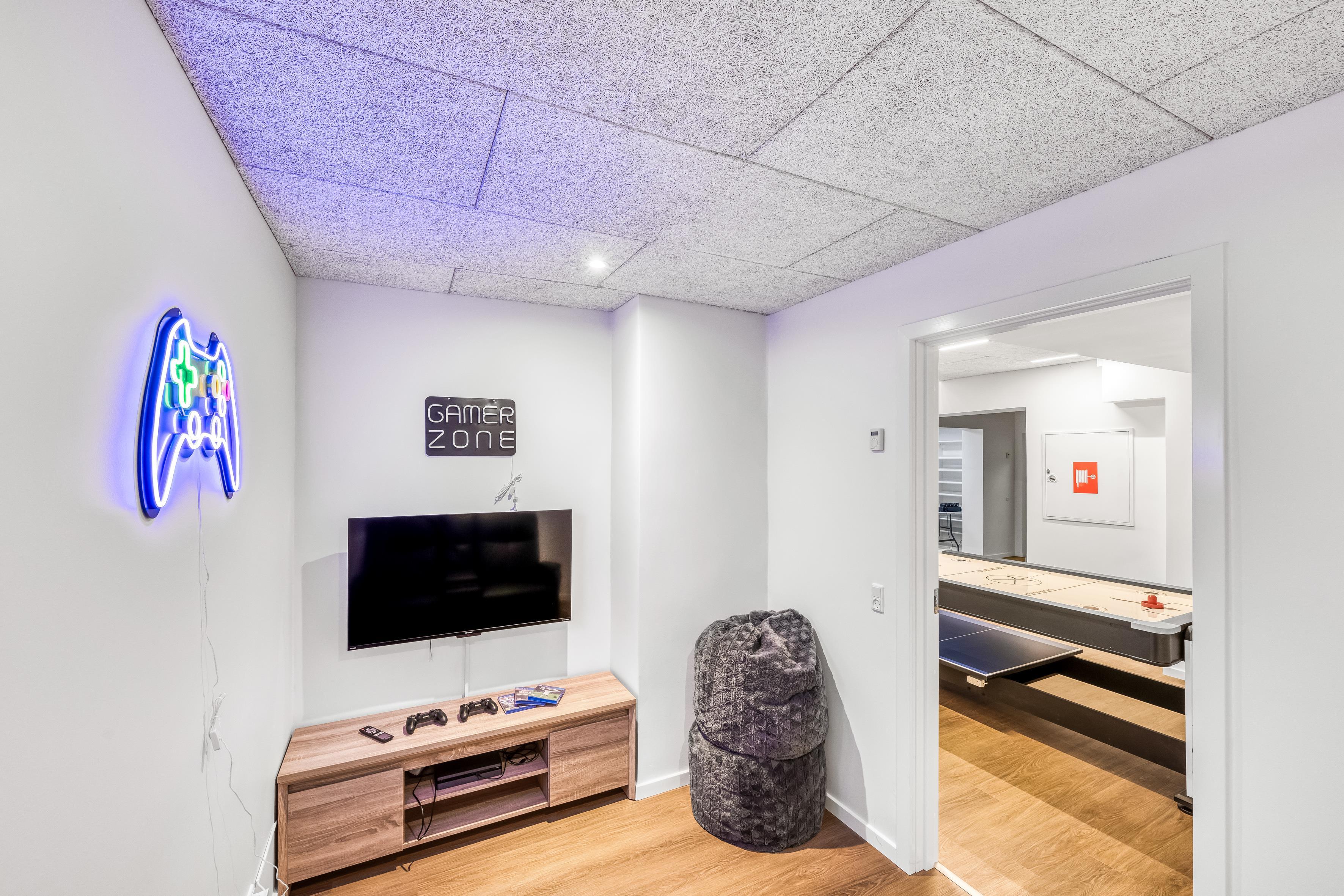 Huset er udstyret med moderne teknologi. Her er der fjernsyn på værelserne og i den store TV stue, trådløst internet og Chromecast, så der er underholdning for enhver smag. Det store køkken med 2 induktionskomfurer, 2 mikrobølgeovne, 2 Airfryere, 2 ovne, 2 opvaskemaskiner, 2 køleskabe og frysekapacitet på over 200 liter sikrer, at du har alt, hvad du behøver for at tilberede lækre måltider til din gruppe.