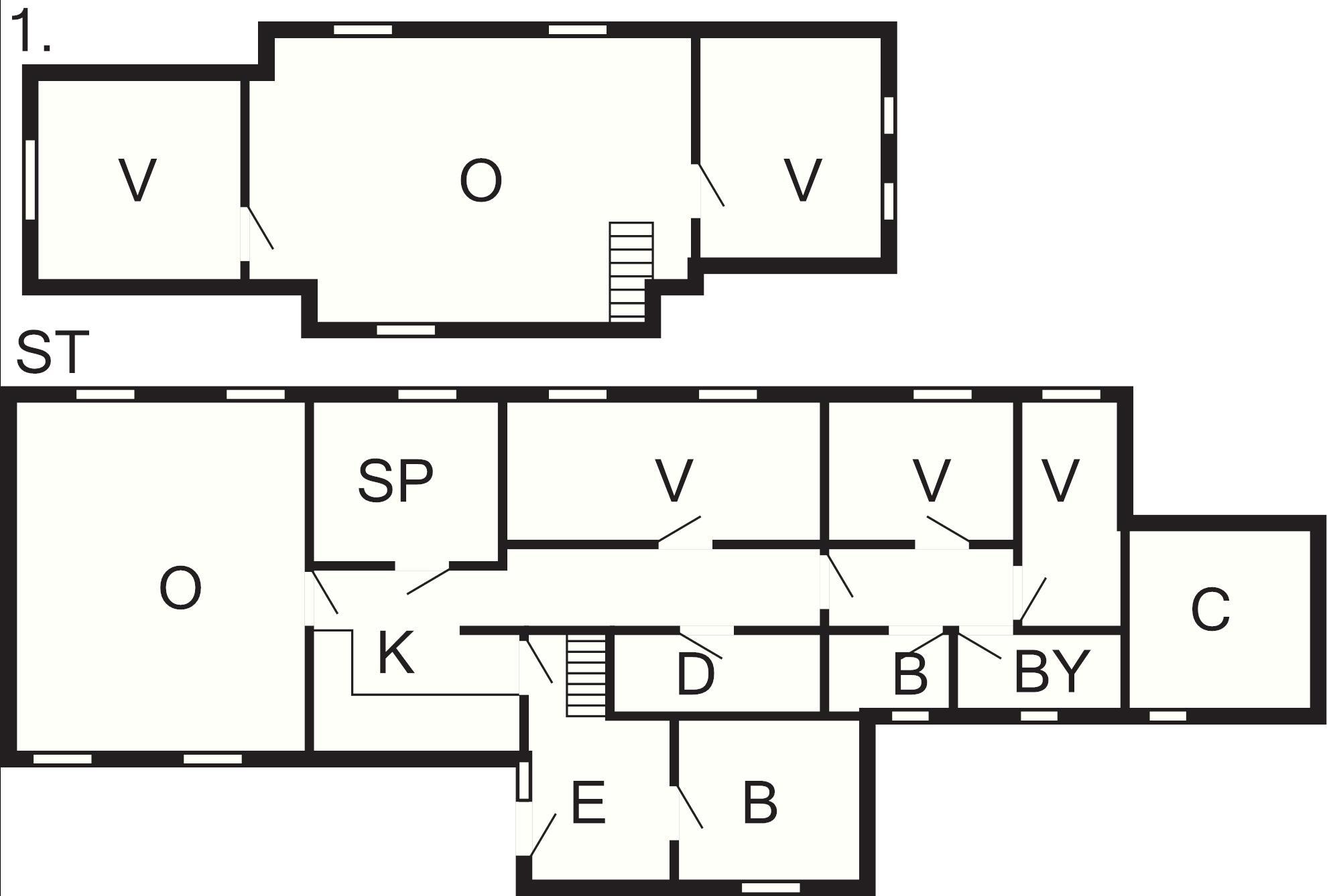 5 Soveværelser: (1DS)+(1DS)+(2S)+(2S)+(2S), barneseng