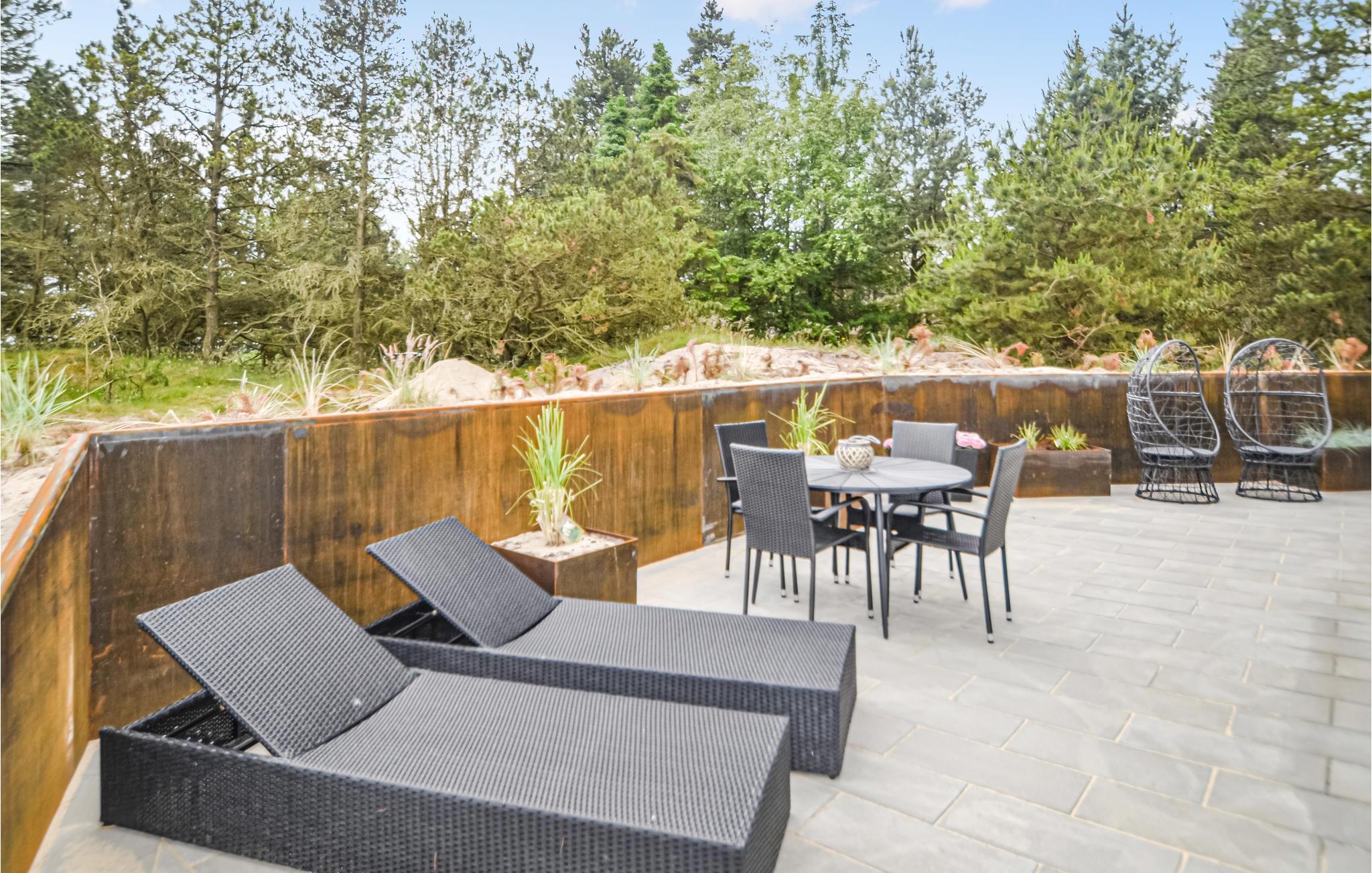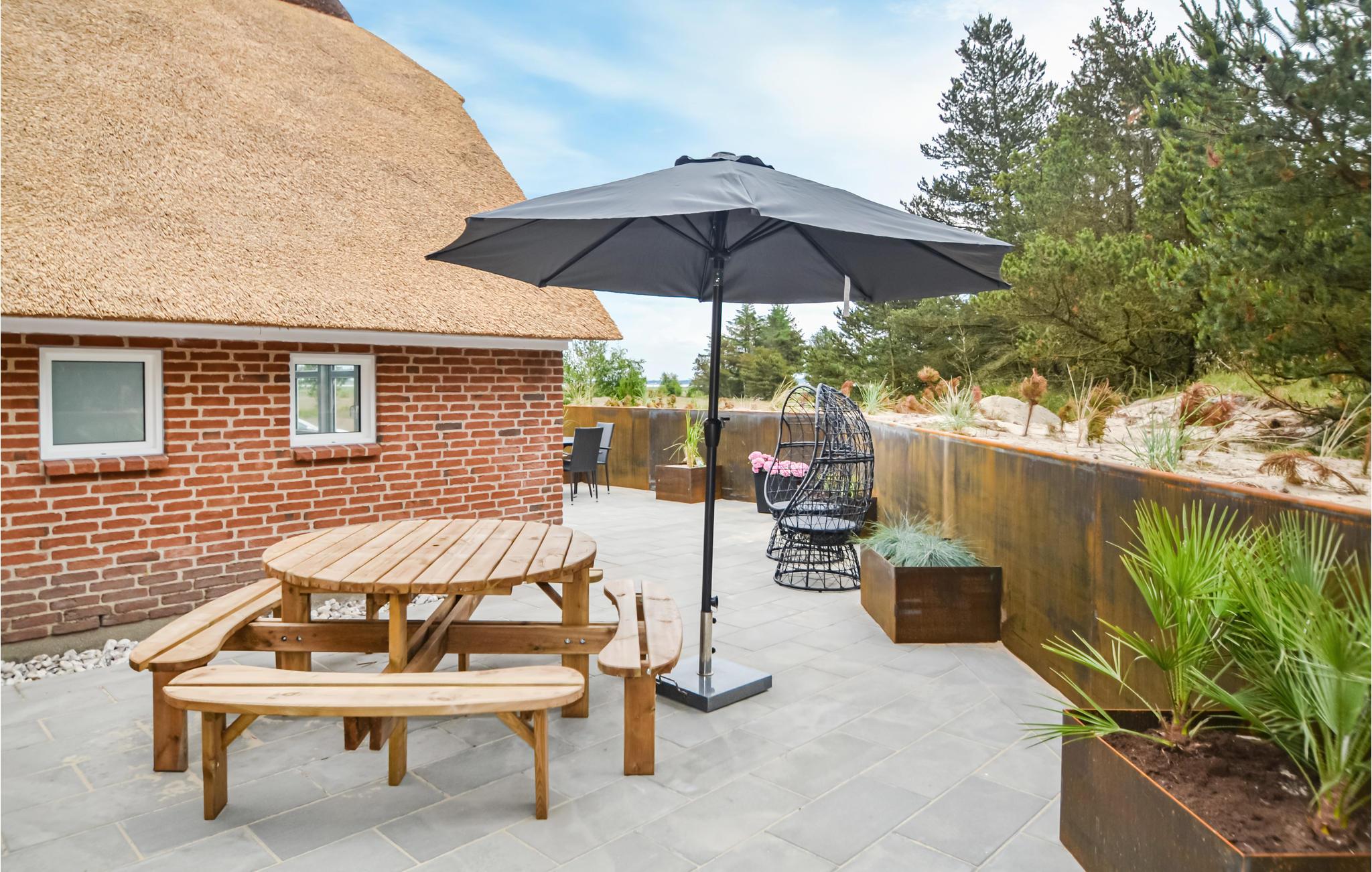 I det naturskønne skovområde ved Mosevrå, ligger dette lækre sommerhus med aktivitetsrum, swimmingpool afdeling med spabad og adgang til sauna. Huset er rigtig godt indrettet med et dejligt køkken i sammenhæng med stuen, hvor der er brændeovn og udgang til en sydvestvendt terrasse. På første sal er der aktivitetsrum med bordfodbold, airhockey samt PlayStation2. På grunden findes også flere aktiviteter, bl.a. beachvolleybane, trampolin, gynger og sandkasse. Fra huset er der ca. 15 minutters kørsel i bil til f.eks. Blåvand Strand og Vejers Strand. Der er desuden mange muligheder for at cykle eller vandre i den skønne natur, der er bl.a. cykelsti til Blåvand, kendt for sine skønne, børnevenlige badestrande samt gode indkøbsmuligheder. På Vejers Strand er det, på visse dele af stranden, tilladt at køre i bil helt ned til vandkanten.