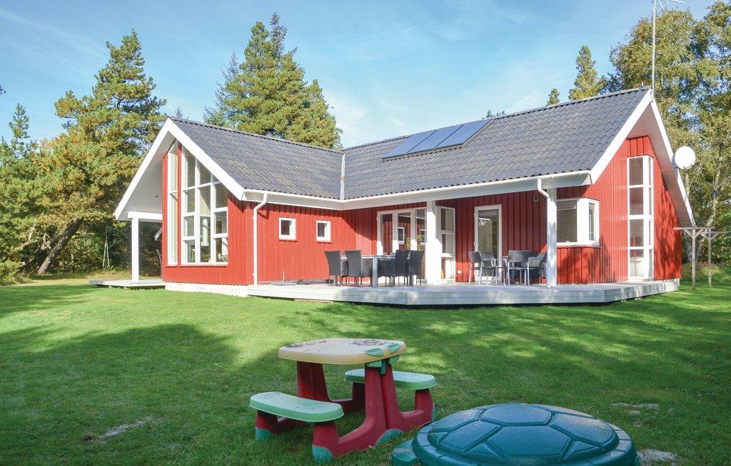 Et lækkert feriehus med solvarme, beliggende i det naturskønne område ved Mosevrå. Huset er velegnet til to familier og indrettet med bl.a. spabad og sauna. I det store køkken/alrum med amerikansk køleskab, er der store panoramavinduer ud mod naturgrunden og alle dens aktiviteter. Området byder på mange aktiviteter og flere golfbaner. Ligeledes er der ikke langt til en put and take sø, og der er rig mulighed for at opleve kronvildt lige udenfor døren. Der er flere anlagte cykelstier i området, bl.a. til vestkystens bedste badestrand ved Blåvand. Ønsker I at tage bilen med på stranden, kan dette ske ved Vejers Strand. Der er fiskemuligheder ud til Ho Bugt og tæt ved feriehuset ligger en af områdets mountainbikebaner.