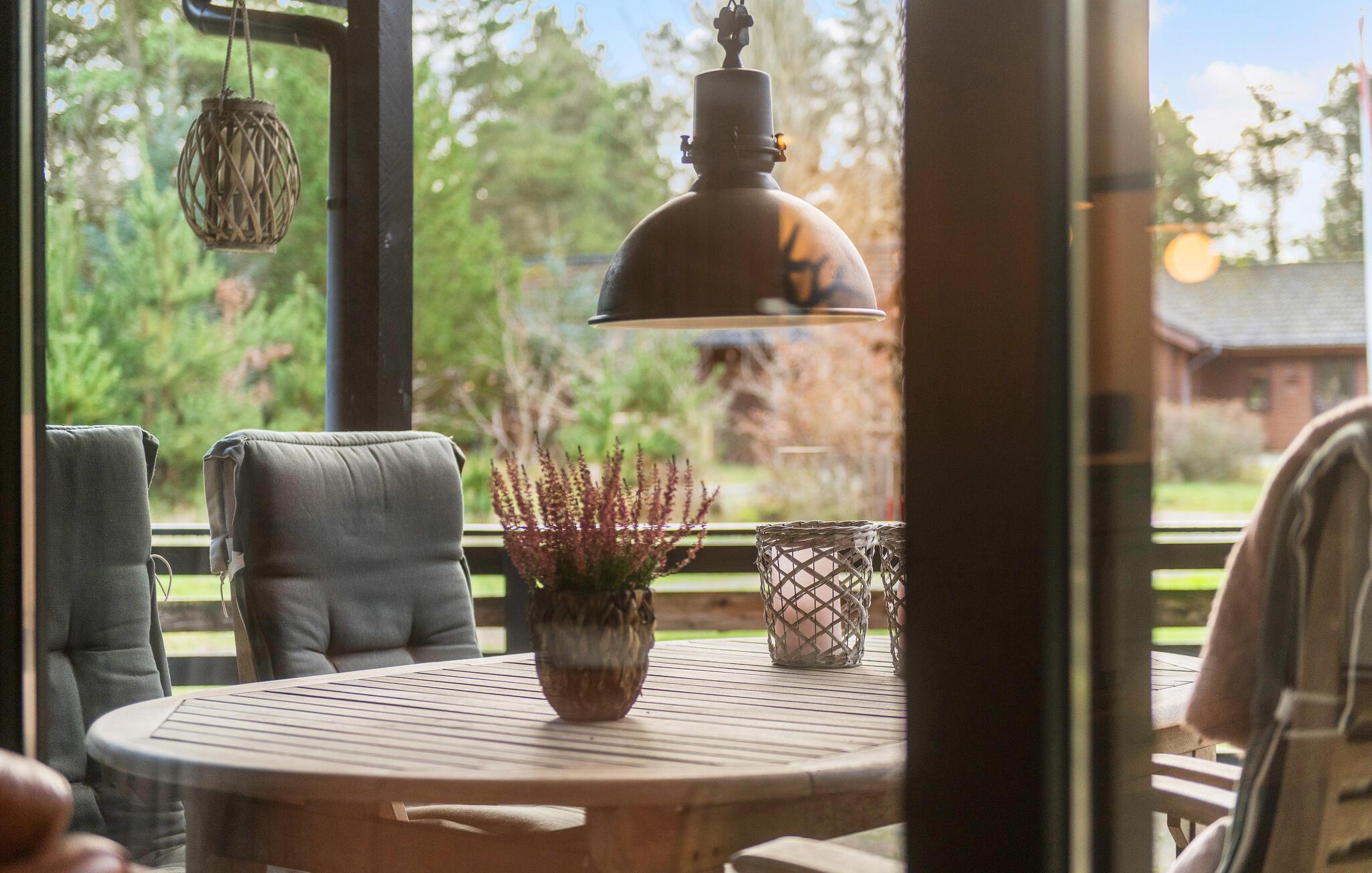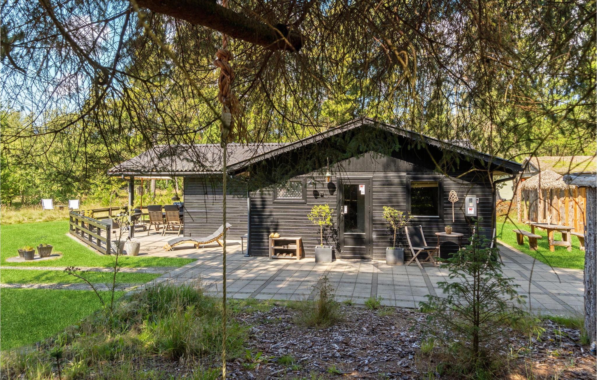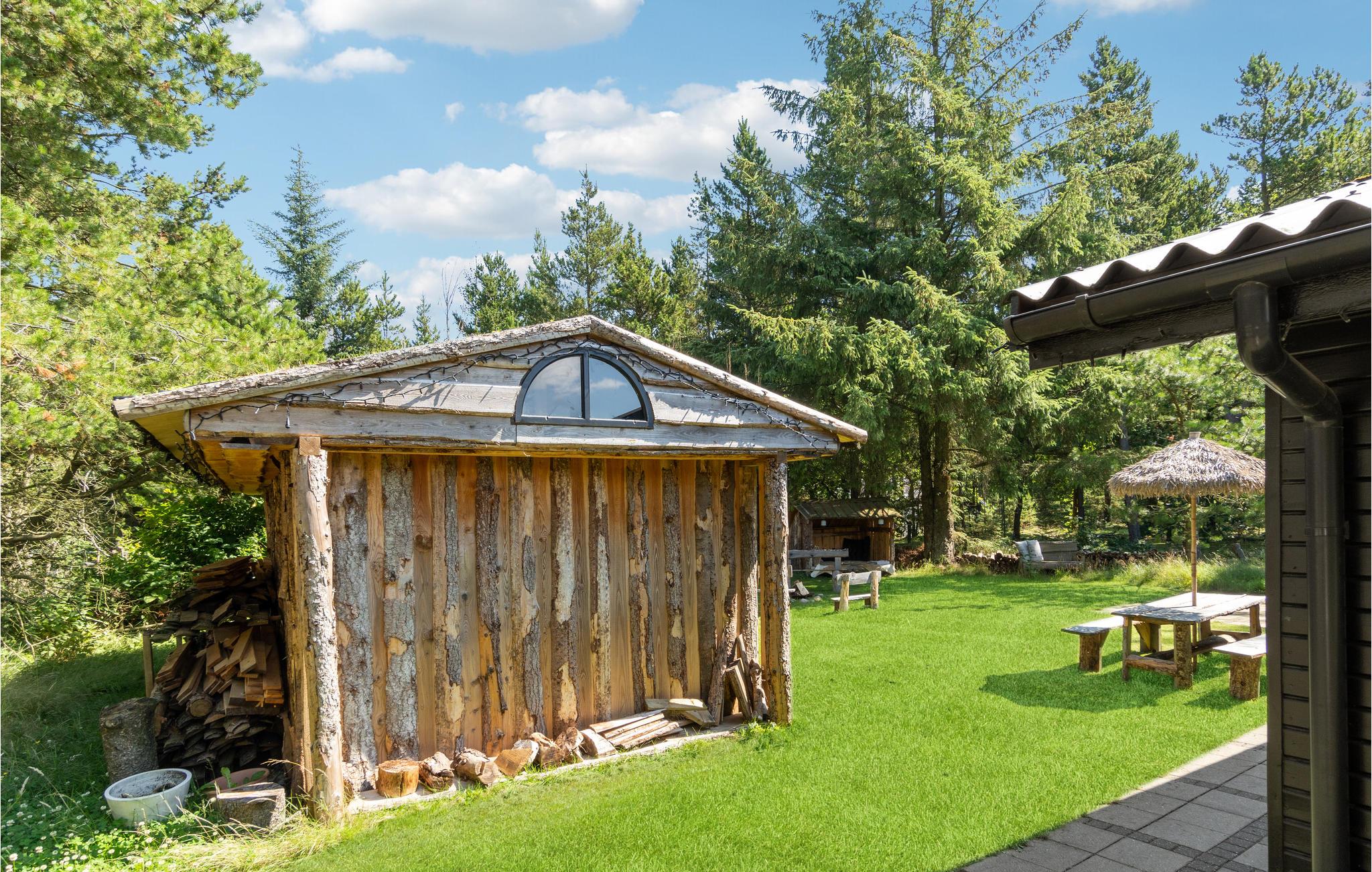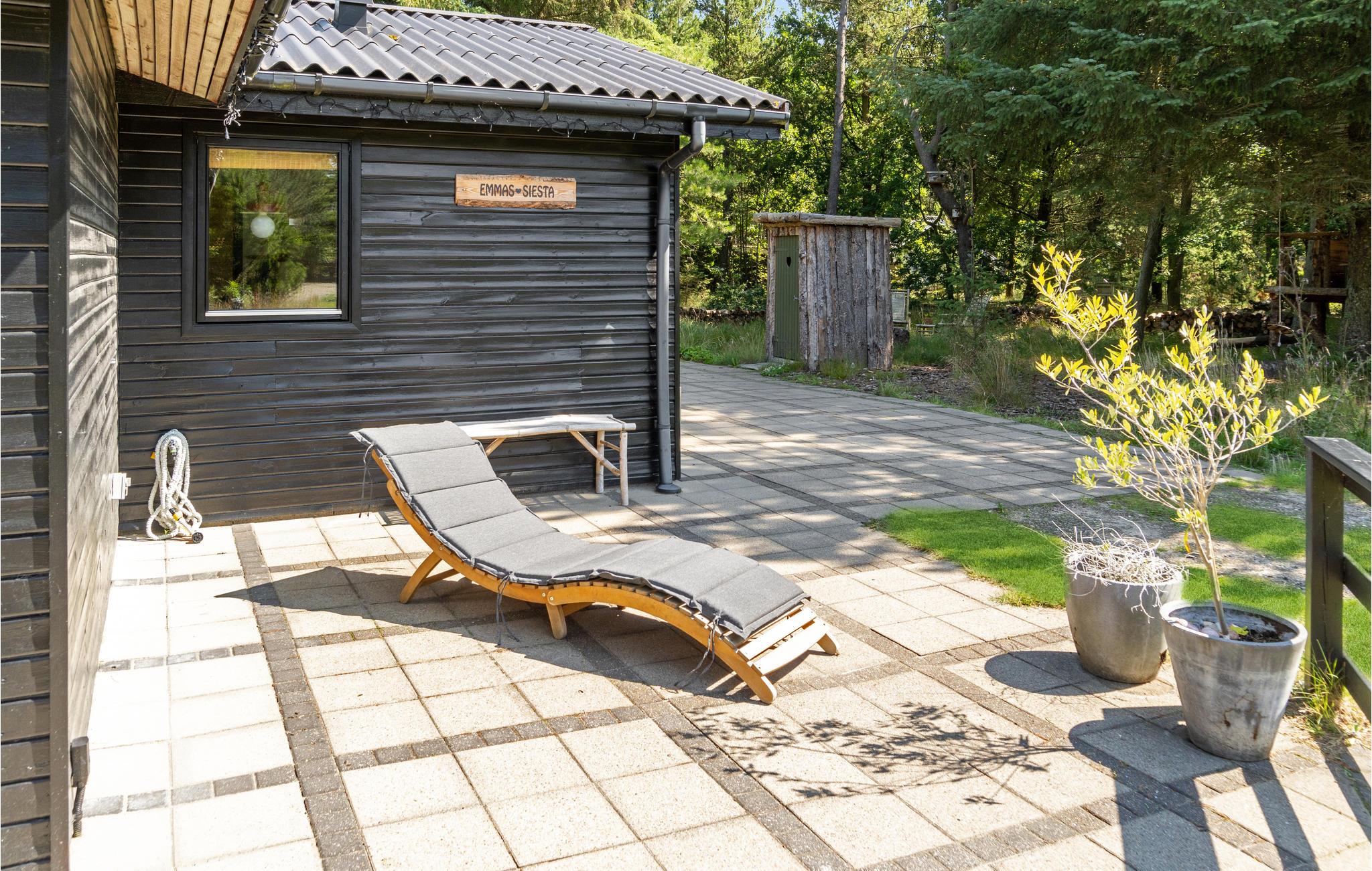 Indretningen er utroligt charmerende og passer godt til det lille skovnære hus. På den rummelige åbne og delvist overdækkede terrasse kan I nyde en hyggelig stund udendørs og tilberede lækre grillretter, mens I slapper af i de komfortable havemøbler. Bålstedet lægger op til hyggelige aftener med snobrød og stegte skumfiduser, mens I vender dagens vigtigste indtryk og oplevelser.