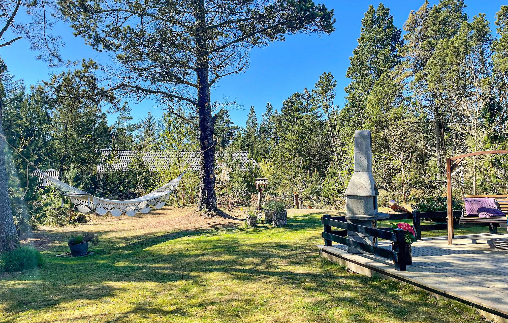 Tag en pause fra hamsterhjulet og hold en dejlig ferie i dette hjemlige træhus, hvor I blot skal læne jer tilbage og koble af. Huset er præget af moderne linjer, finurlig dekor og velovervejet indretning og interiør, så I vil føle jer ekstra godt tilpas. Det store køkken-alrum lægger op til fælles madlavning, en god film eller et slag kort i sofakrogen og en sludren over god mad med udsigt til haven. Husets udendørsareal byder på mange siddekroge og en dejlig have, omgivet af skønne træer, og ferieboligen er således det perfekte valg for store som små naturelskere og dem, der blot søger fred og ro. Vælg mellem to terrasser, hvor I kan hygge jer i gyngestolene eller tilbringe lange sommeraftener med lækker grillmad. Naturgrunden er også ideel til at se på fugle og egern og til blot at lytte til lyden af vinden gennem træernes blade.