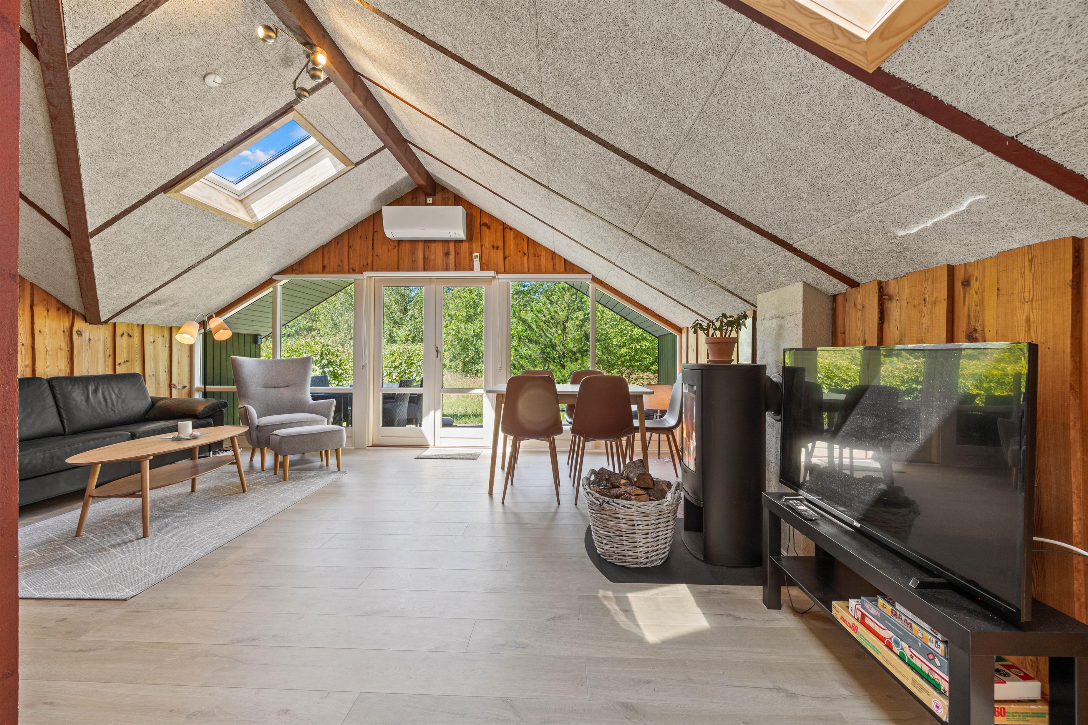 Der er fokus på hygge og samvær i det lille sommerhus på Kærvej 6. Her finder I træbeklædte vægge og lofter op i kip. Med ild i brændeovnen kan I slappe af i sofagruppen eller hygge jer med et brætspil. Det lille, åbne køkken indeholder alt, hvad I har brug for til at tilberede lækre måltider, herunder opvaskemaskine.