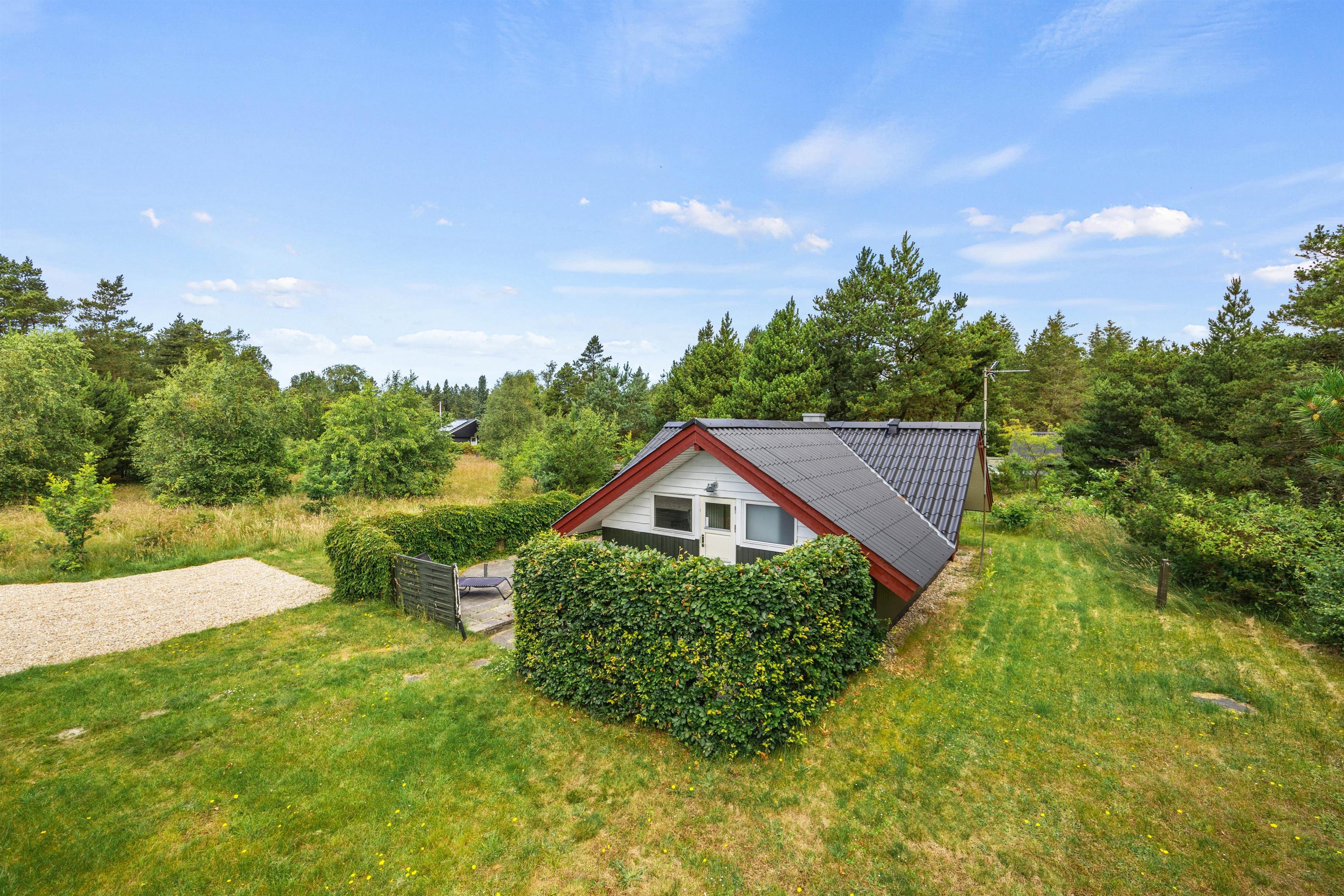 Udendørs kan I nyde den dejlige natur. På den store naturgrund på godt 2500m2 er både en åben- og en overdækket terrasse. Her kan I slappe af i komfortable havemøbler og nyde en grillmiddag i det fri. En aftentur langs Ho Bugt kan I stadig nå – eller en køretur på 8 km til stranden, hvor I kan opleve solnedgangen i Vesterhavet.