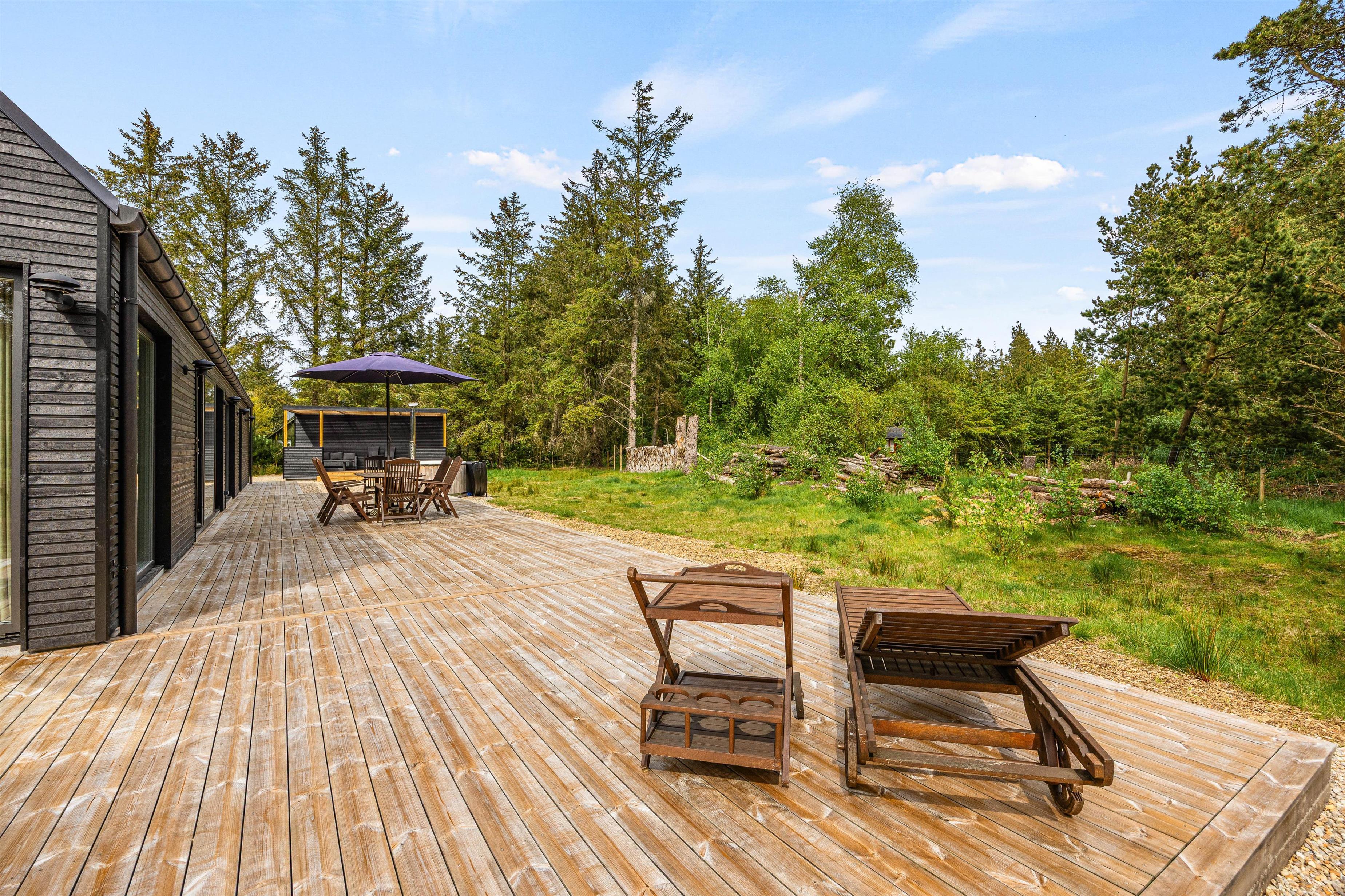 Beliggende i Dalen 18, kun få minutter fra Ho Bugt, er dette et paradis for naturelskere. Med 129 m² boligareal kan dette feriehus fra 2023 rumme op til 5 personer. Nyd luksuriøse faciliteter som et vildmarksbad, 2 badeværelser med gulvvarme og en effektiv luft-til-vand-varmepumpe, så din ferie bliver behagelig hele året rundt, og oplev freden og roen på en stor, indhegnet naturgrund på 2562 m², hvor din hund også er meget velkommen.